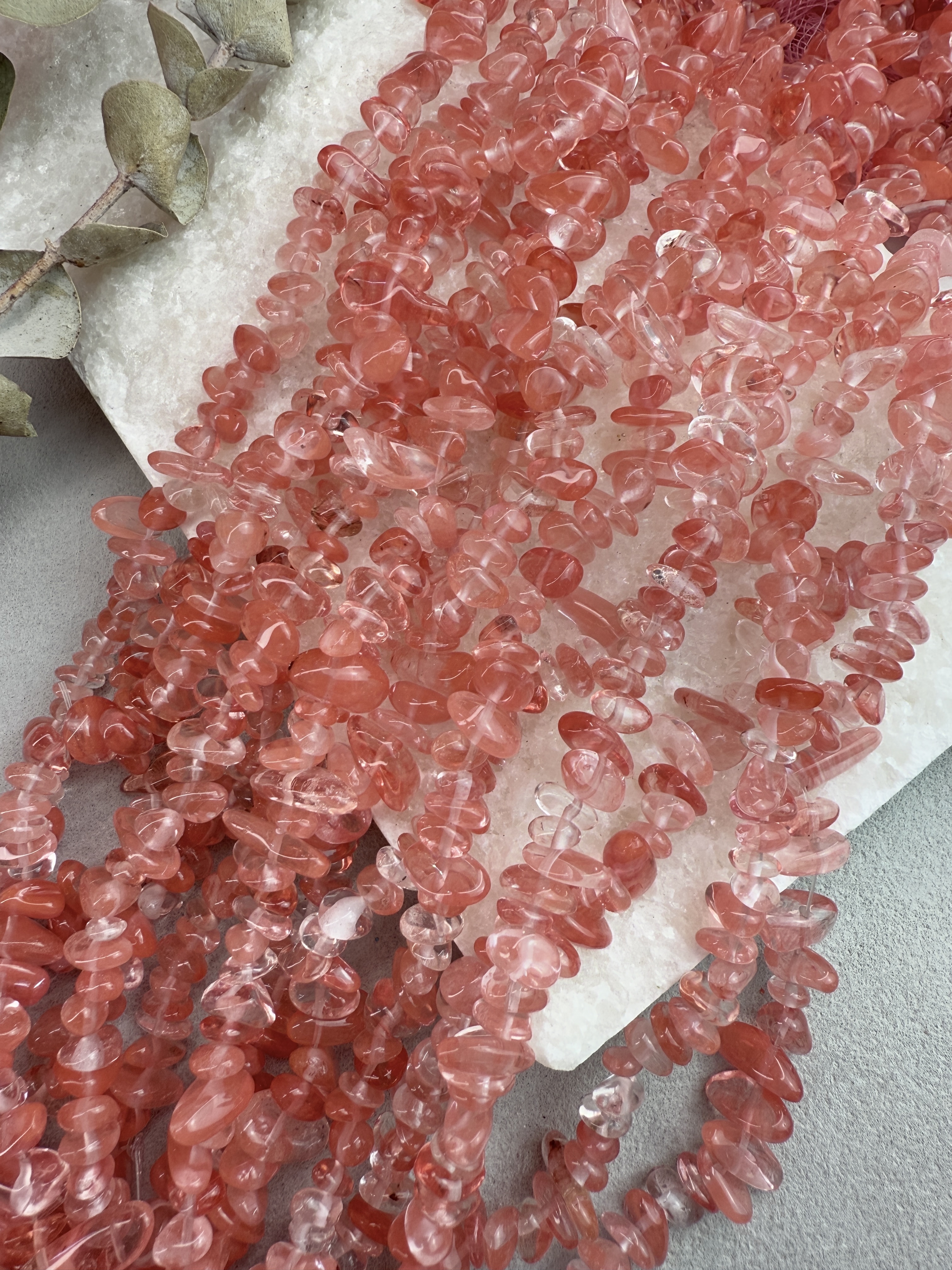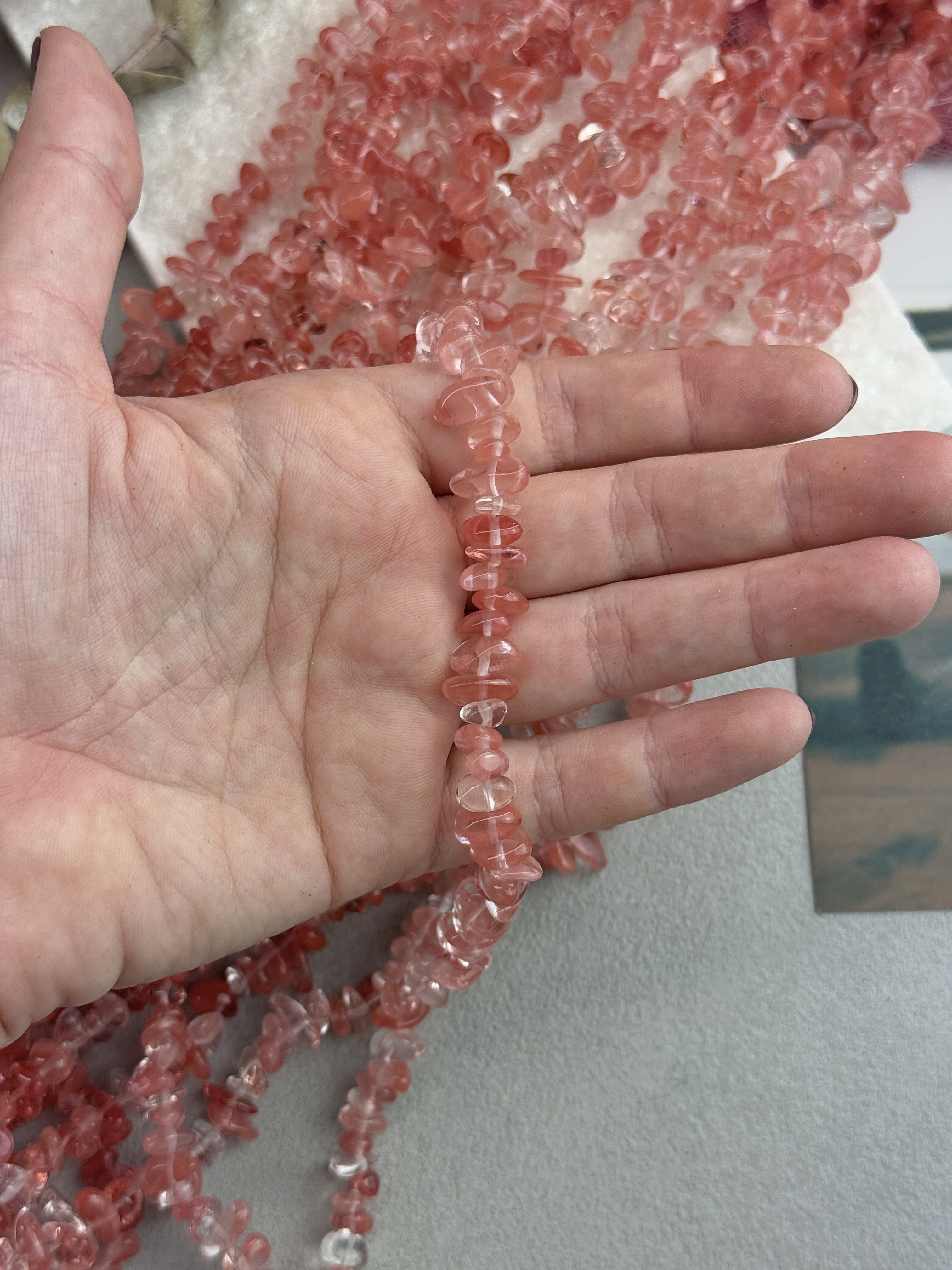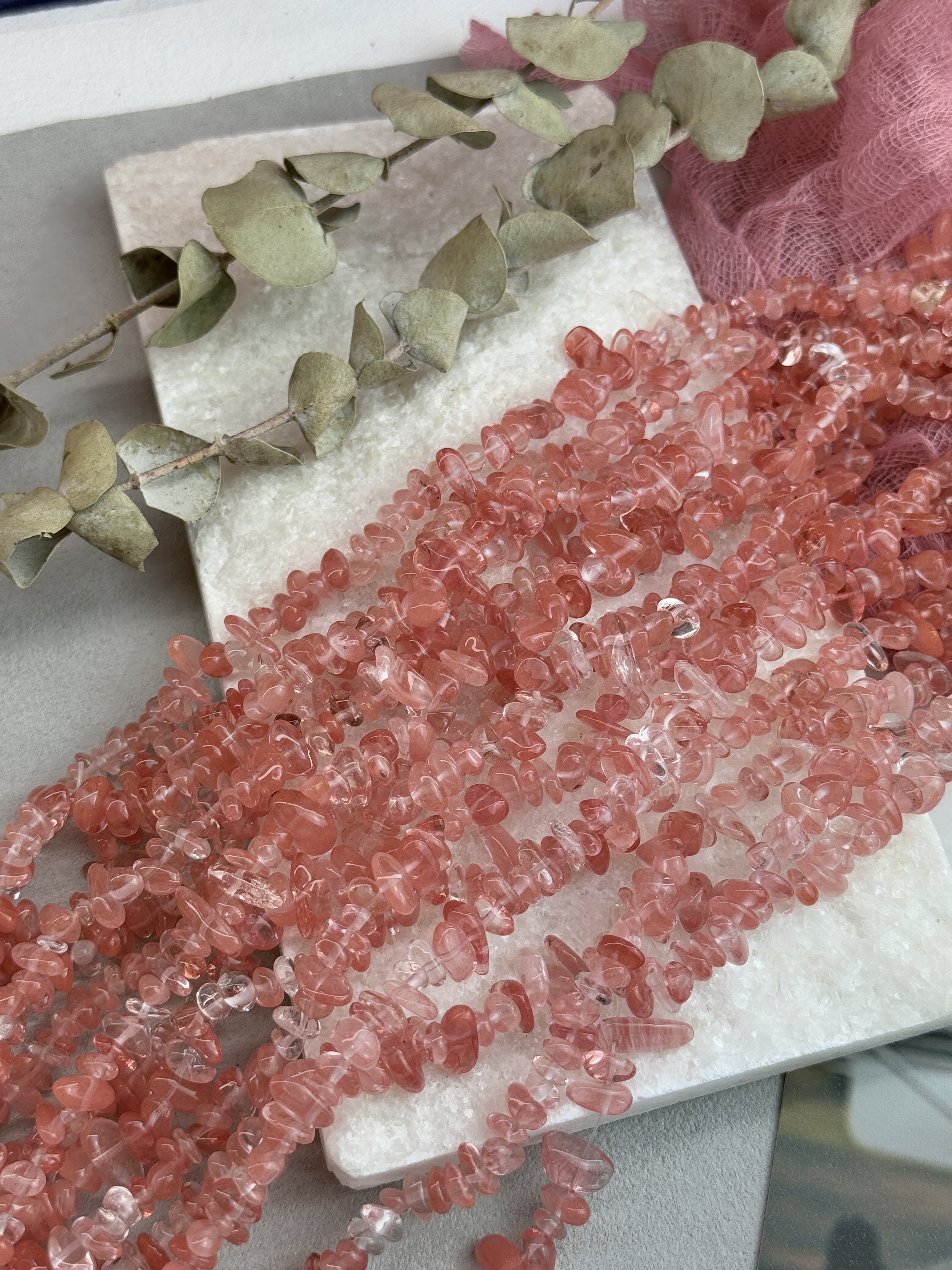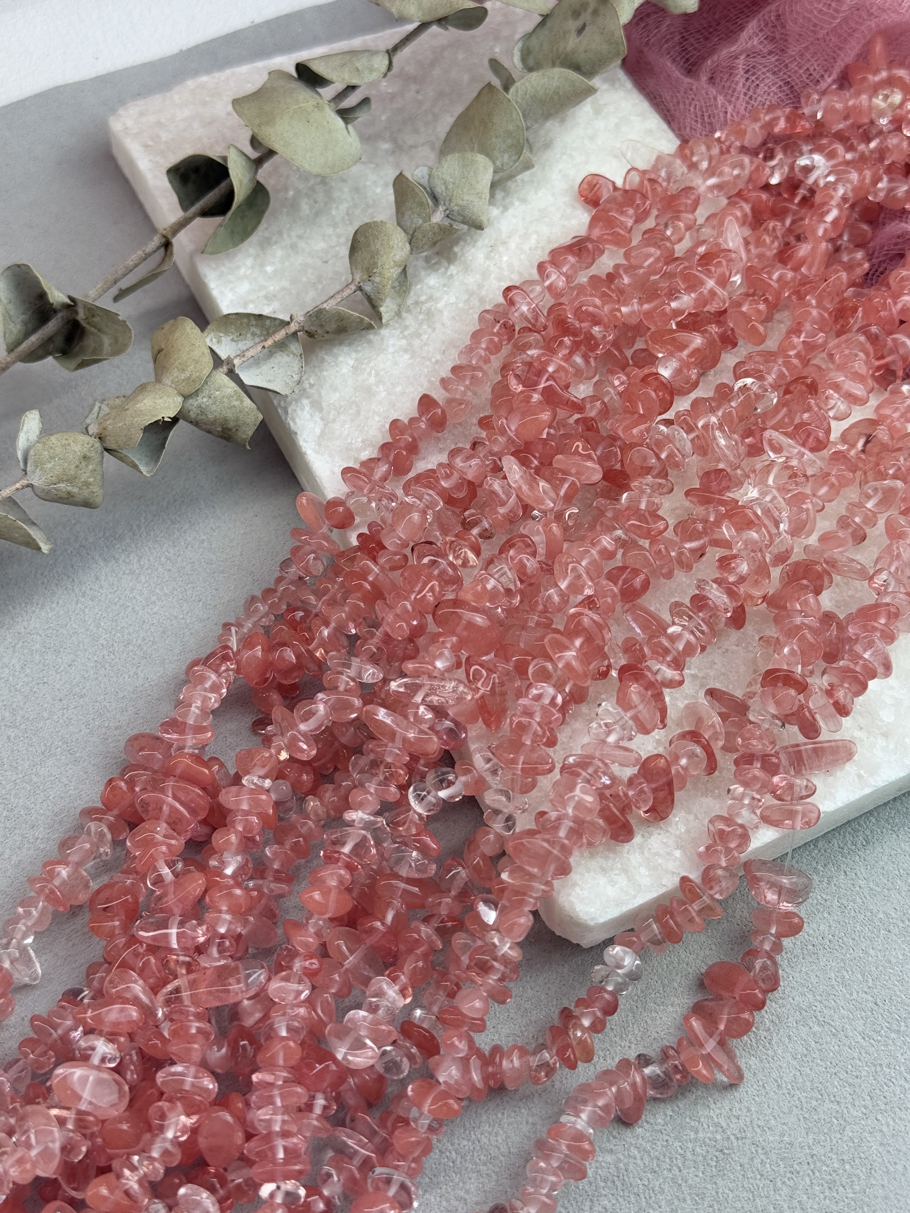 Стеклянные бусины красного цвета. Размер бусин (примерный) 5-8 мм. Продается россыпью или на нити длиной 80 см (нить иногда рвется и мы меняем фасовку на россыпь). Форма всех бусин разная, неопределенная (галька).