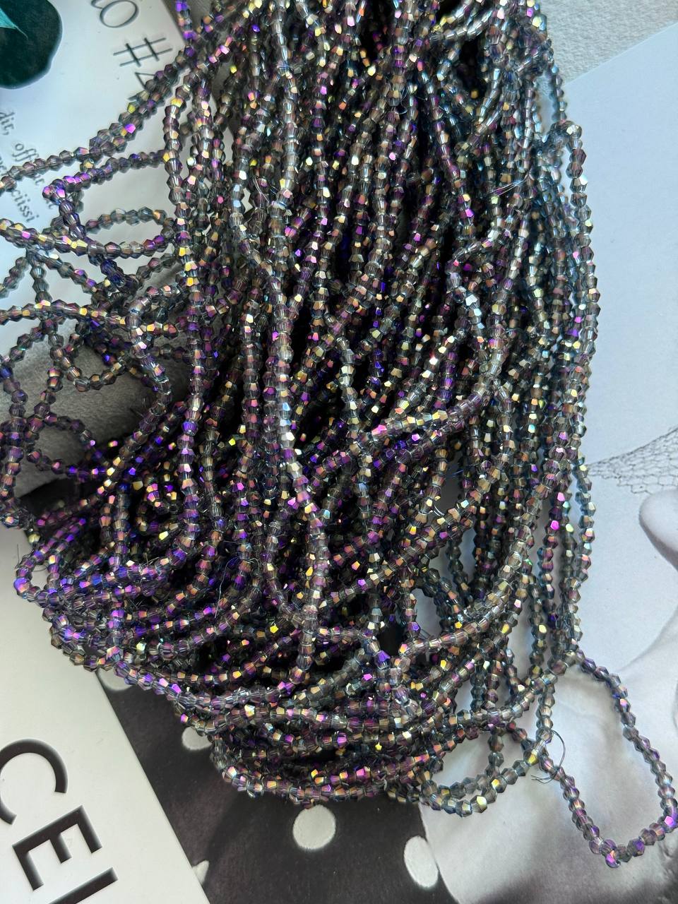 Стеклянные биконусы на нити для рукоделия и вышивки 2 мм, бензиновый