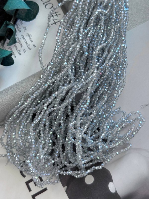 Стеклянные биконусы на нити для рукоделия и вышивки 2 мм, серо-голубой