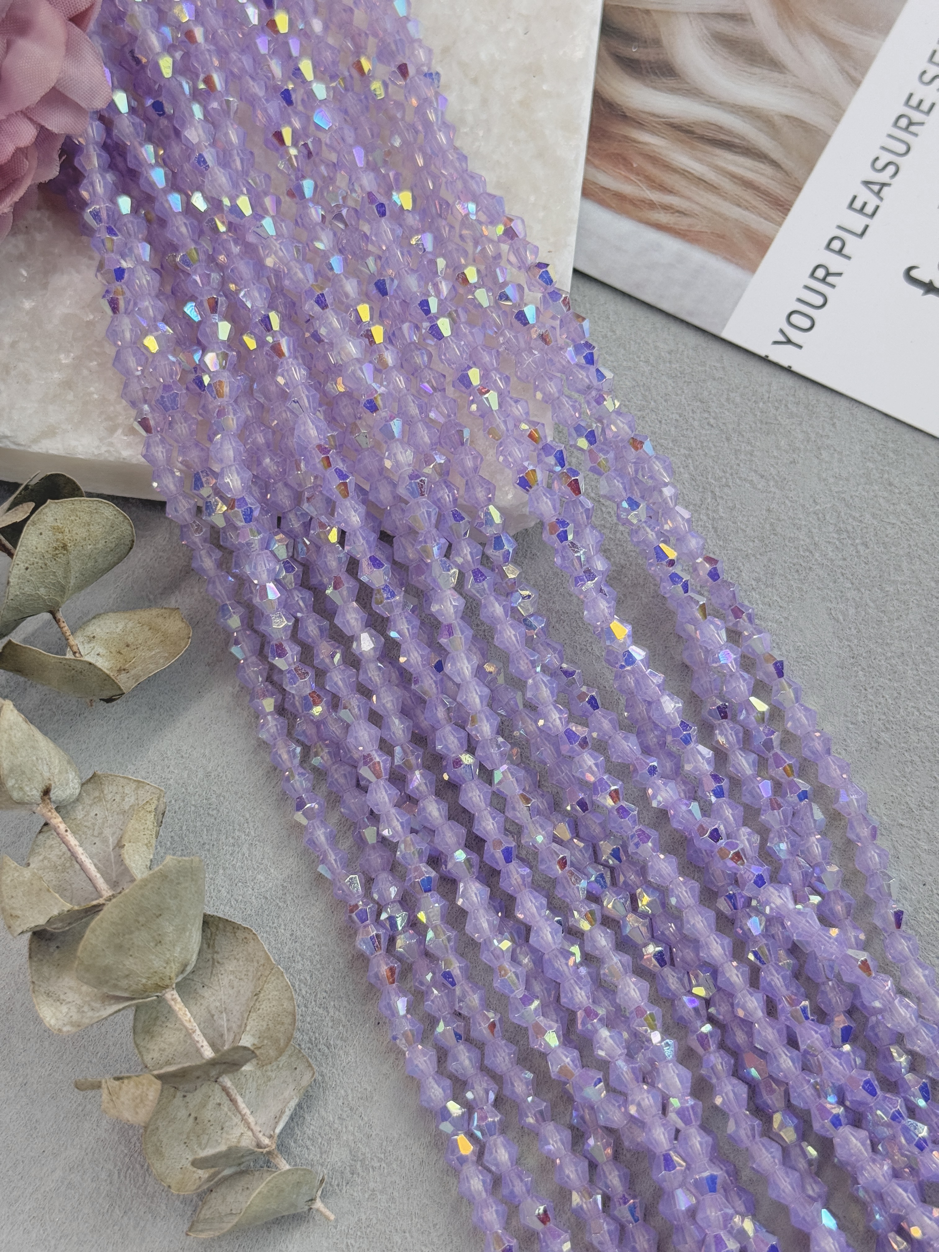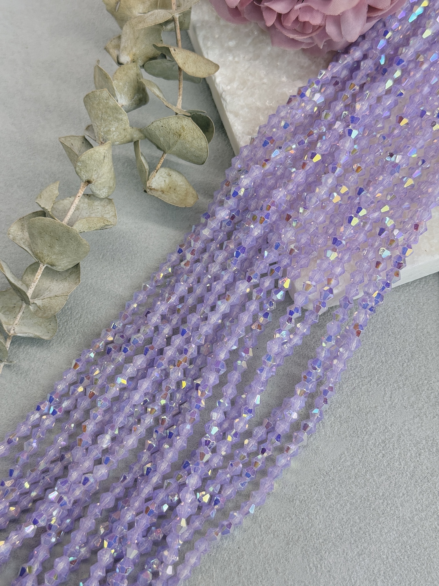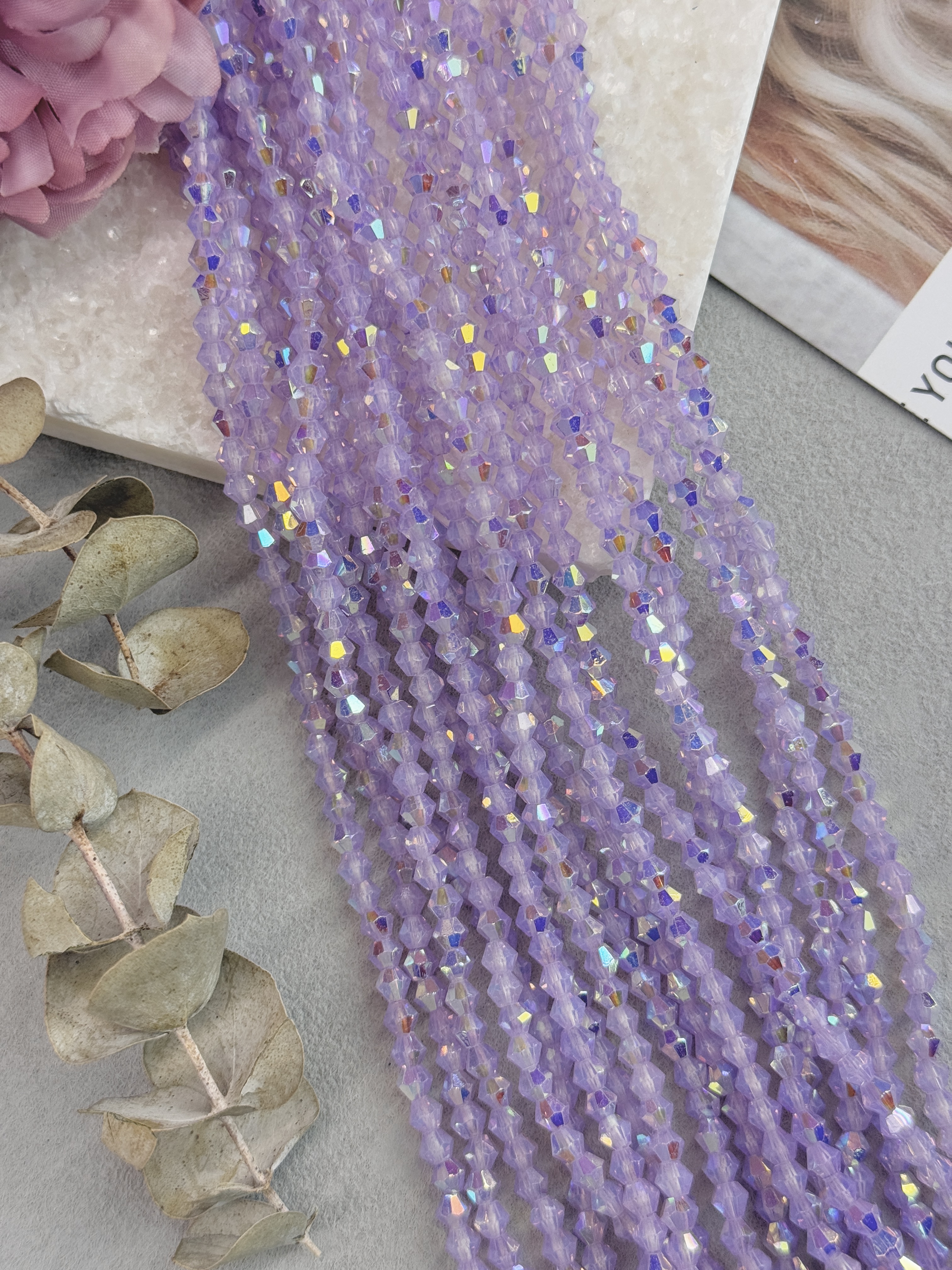 Стеклянные биконусы на нити для рукоделия и вышивки 4 мм фиалка, радужный
