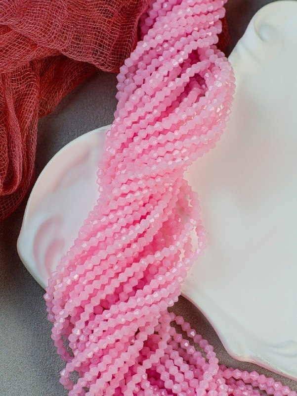 Биконусы 4 мм, розовый опал, нить 39 см