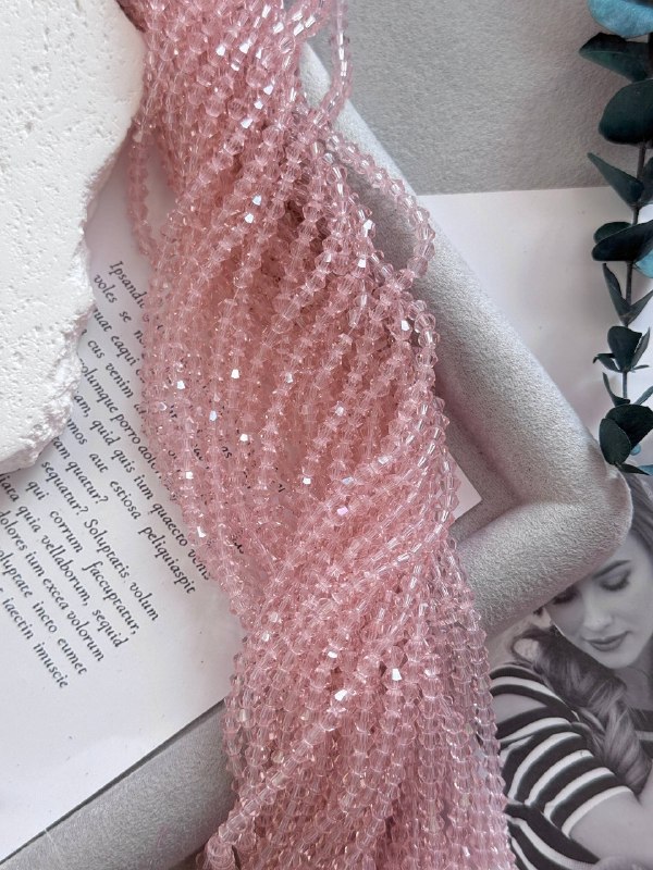 Стеклянные биконусы на нити для рукоделия и вышивки 4 мм, розовый персик