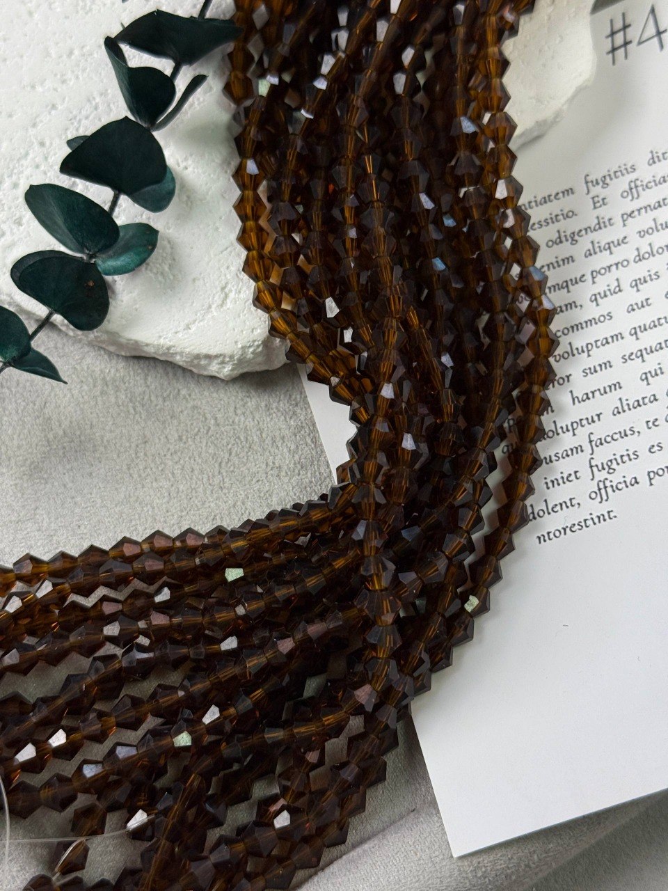 Стеклянные биконусы на нити для рукоделия и вышивки 6 мм, коричневый