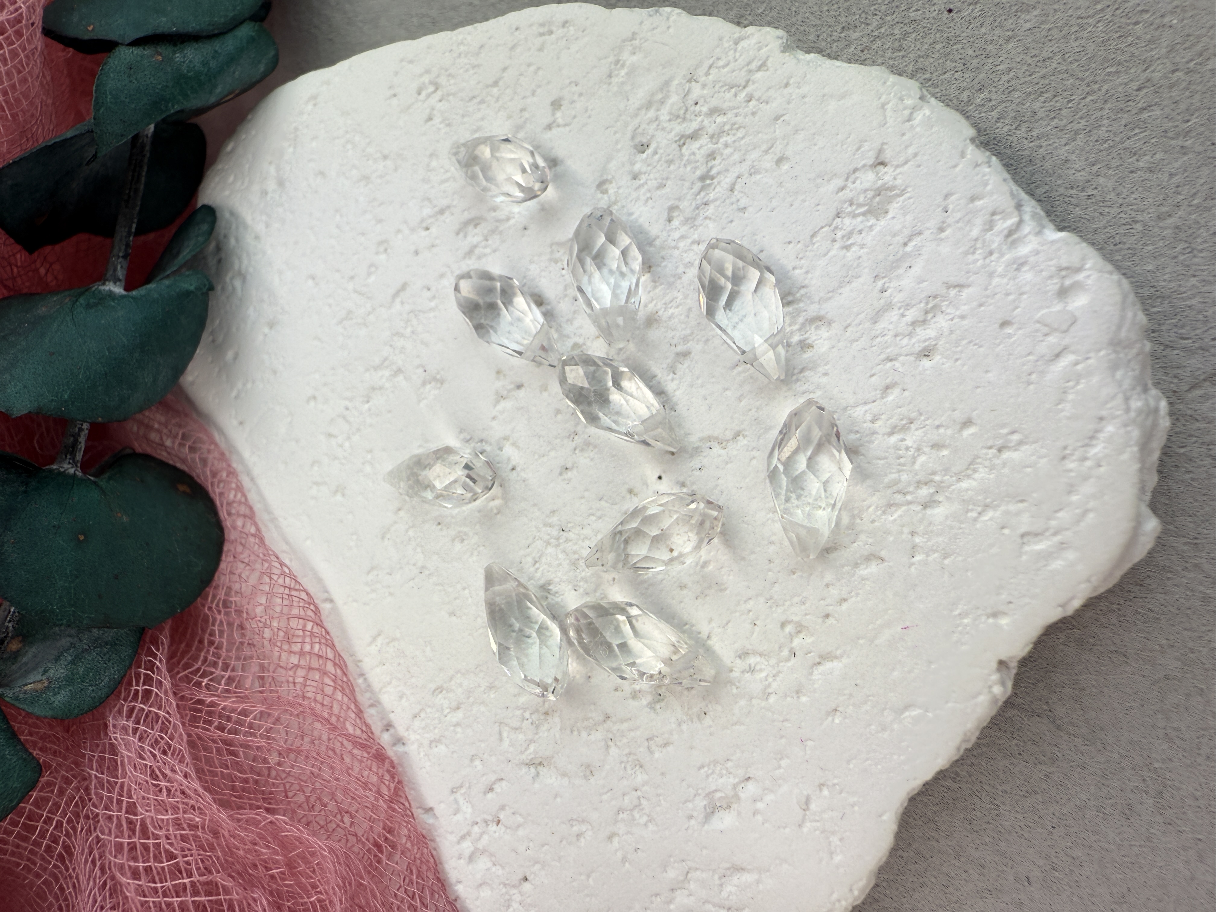 Бусины из стекла в форме граненной вытянутой капли 12*6 мм. Идеальны для плетения и в качестве подвесок. Не вызывают аллергии, не выцветают и не окрашивают кожу. Идеальный материал для сборки украшений ручной работы. Продается россыпью 10 штук.