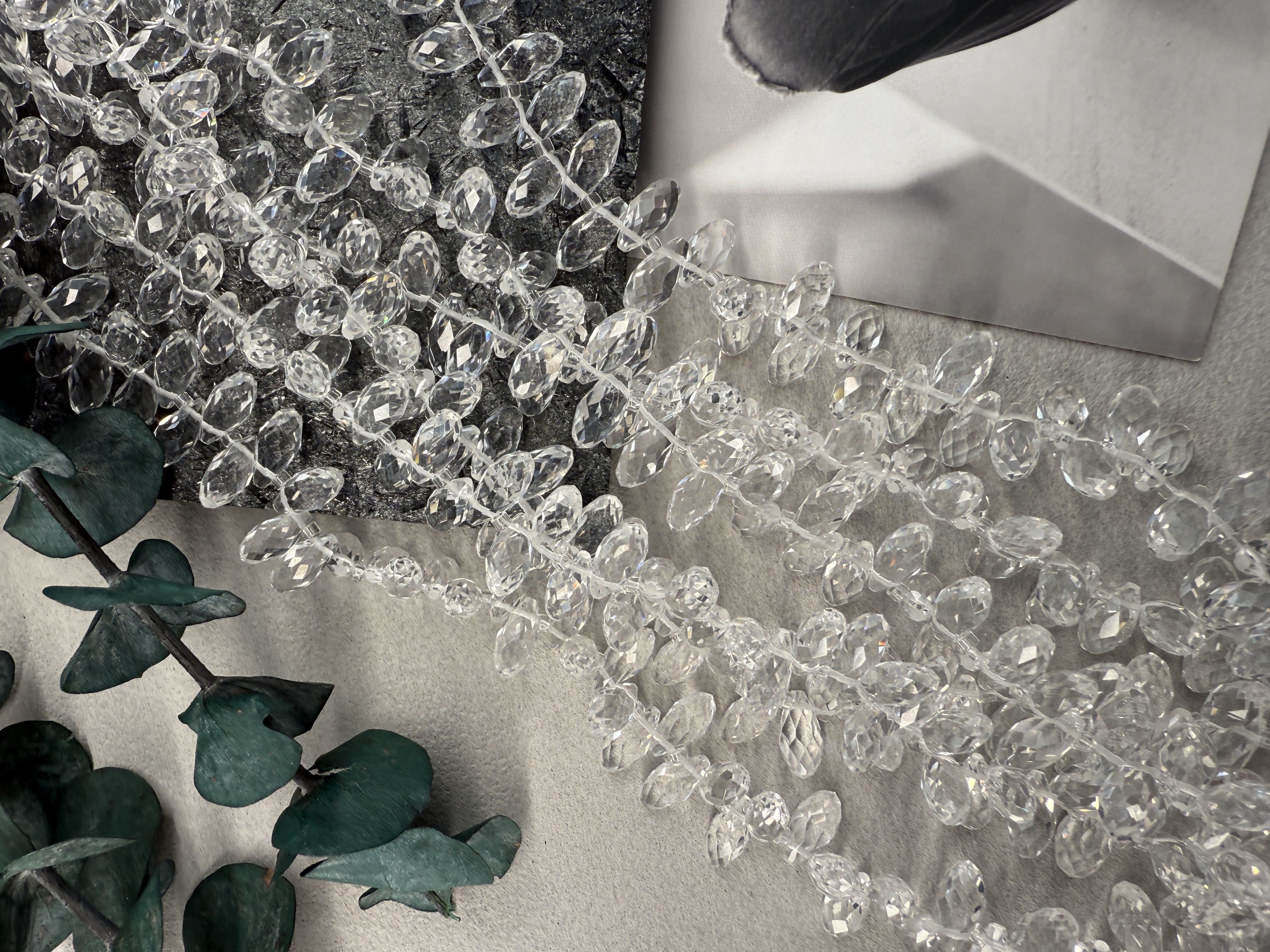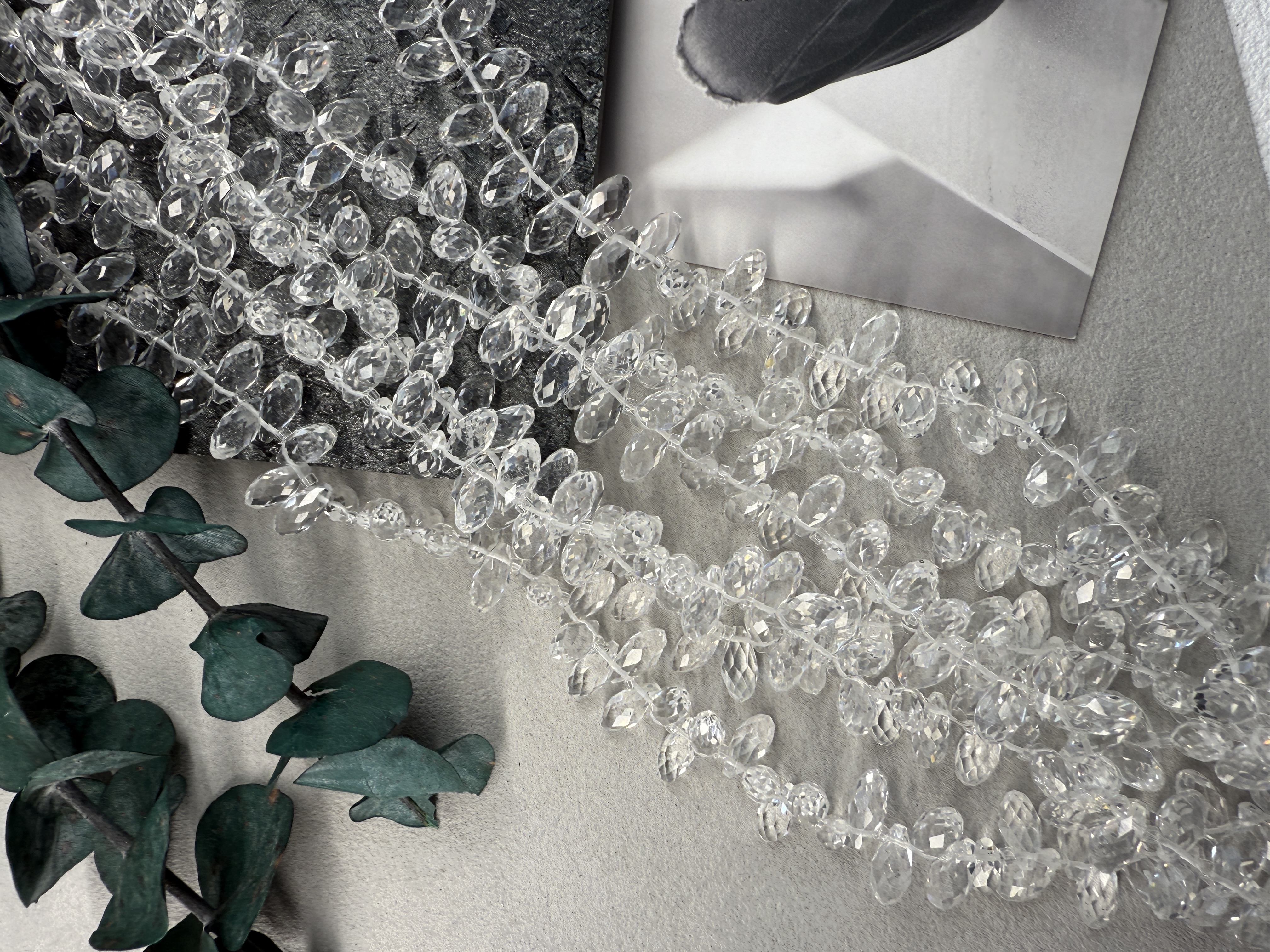 Бусины из стекла в форме граненной вытянутой капли 12*6 мм. Идеальны для плетения и в качестве подвесок. Не вызывают аллергии, не выцветают и не окрашивают кожу. Идеальный материал для сборки украшений ручной работы. Продается на нити примерно 42 см, иногда нить рвется и мы кладем в пакетик россыпью.