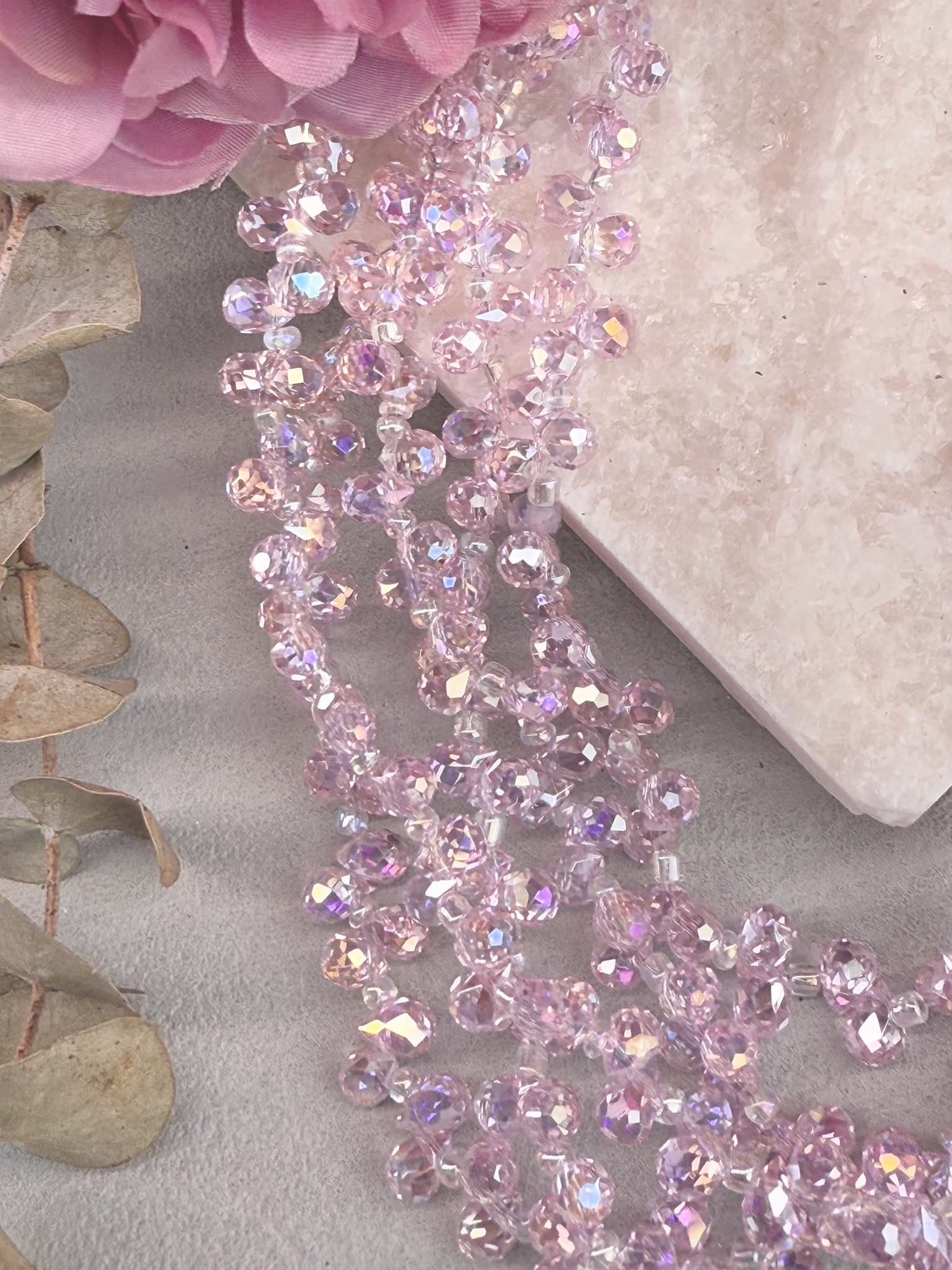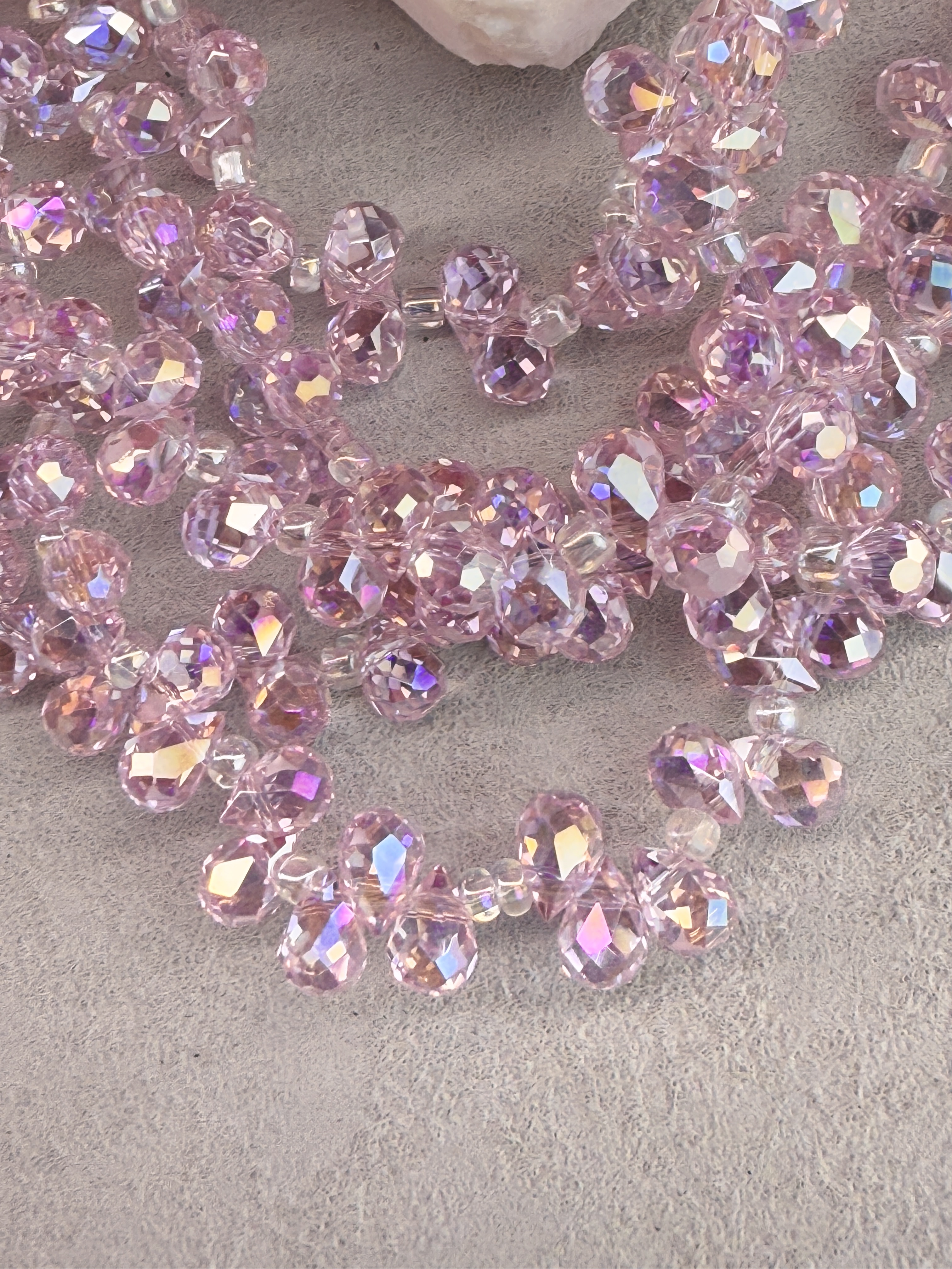 Бусины из хрустального стекла в форме граненной капли 6*4 мм. Идеальны для плетения и в качестве подвесок. Не вызывают аллергии, не выцветают и не окрашивают кожу. Идеальный материал для сборки украшений ручной работы. Длина нити около 40 см (может отличаться на пару сантиметров в зависимости от партии). Продается на нити или россыпью (иногда нить рвется при фасовке и мы кладем бусины в пакетик).