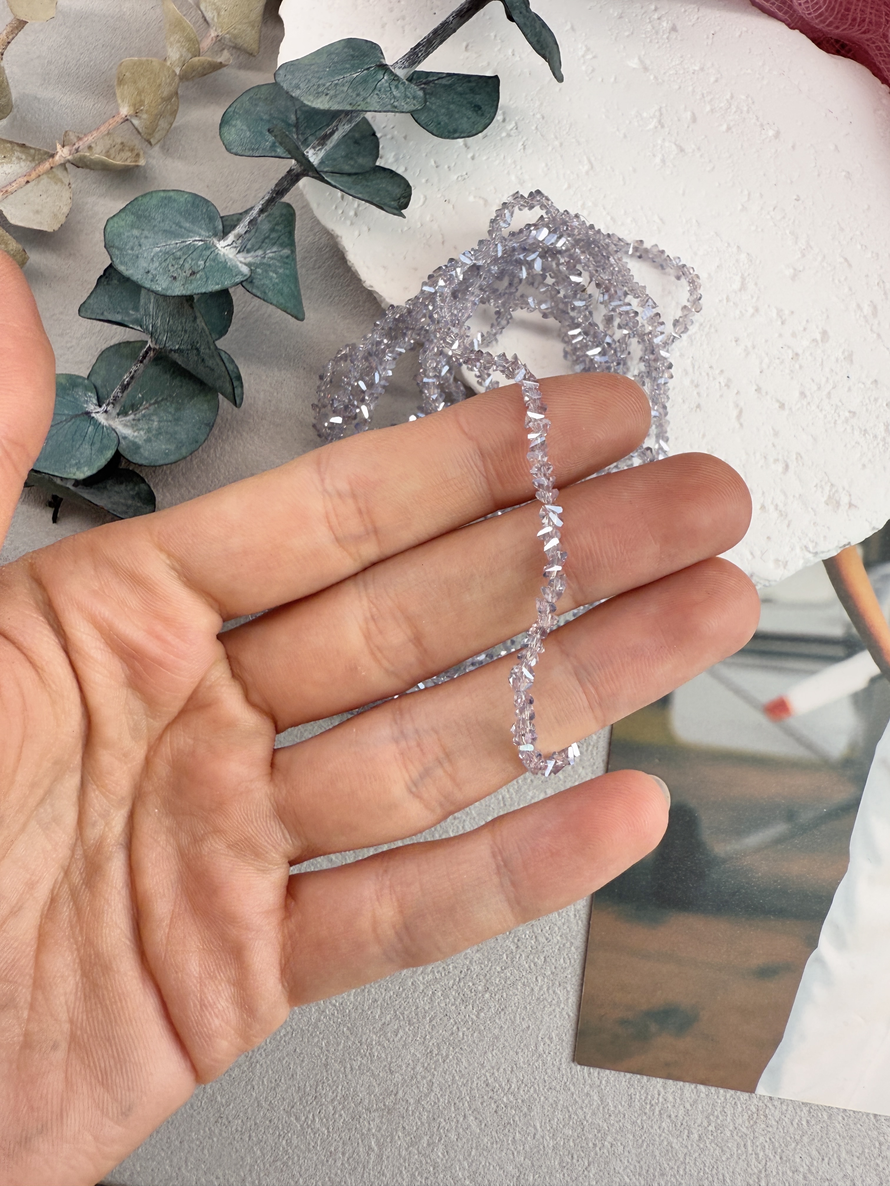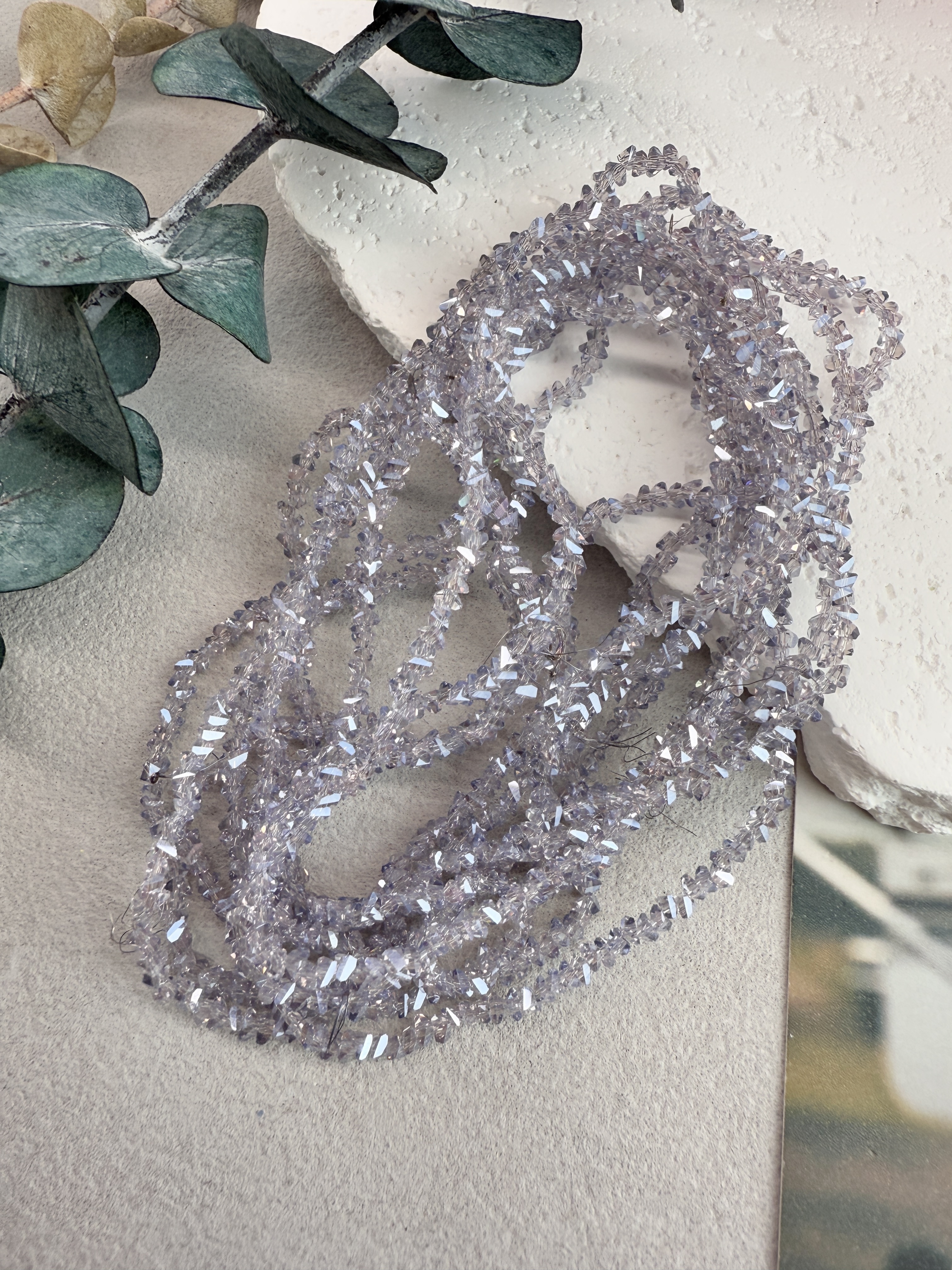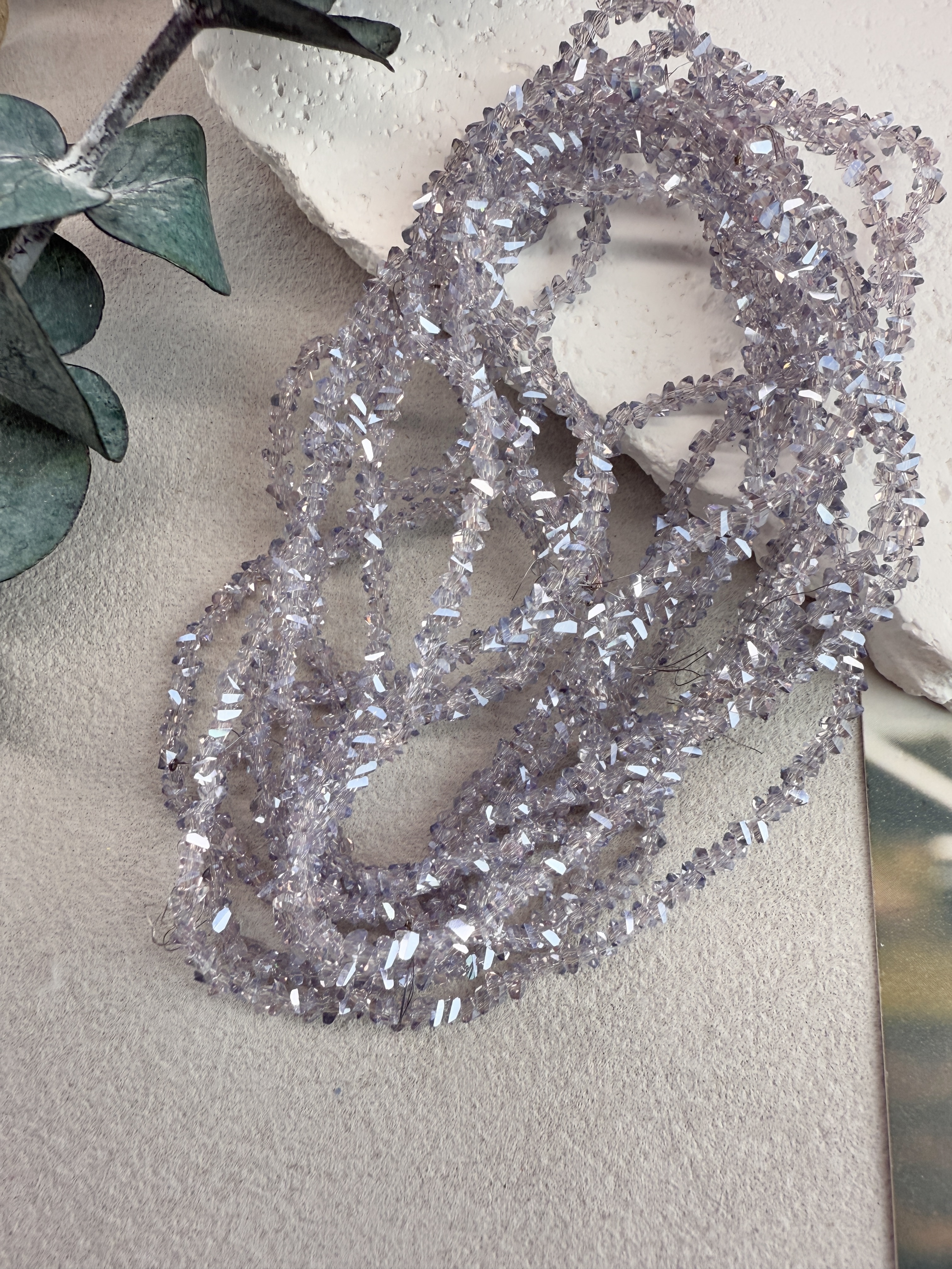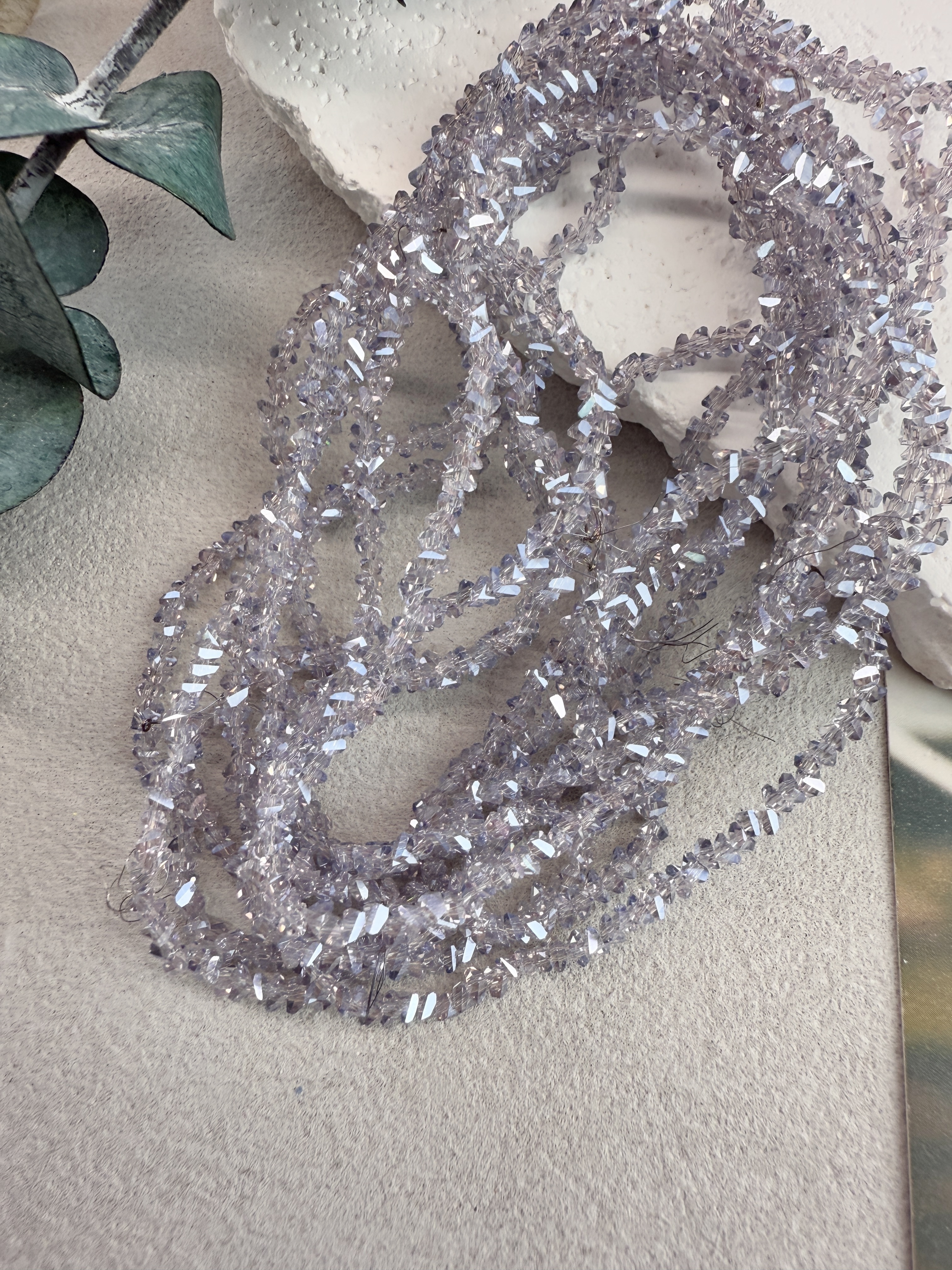 Бусины из хрустального стекла в форме треугольника 2 мм. Идеальны для плетения, вышивки и создания украшений. Не вызывают аллергии, не выцветают и не окрашивают кожу. Идеальный материал для сборки украшений ручной работы. Длина нити около 21 см (может отличаться на пару сантиметров в зависимости от партии). Продается на нити или россыпью (иногда нить рвется при фасовке и мы кладем бусины в пакетик).