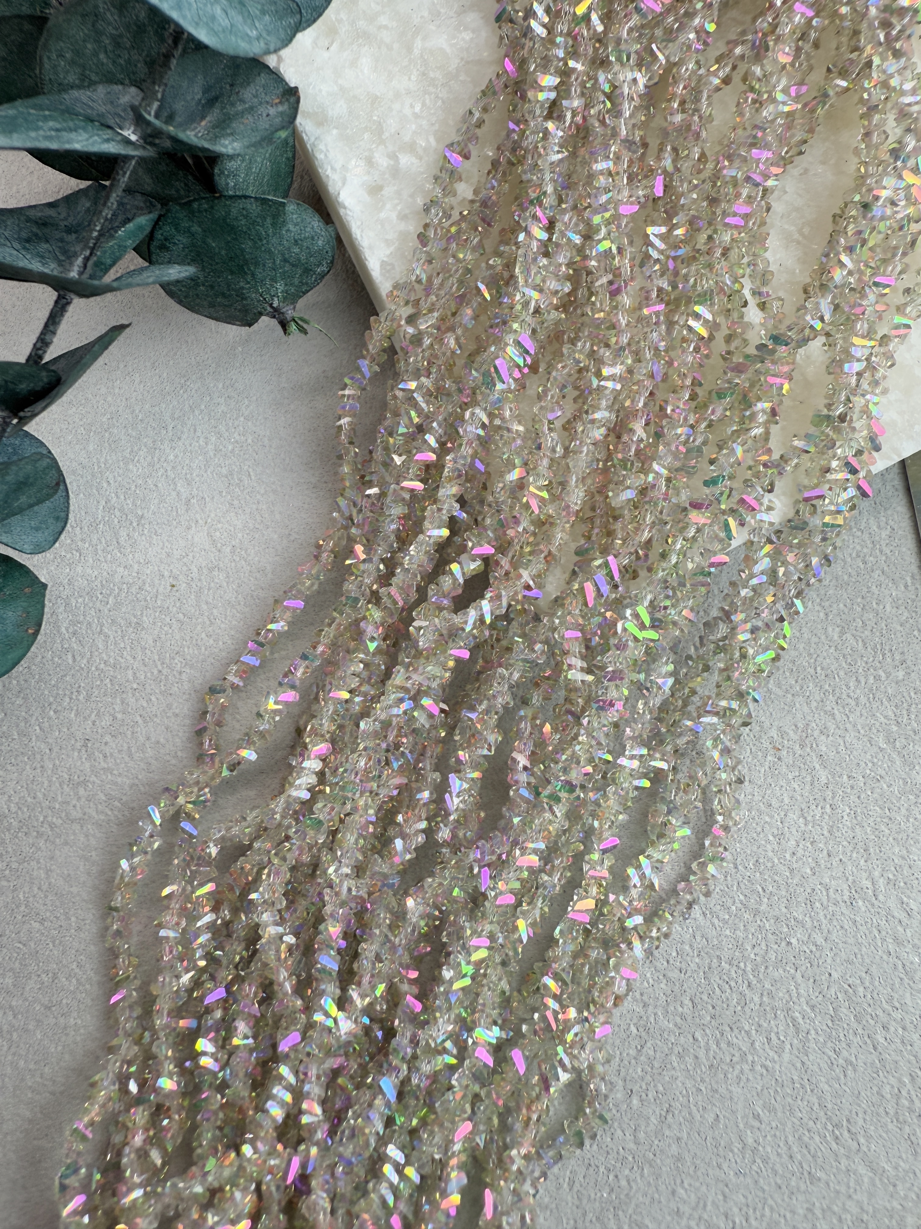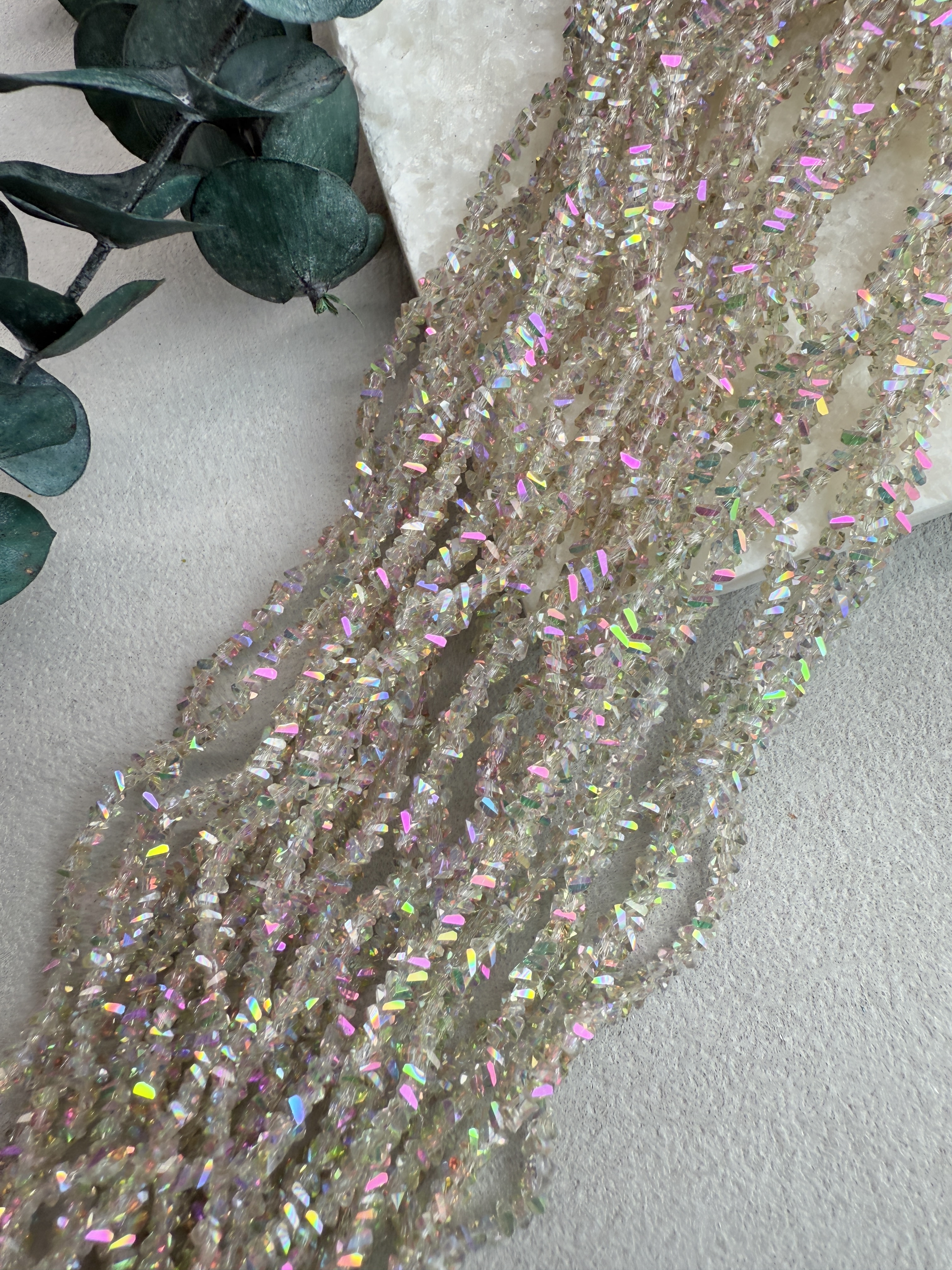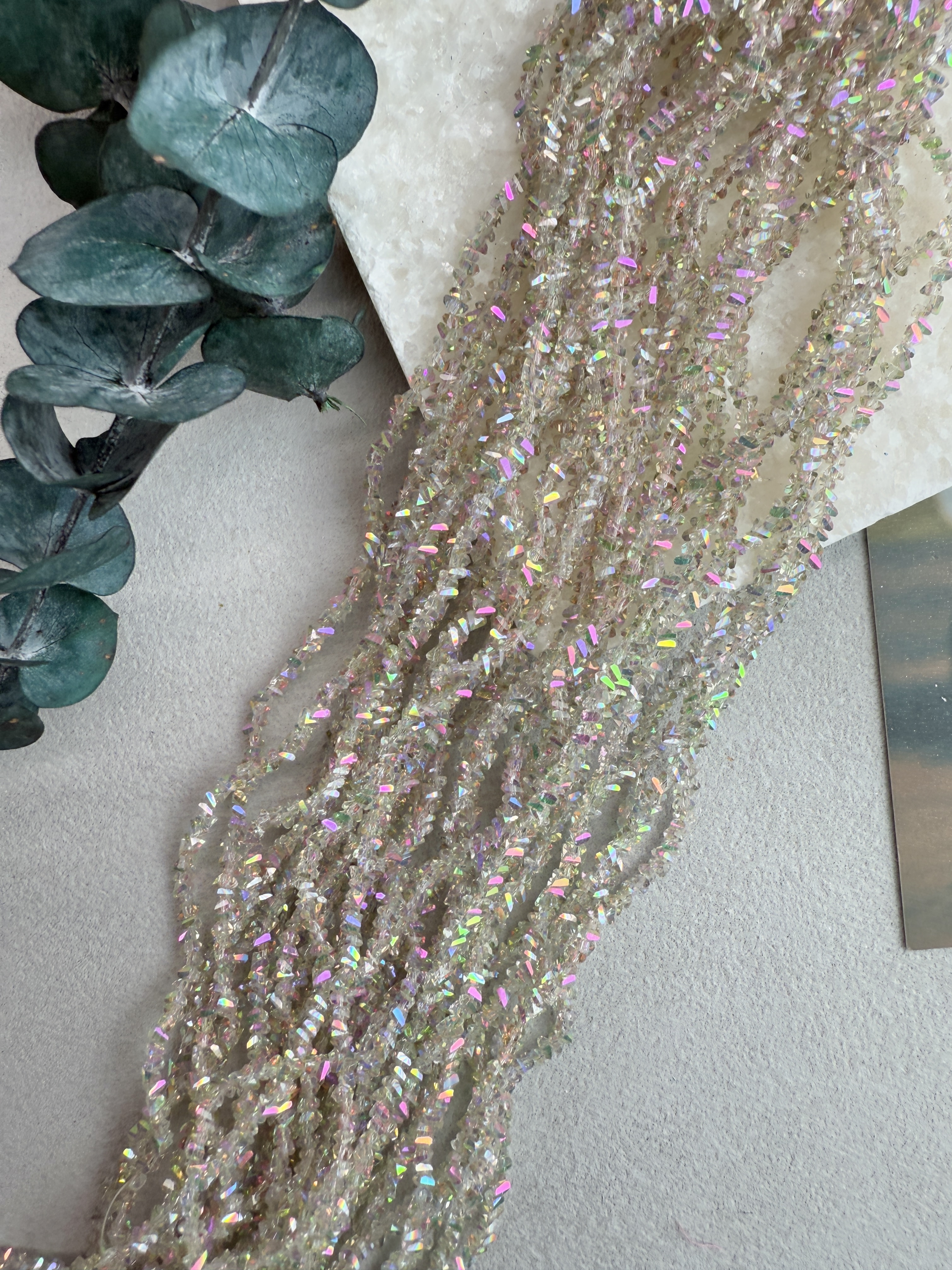 Бусины из хрустального стекла в форме треугольника 2 мм. Идеальны для плетения, вышивки и создания украшений. Не вызывают аллергии, не выцветают и не окрашивают кожу. Идеальный материал для сборки украшений ручной работы. Длина нити около 24 см (может отличаться на пару сантиметров в зависимости от партии). Продается на нити или россыпью (иногда нить рвется при фасовке и мы кладем бусины в пакетик).