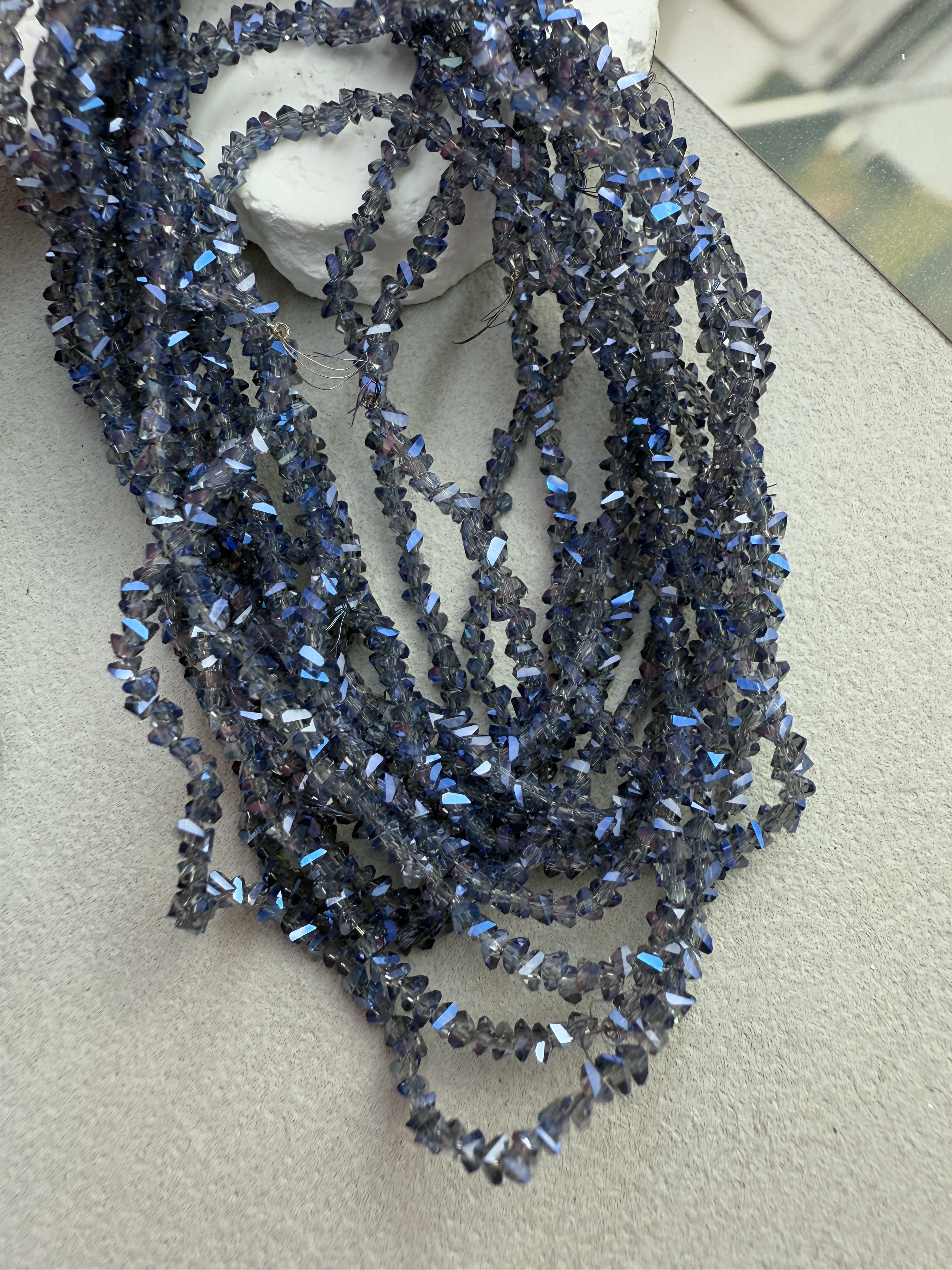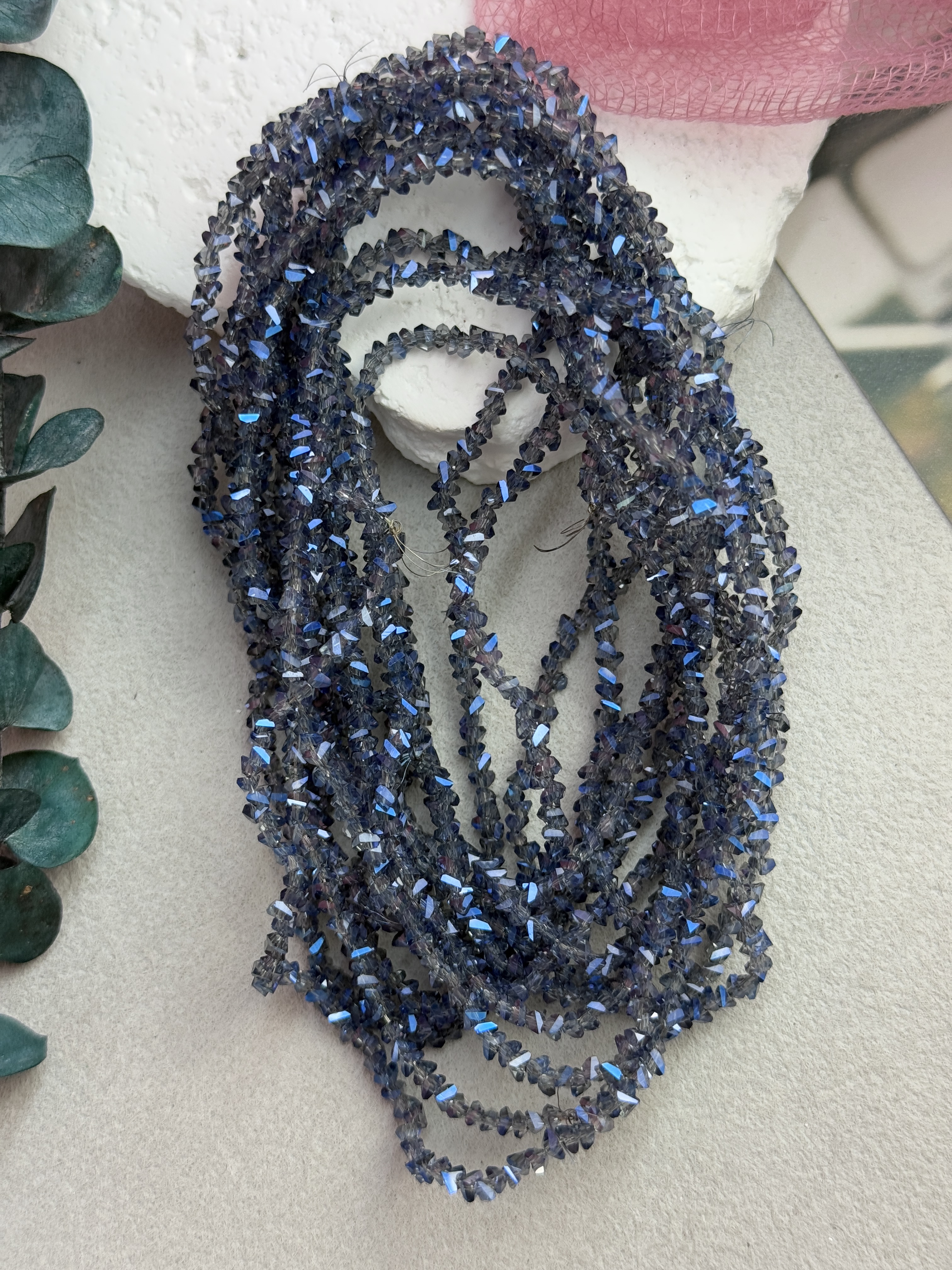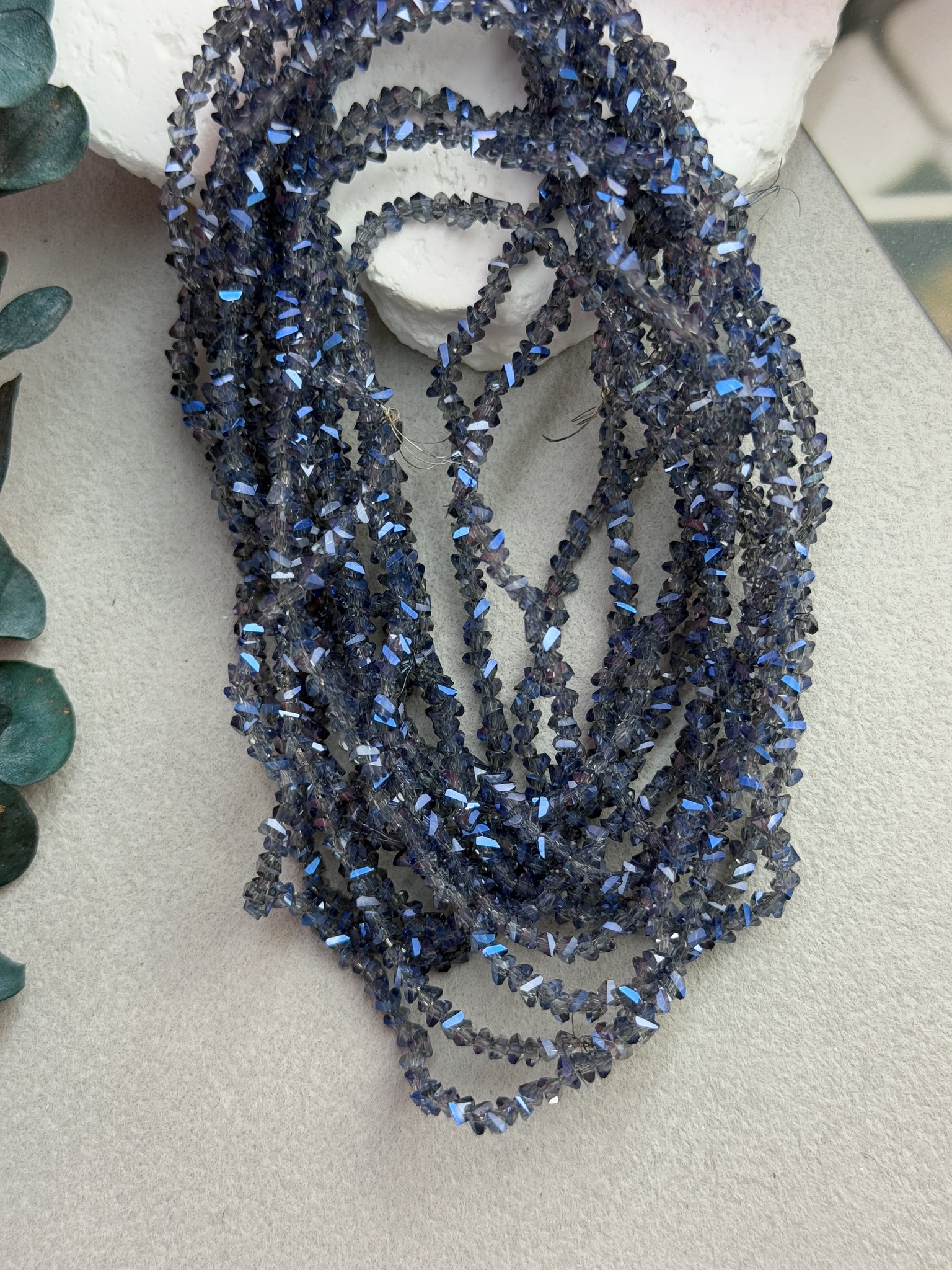Бусины из хрустального стекла в форме треугольника 2 мм. Идеальны для плетения, вышивки и создания украшений. Не вызывают аллергии, не выцветают и не окрашивают кожу. Идеальный материал для сборки украшений ручной работы. Длина нити около 22 см (может отличаться на пару сантиметров в зависимости от партии). Продается на нити или россыпью (иногда нить рвется при фасовке и мы кладем бусины в пакетик).