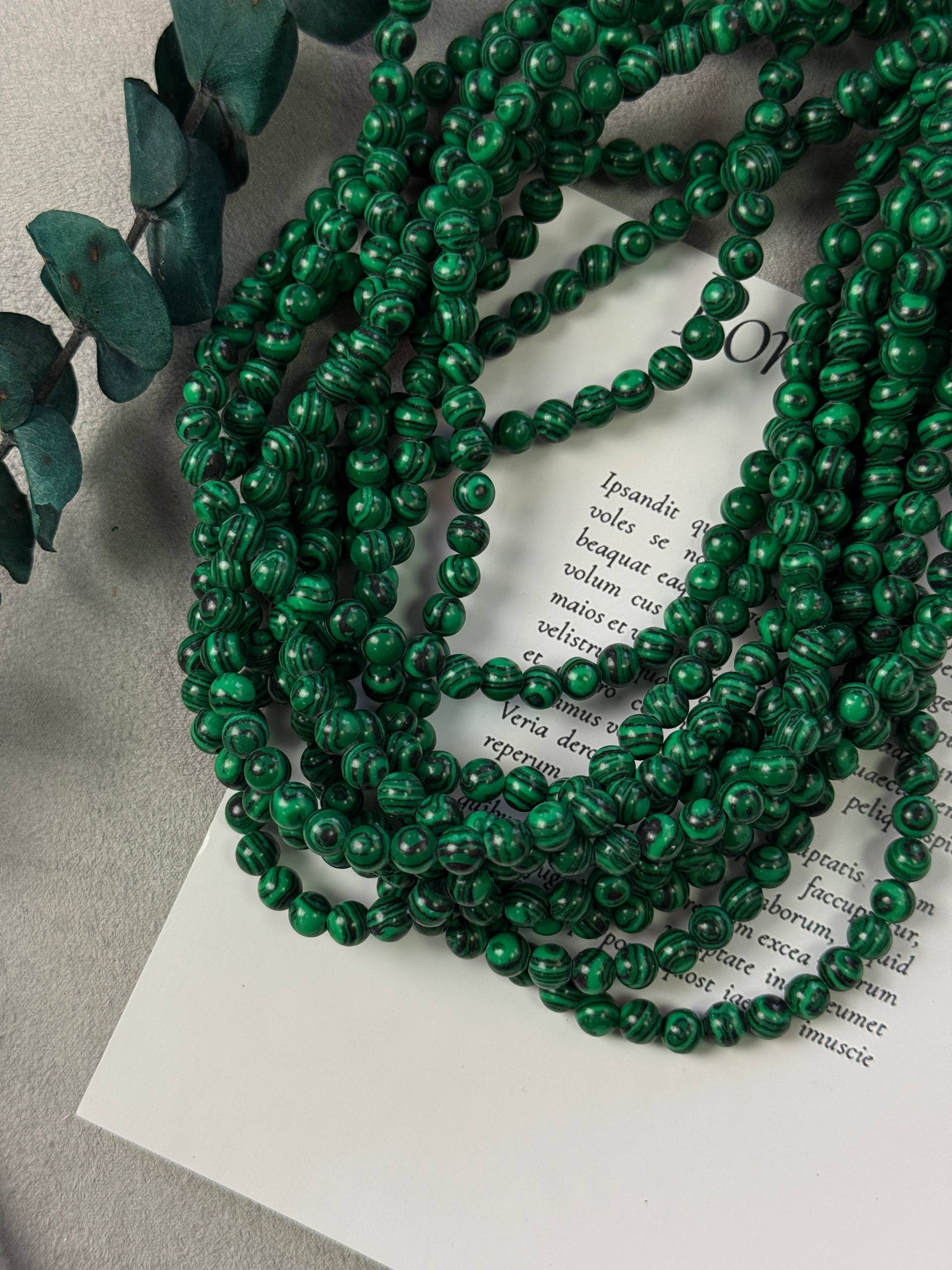 Бусины из синтетического малахита 6 мм - стильный аксессуар, подчеркивающий вашу индивидуальность! Природная энергетика минерала приносит гармонию и спокойствие. Идеально подходит для кулонов, браслетов и серег. Добавьте частицу природы в ваш образ уже сегодня!