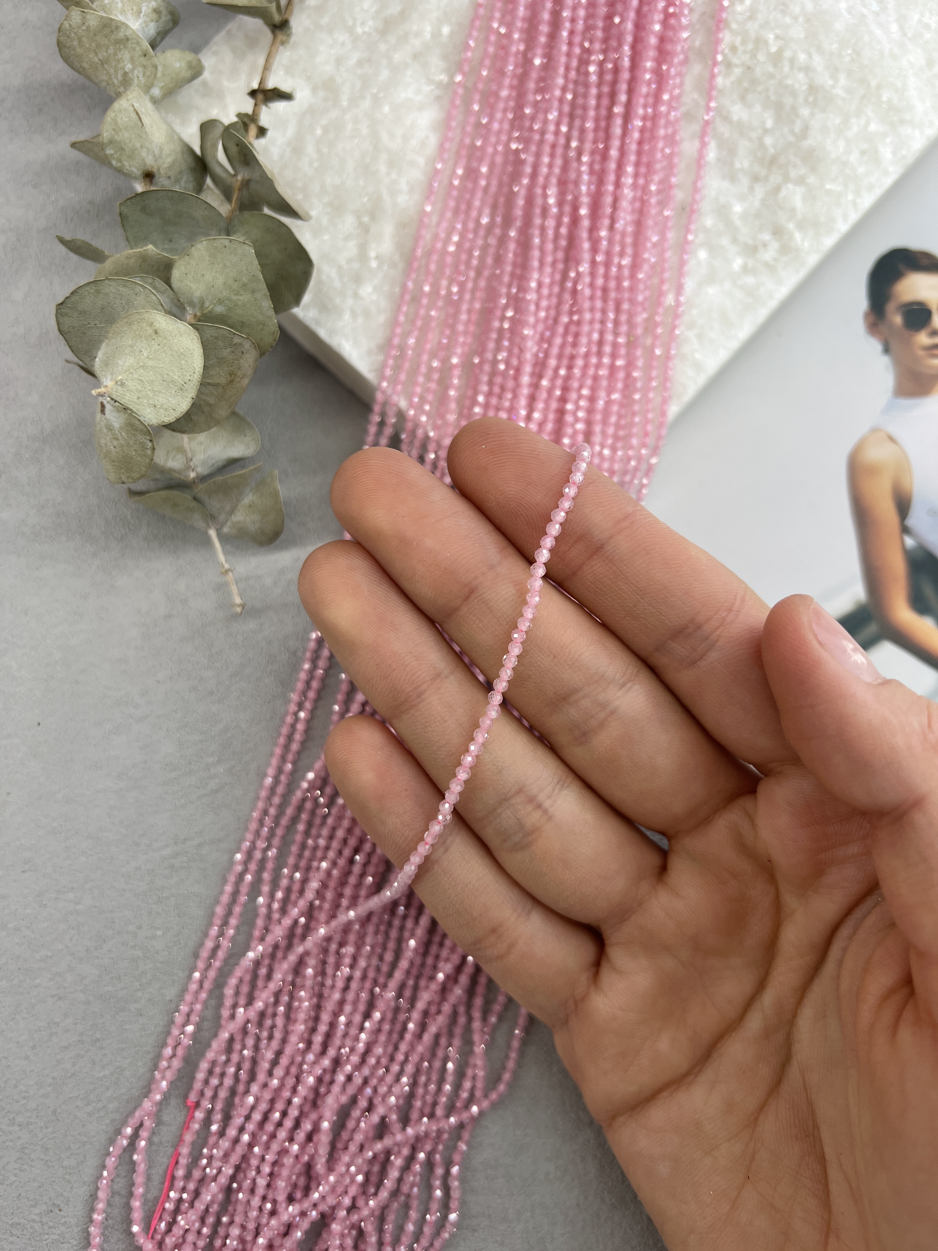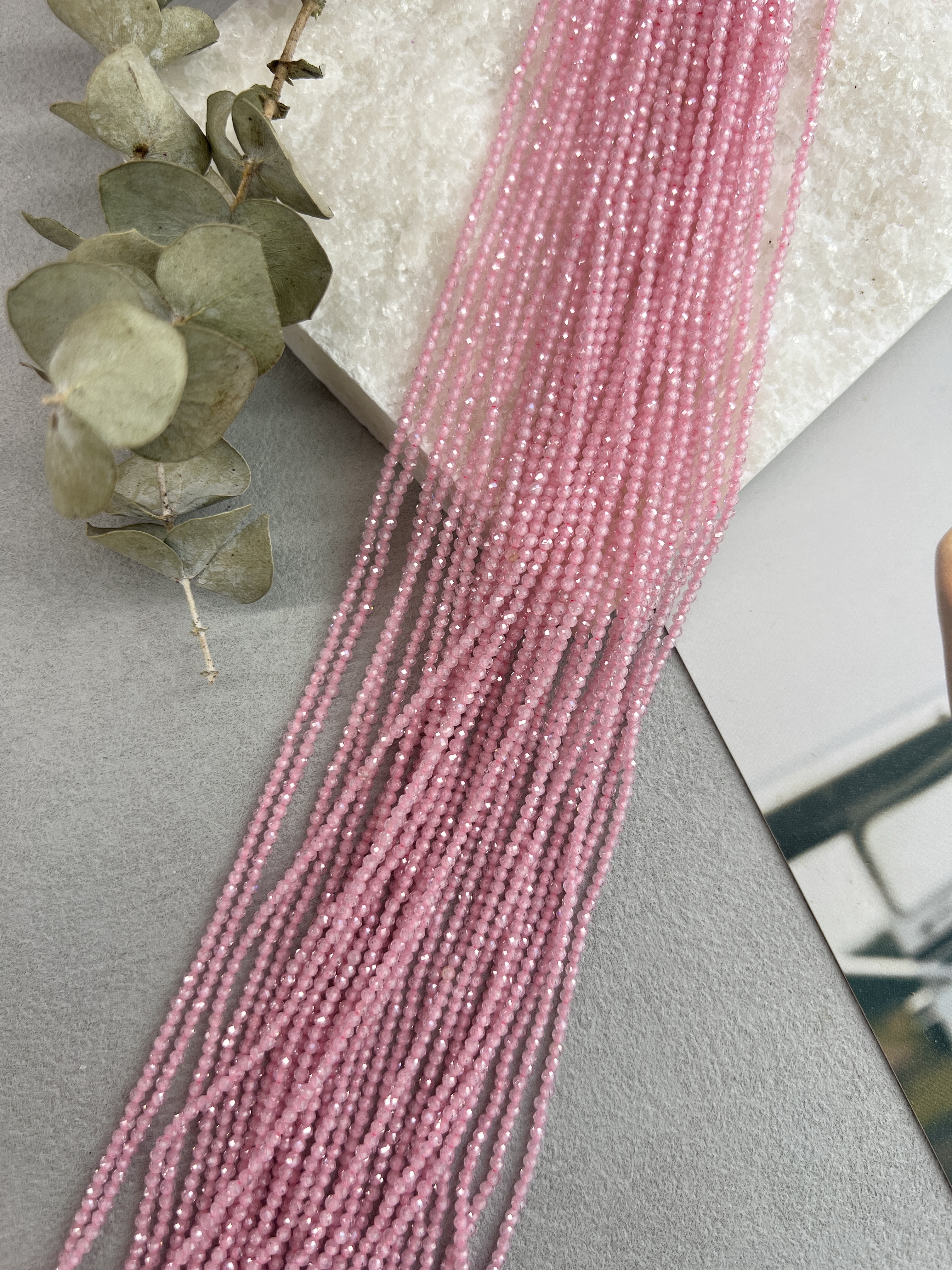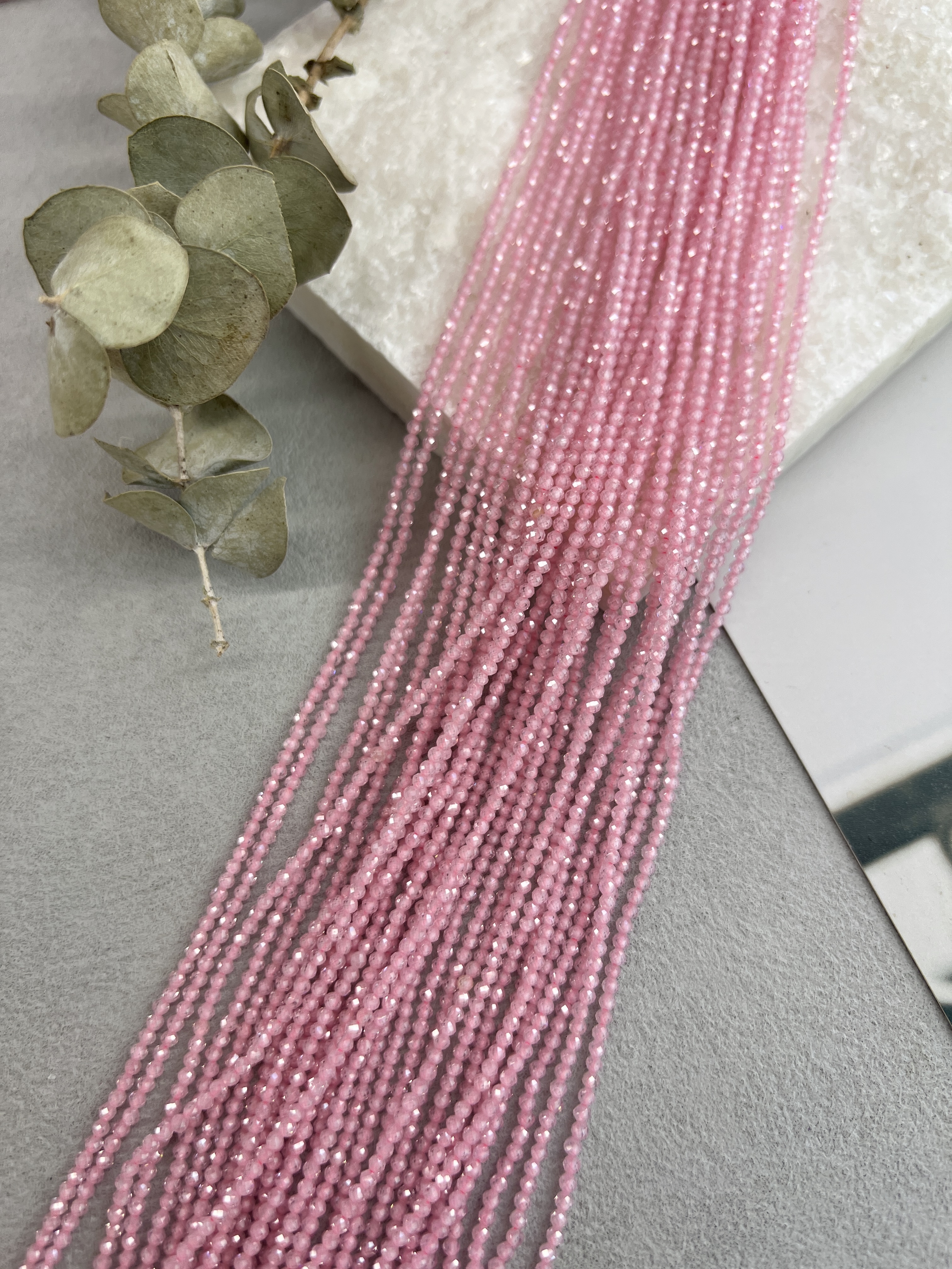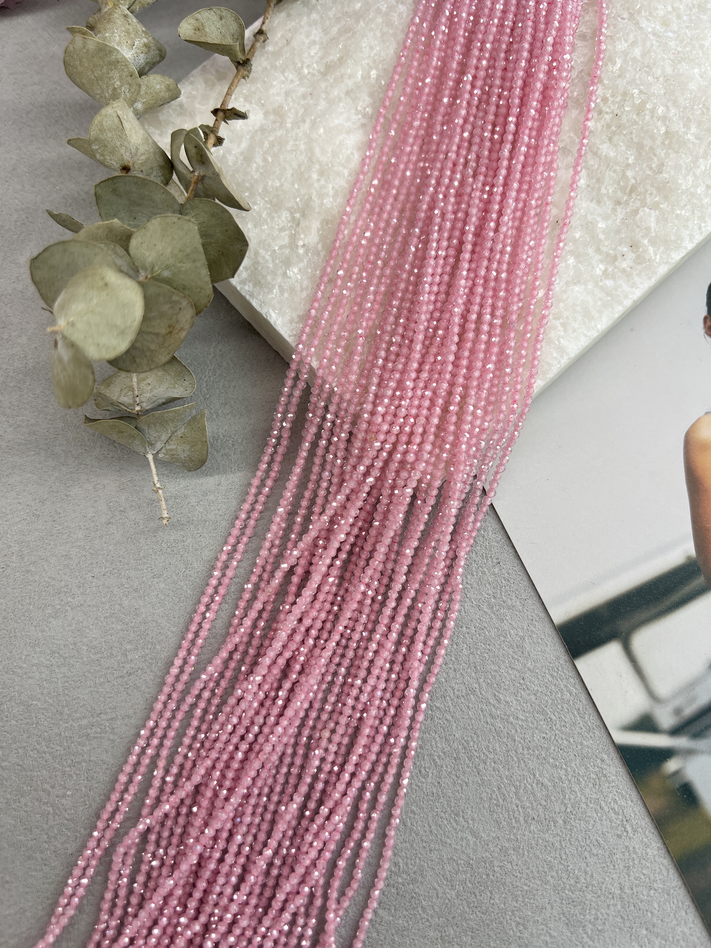 Шпинель ювелирной огранки (шар) 2 мм. Идеальный материал для создания украшений ручной работы: не выцветают, не вызывают аллергии и имеют превосходный блеск. Возможны неоднородности в цвете или огранке. Длина нити около 37 см (возможны отличия в пару см из-за разных партий). Цвет: розовый.