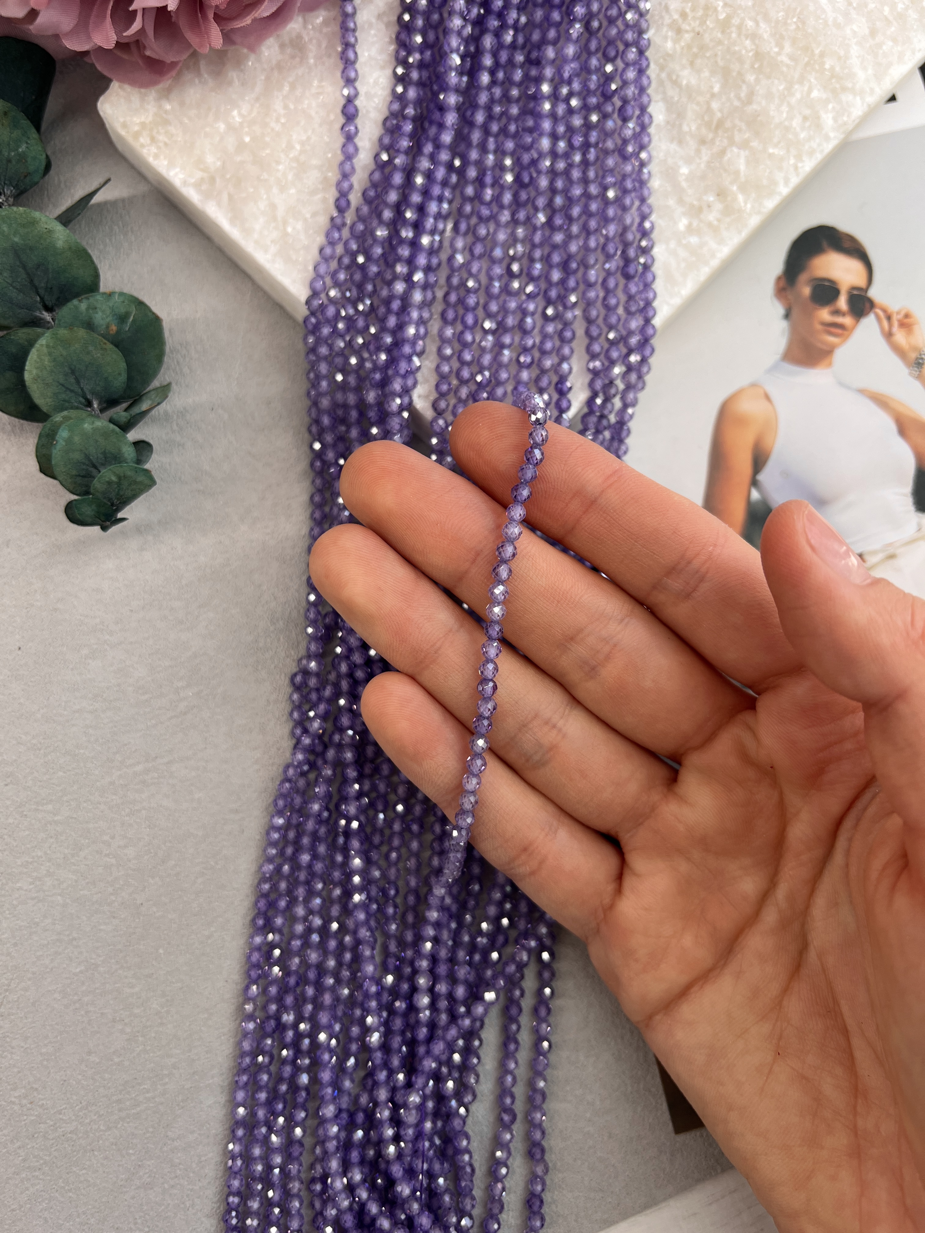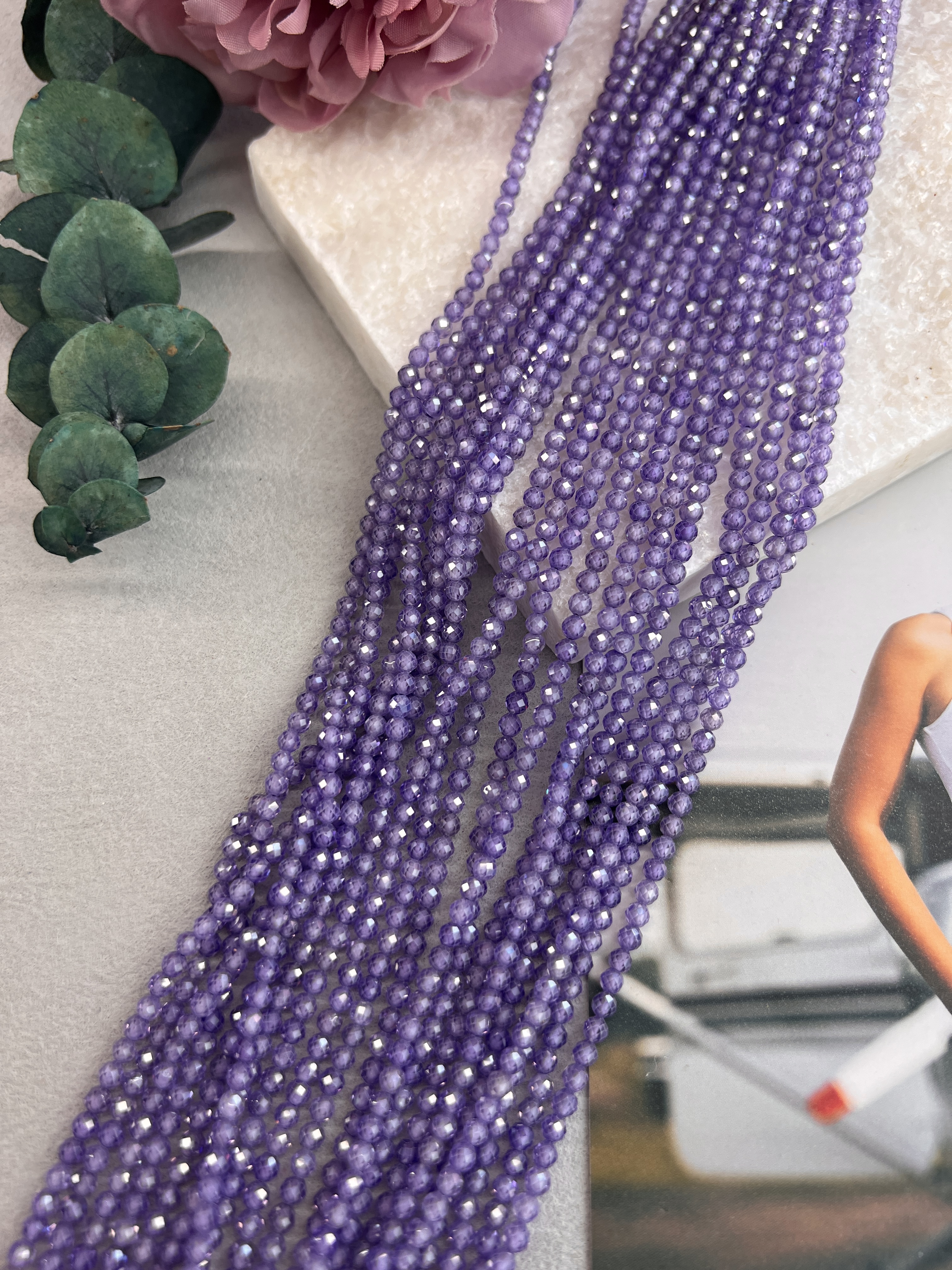 Шпинель ювелирной огранки (шар) 3 мм. Идеальный материал для создания украшений ручной работы: не выцветают, не вызывают аллергии и имеют превосходный блеск. Возможны неоднородности в цвете или огранке. Длина нити около 37 см (возможны отличия в пару см из-за разных партий). Цвет: фиолетовый неоднородный с помутнениями.