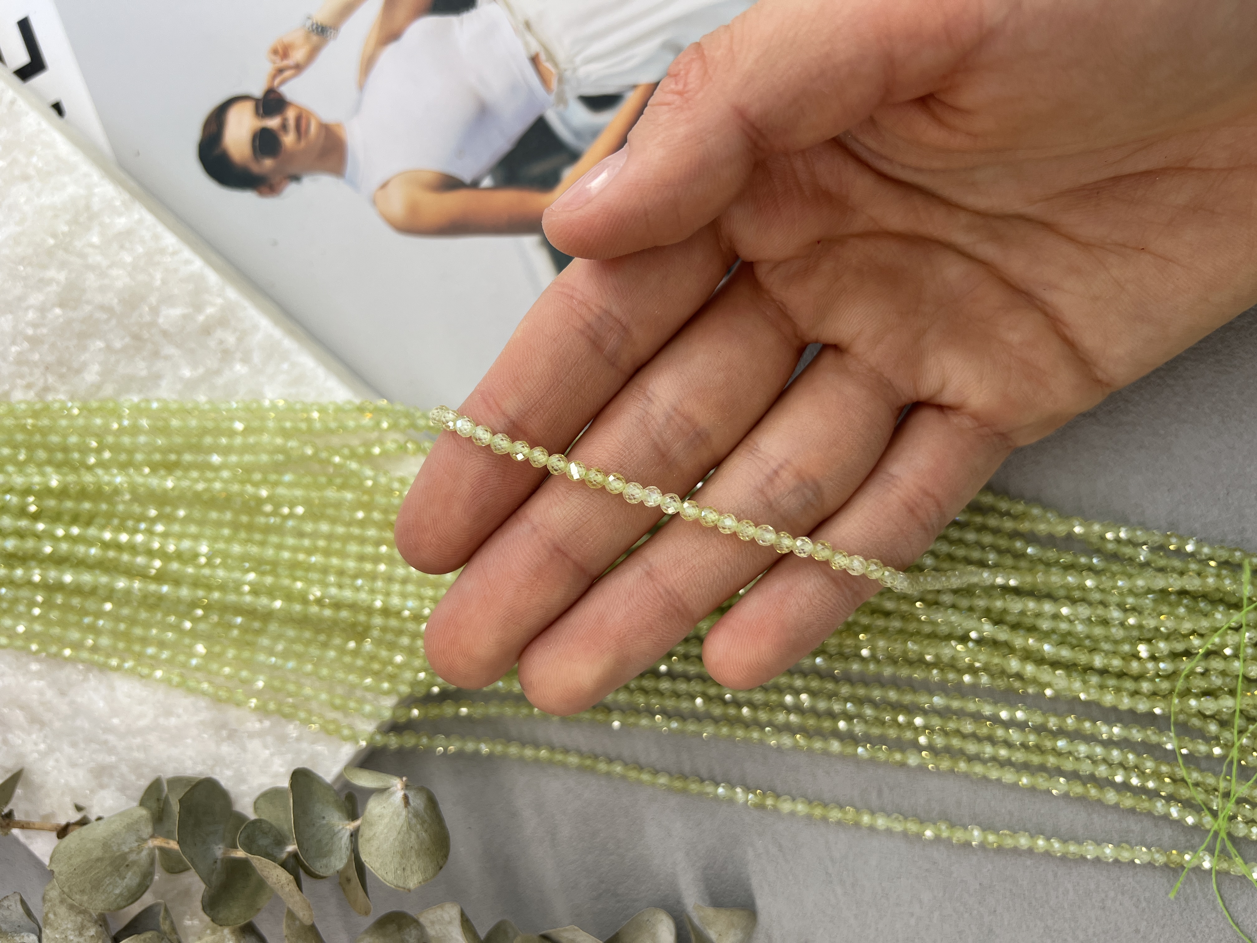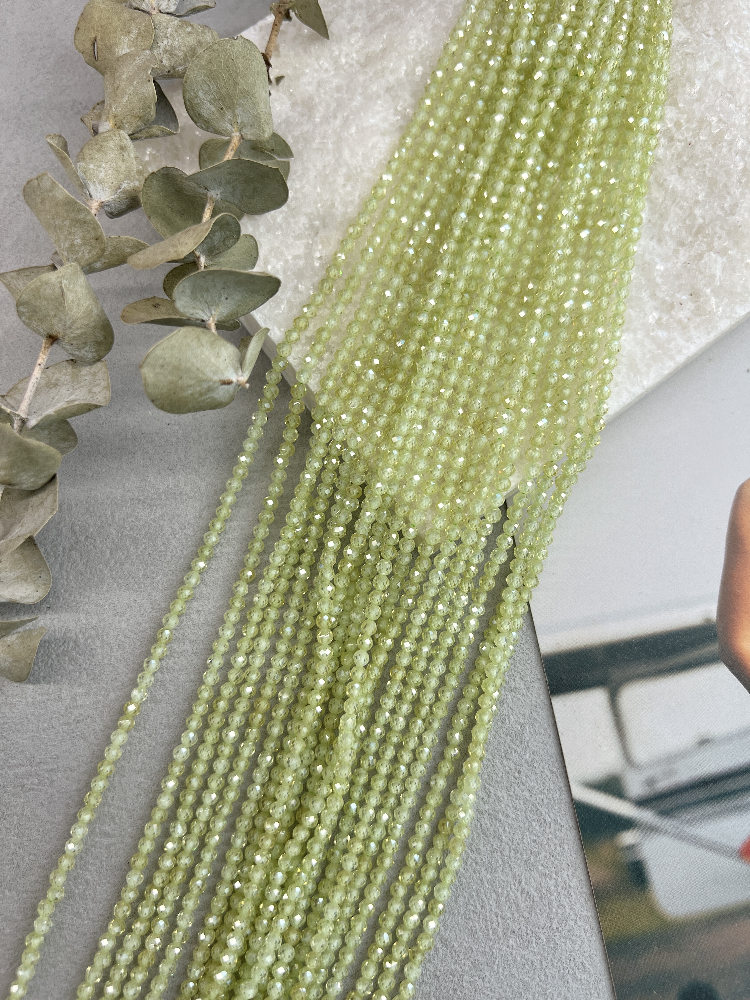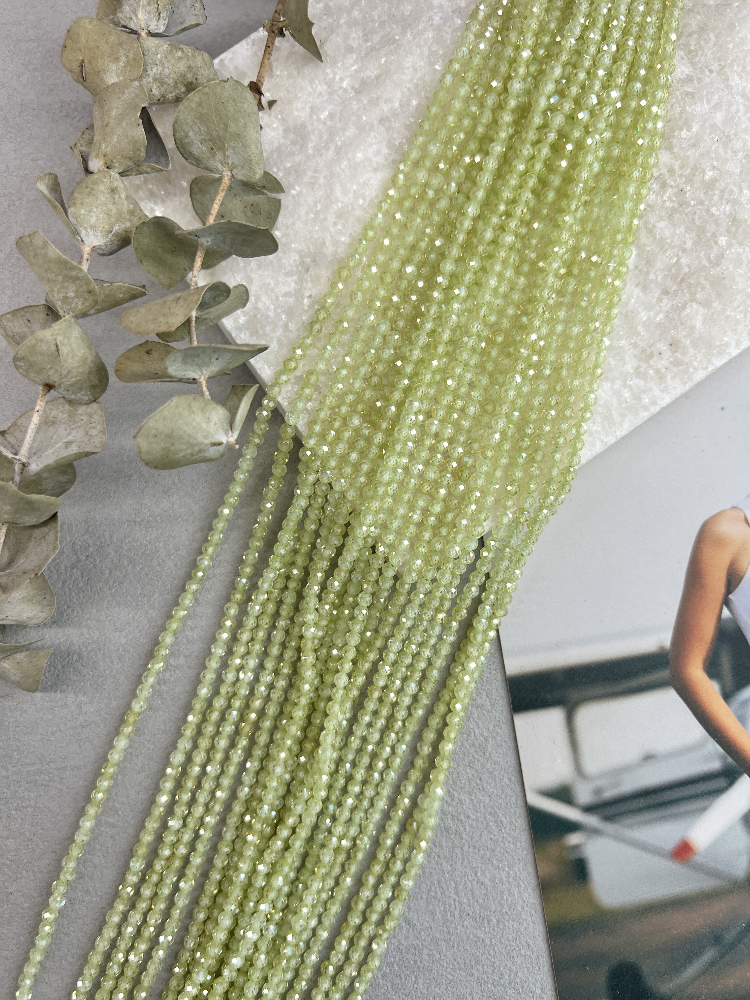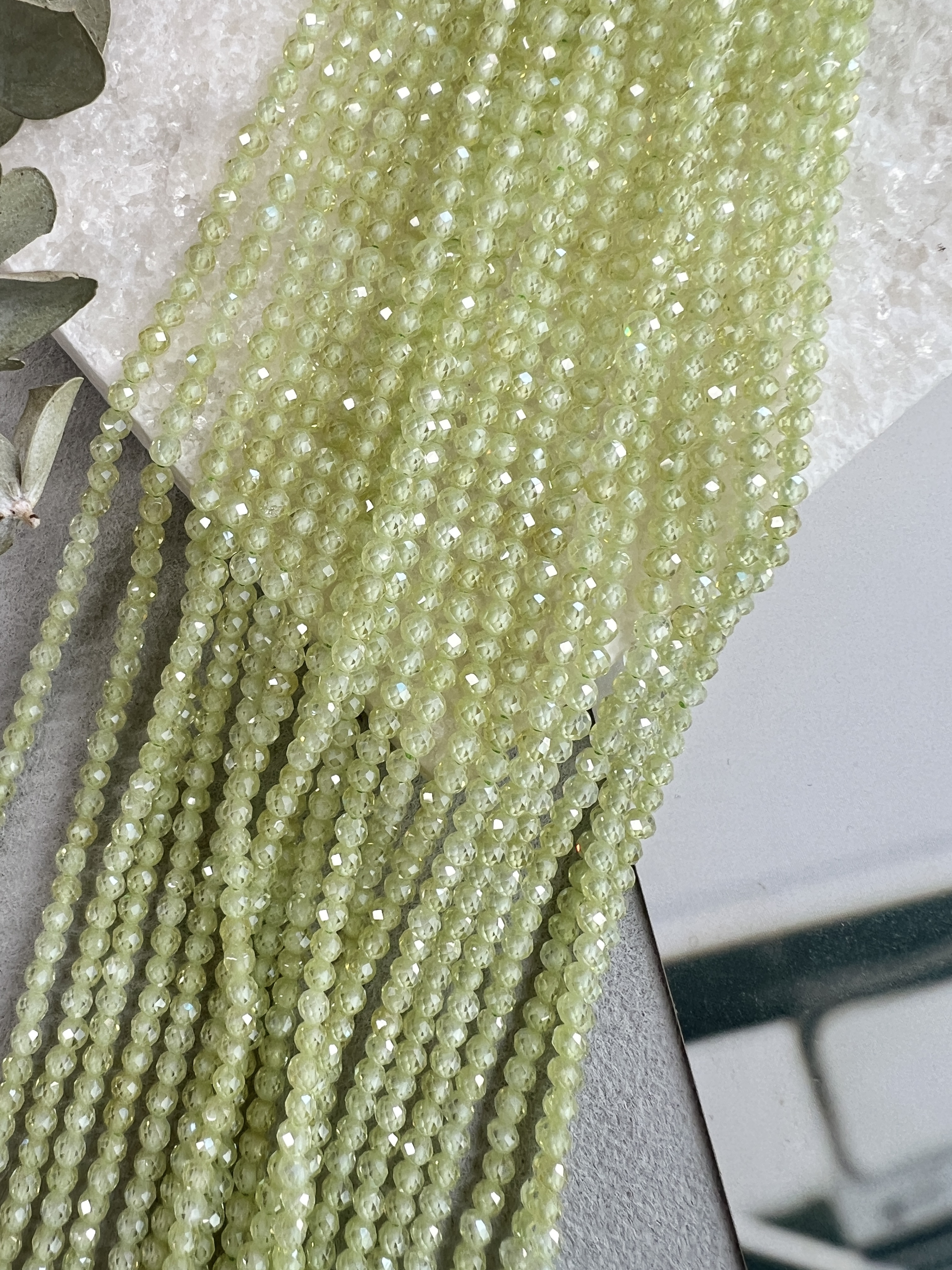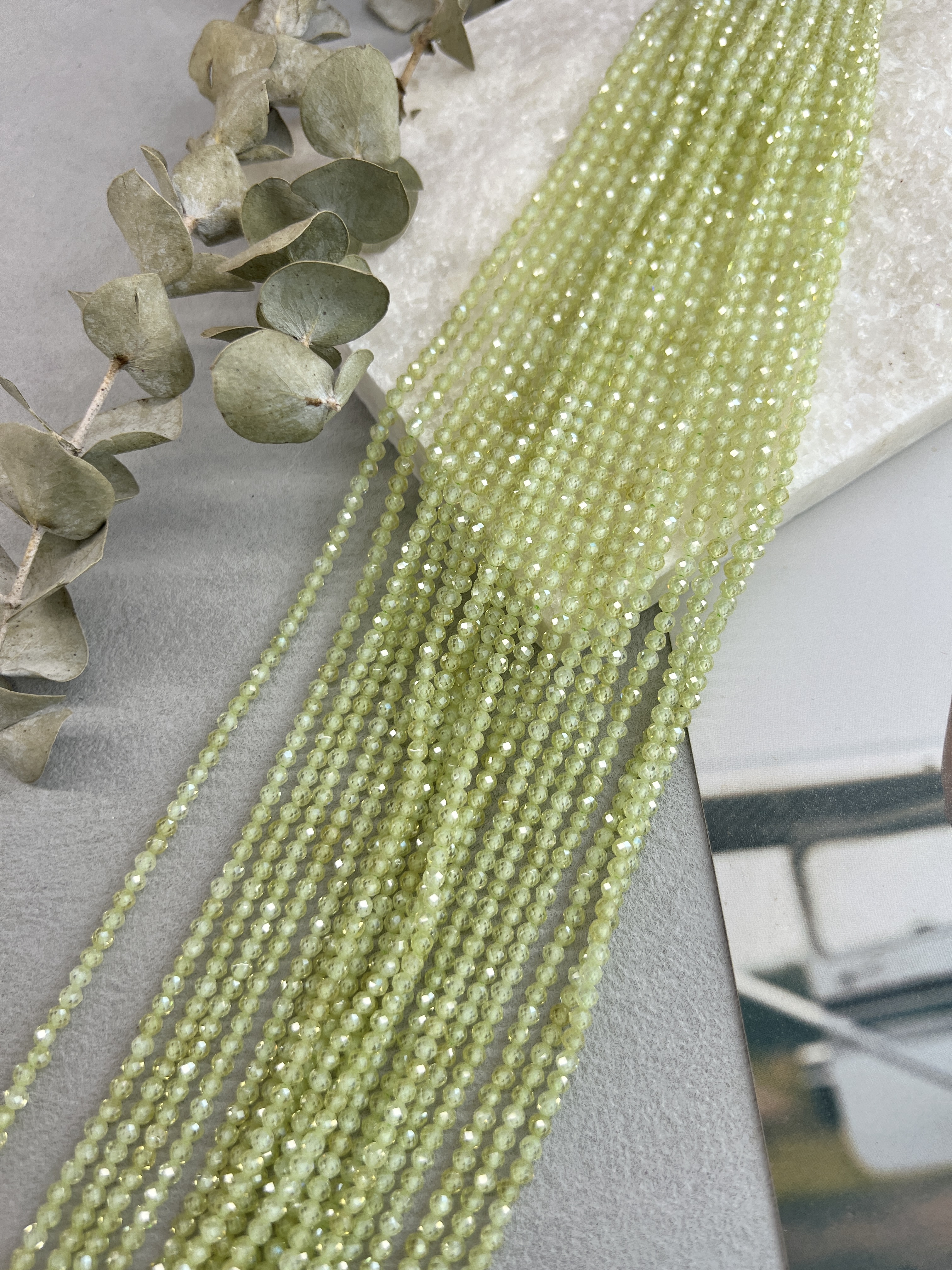 Шпинель ювелирной огранки (шар) 3 мм. Идеальный материал для создания украшений ручной работы: не выцветают, не вызывают аллергии и имеют превосходный блеск. Возможны неоднородности в цвете или огранке. Длина нити около 37 см (возможны отличия в пару см из-за разных партий). Цвет: салатовый
