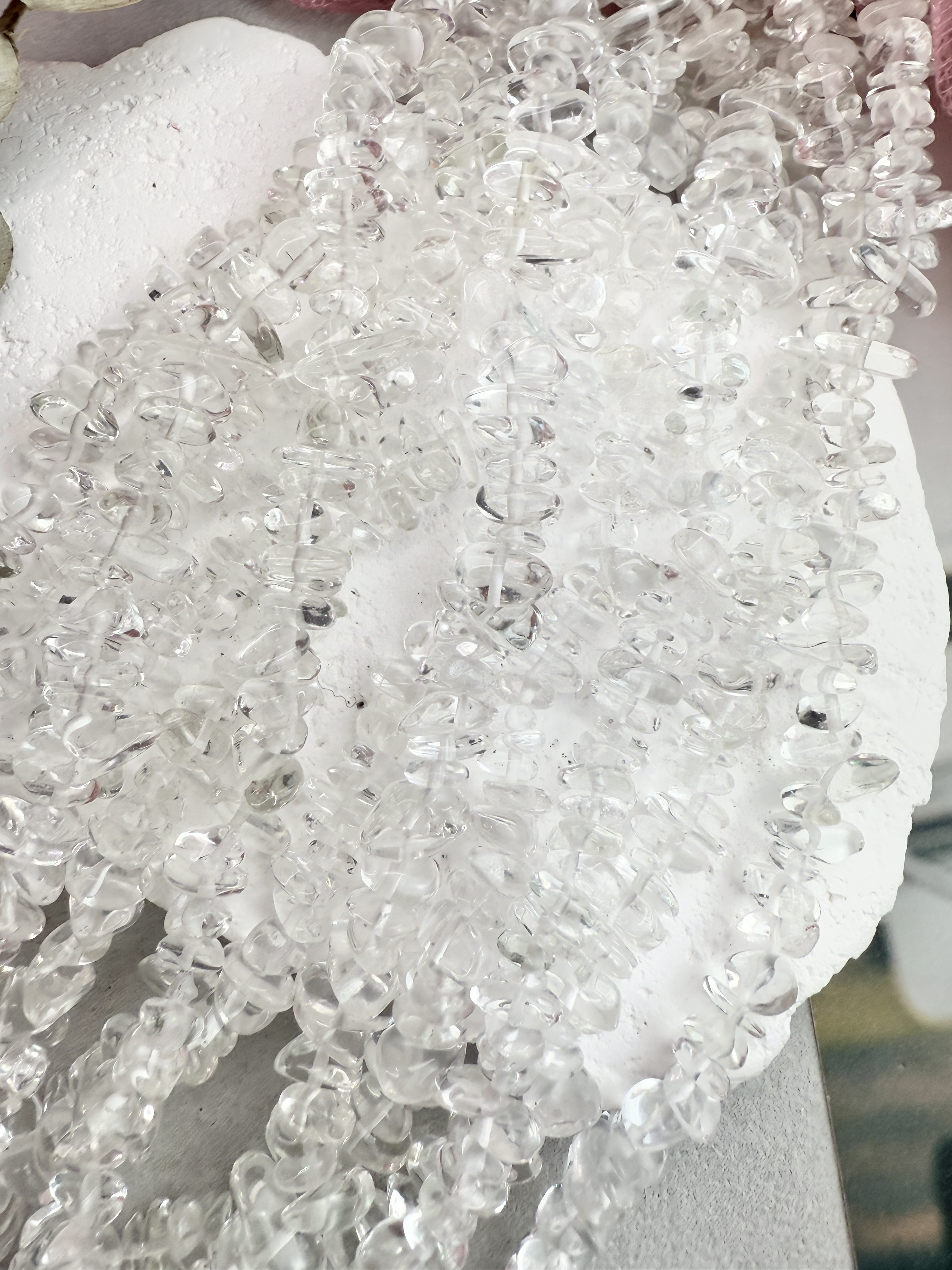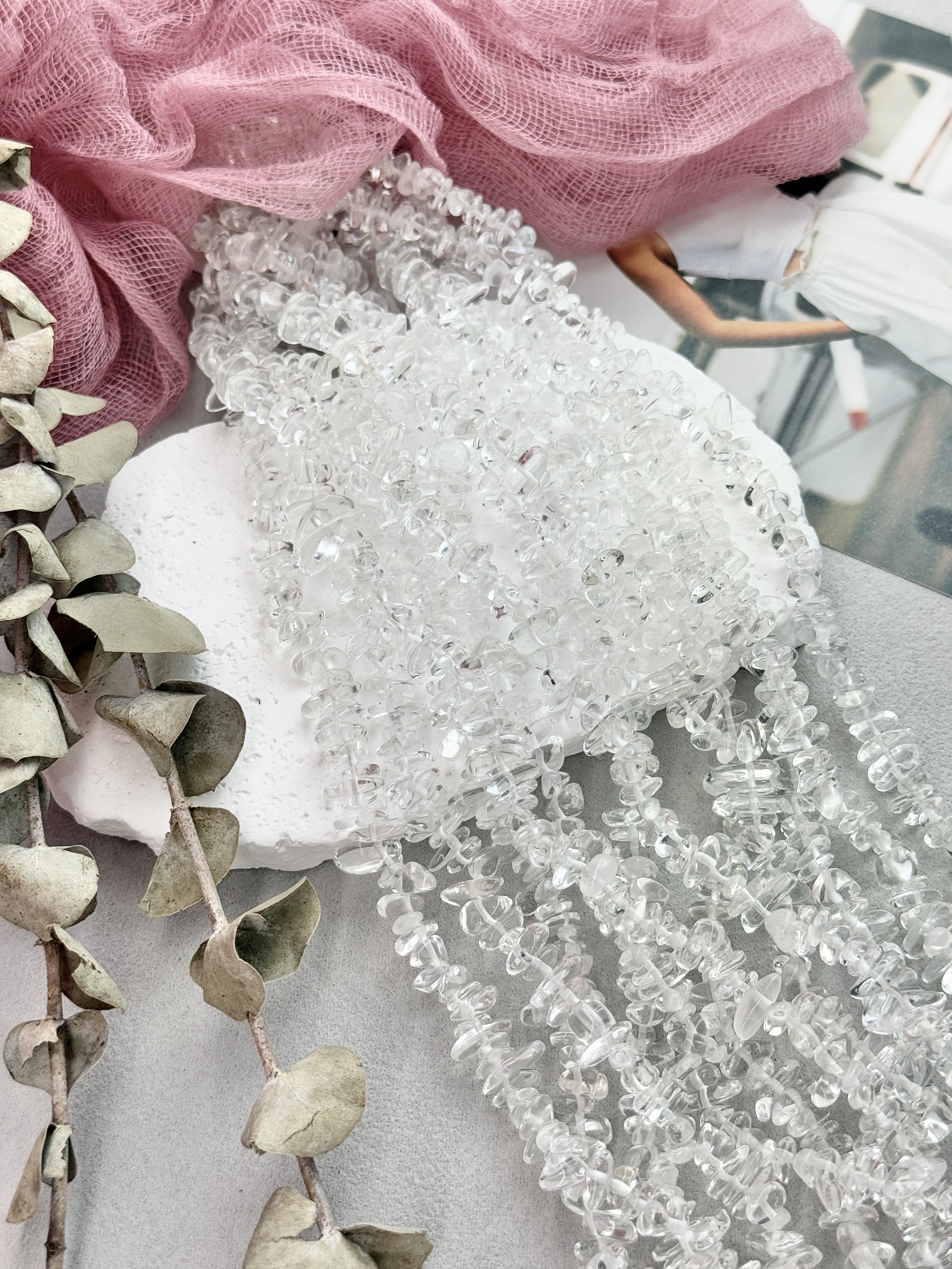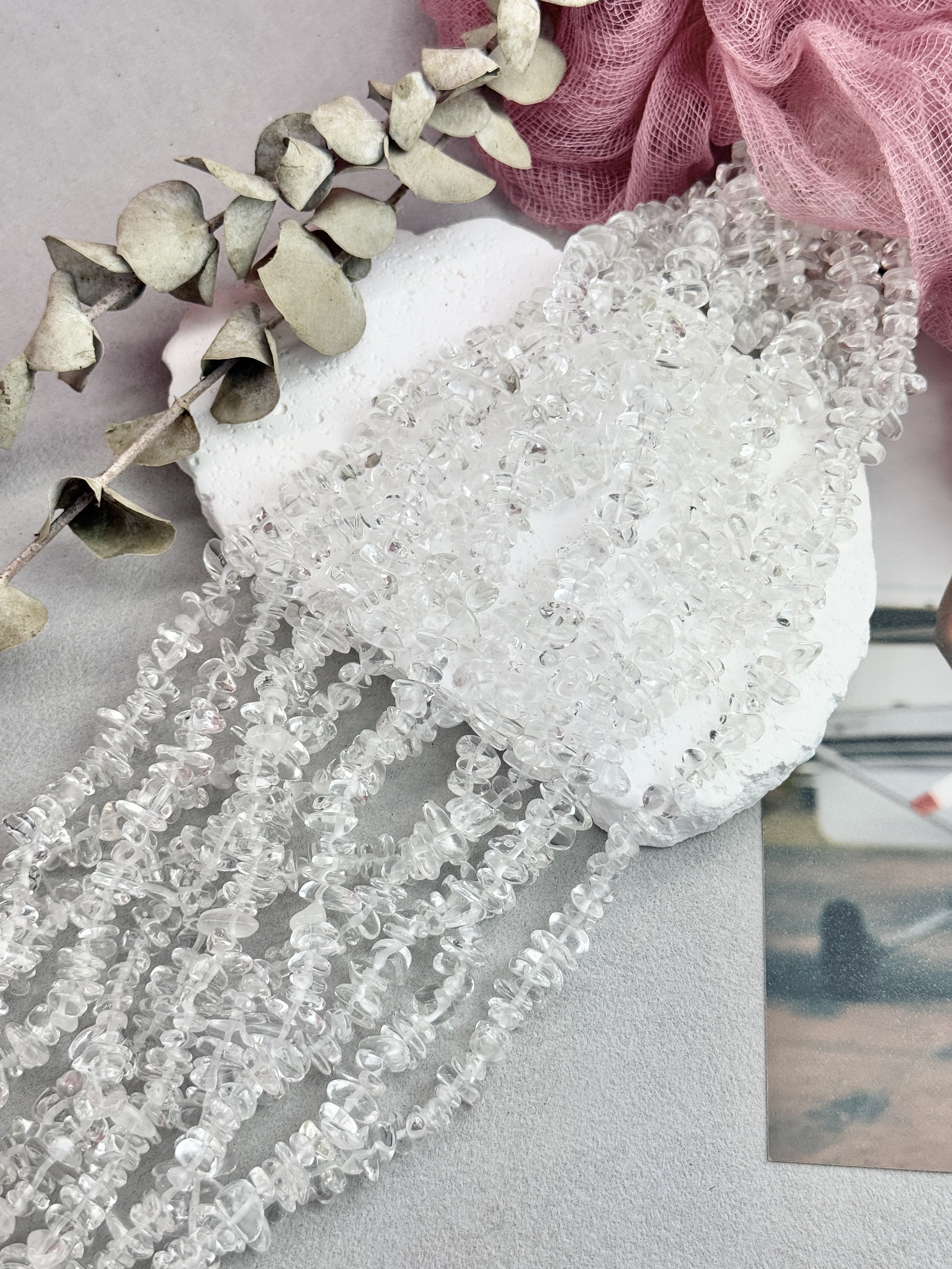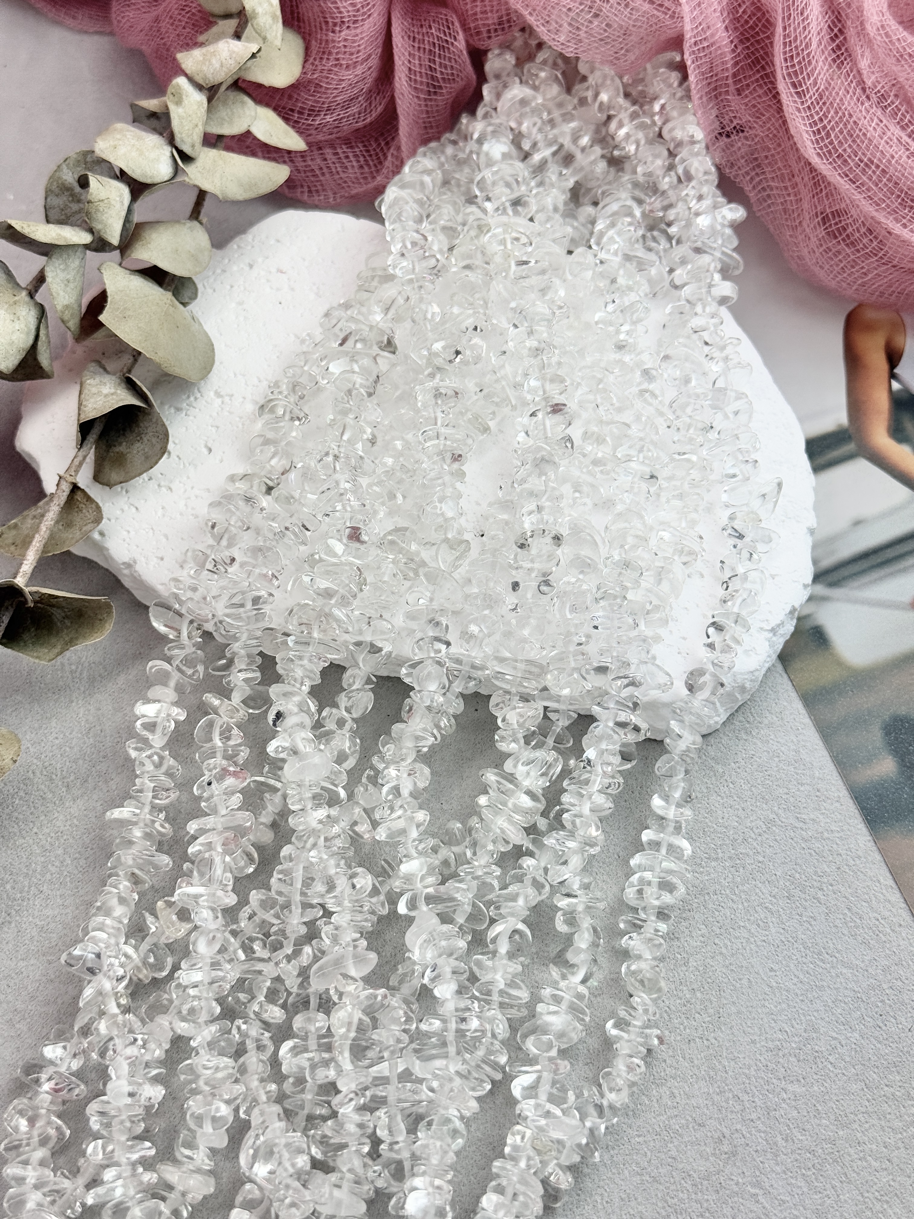Бусины произвольной формы из чистейшего горного хрусталя. Размер бусин (примерный) 5-8 мм. Продается россыпью или на нити длиной 80 см (нить иногда рвется и мы меняем фасовку на россыпь). Форма всех бусин разная, неопределенная (галька).