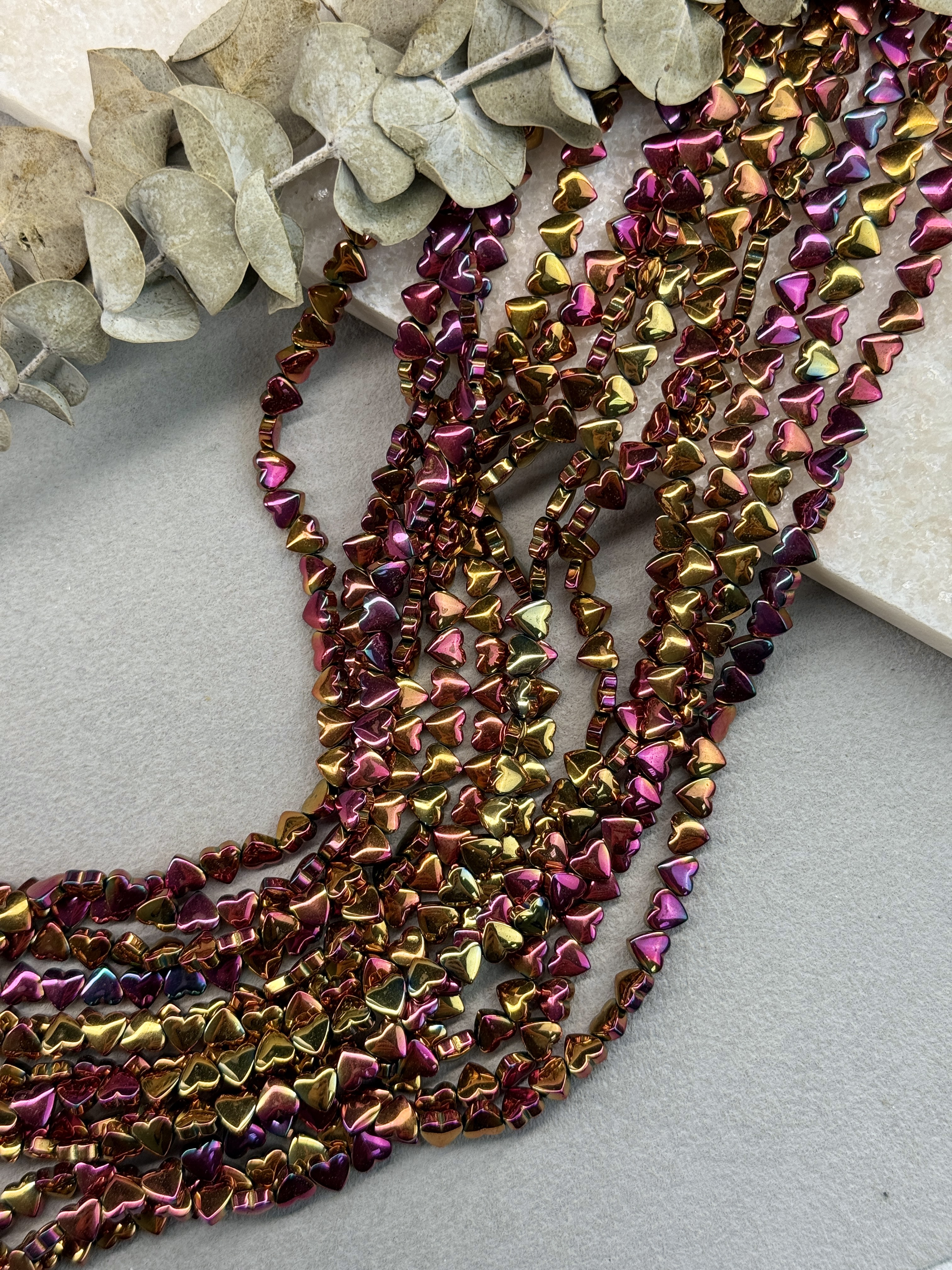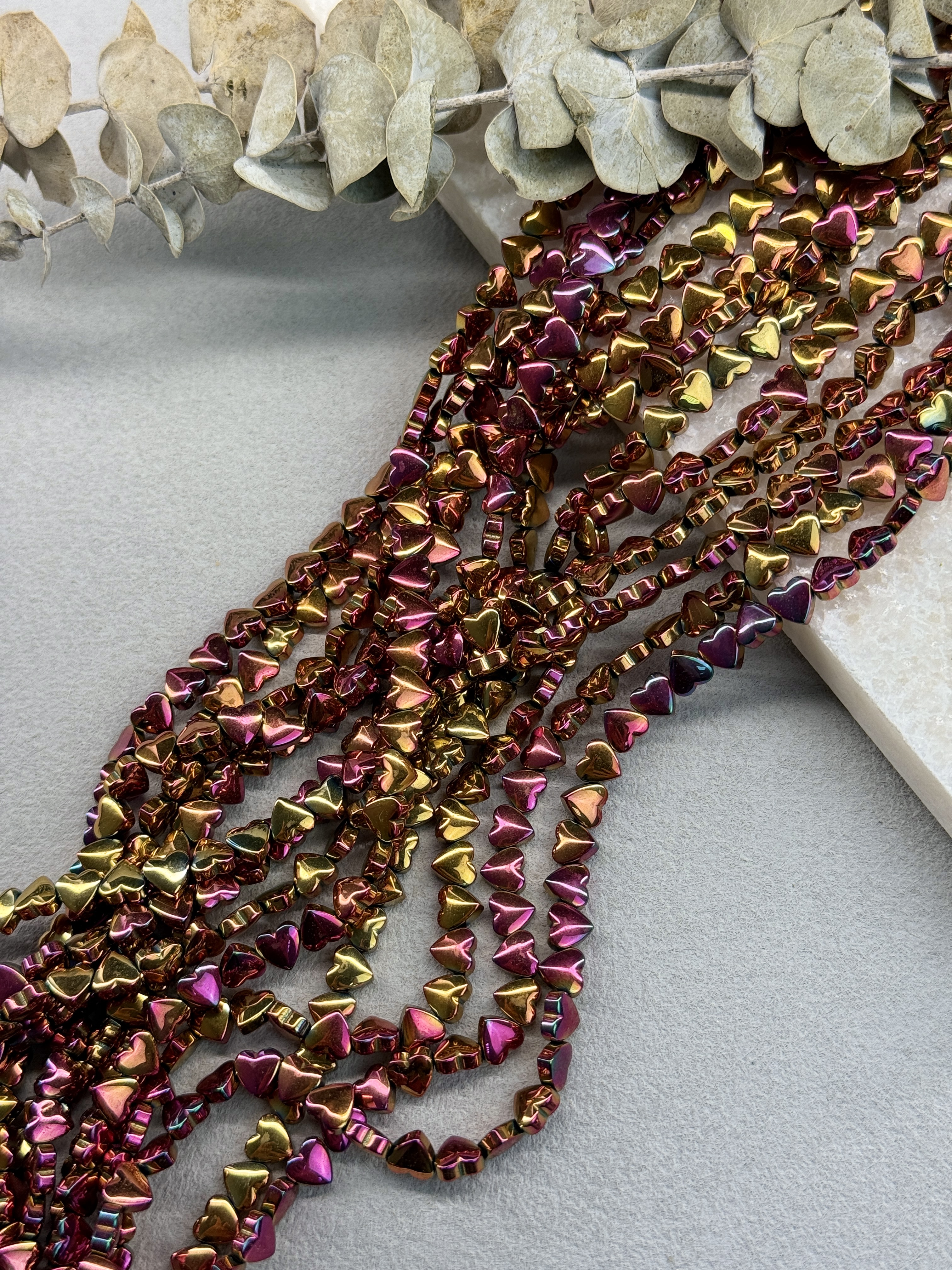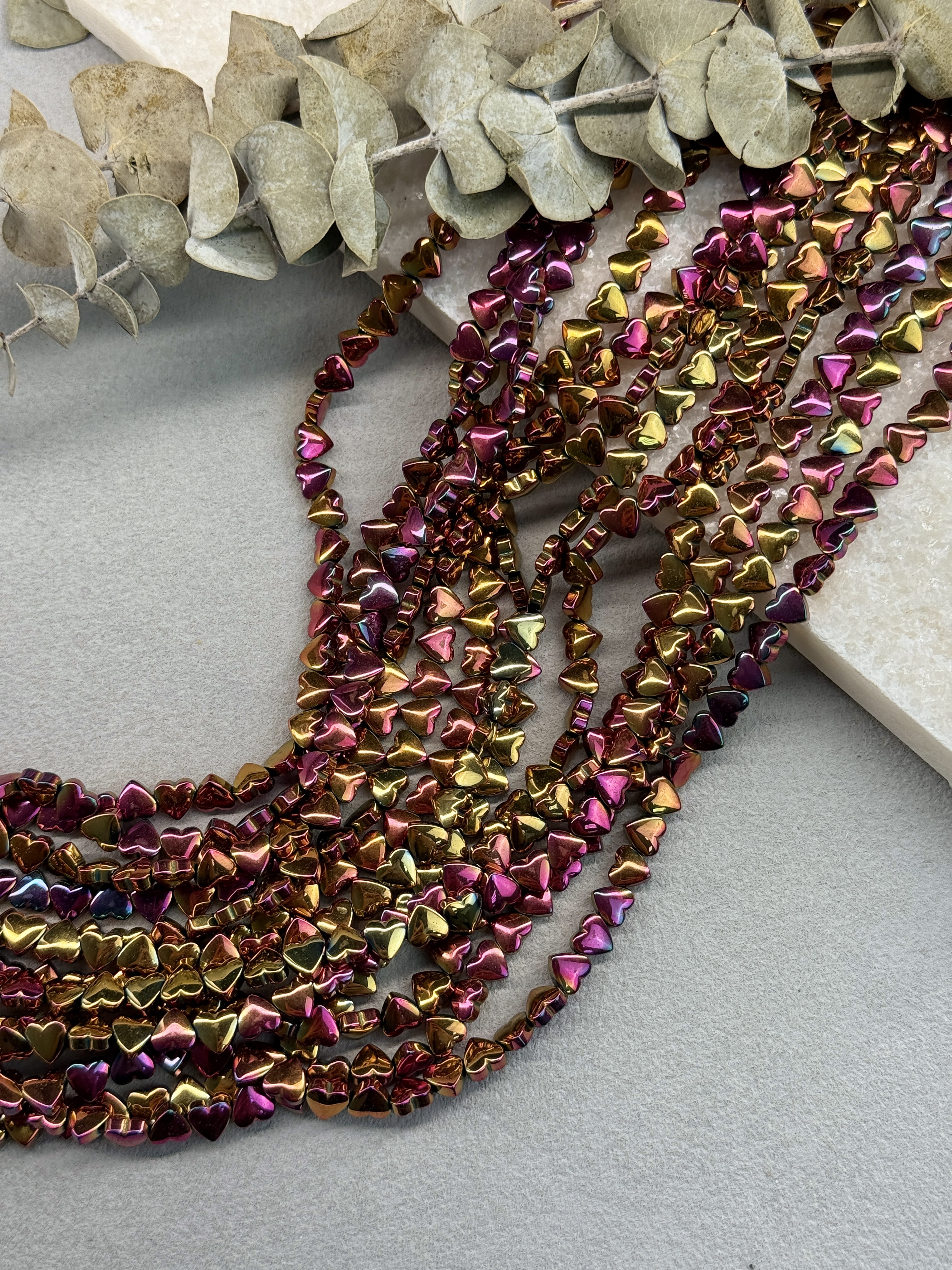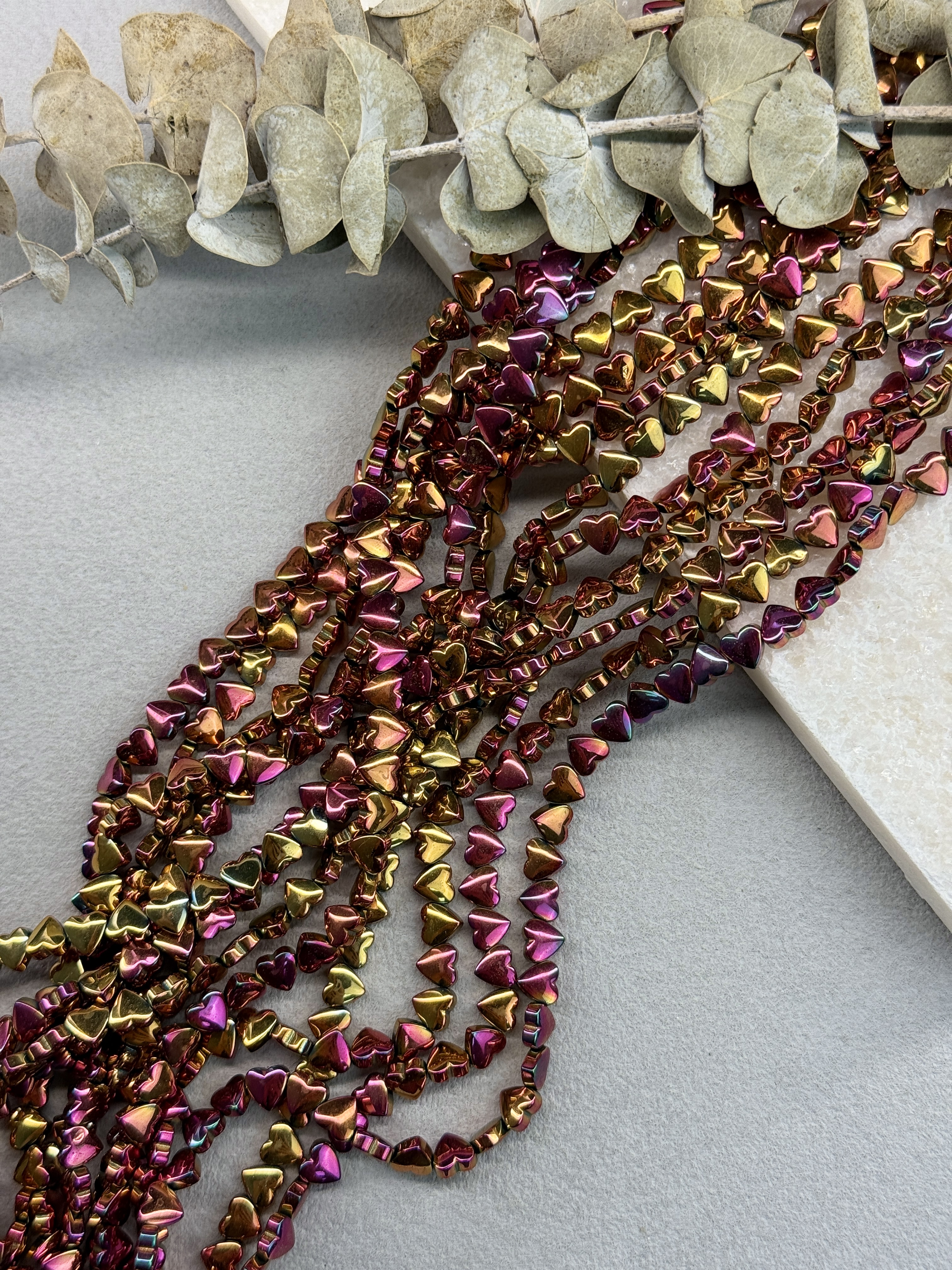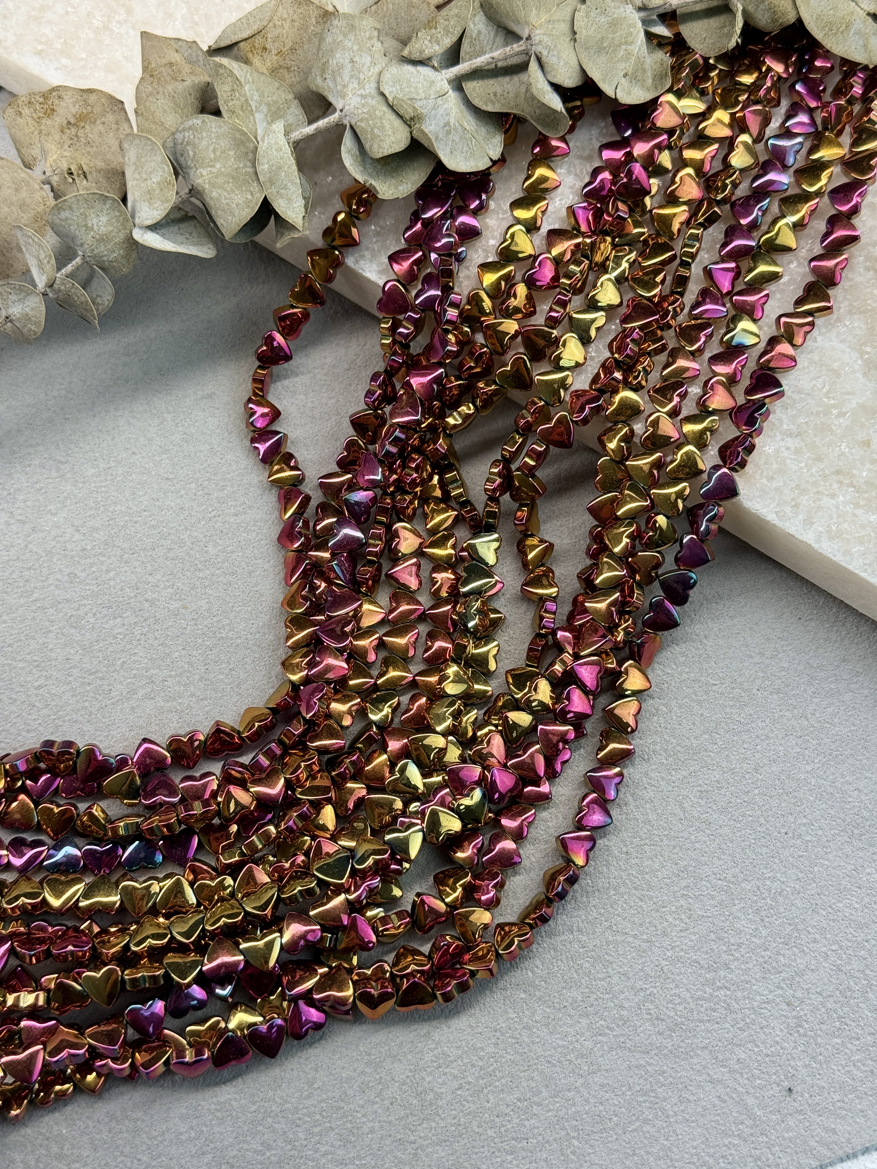 Гематит, сердце 6 мм, нить 40 см, красный хамелеон