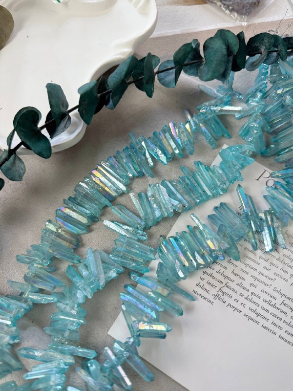 Бусины кристаллической формы из горного хрусталя. Размер бусин (примерный) толщина 3-6 мм , длина 15-35 мм. Продается россыпью или на нити длиной 36 см (нить иногда рвется и мы меняем фасовку на россыпь). Форма всех бусин в виде кристаллов.