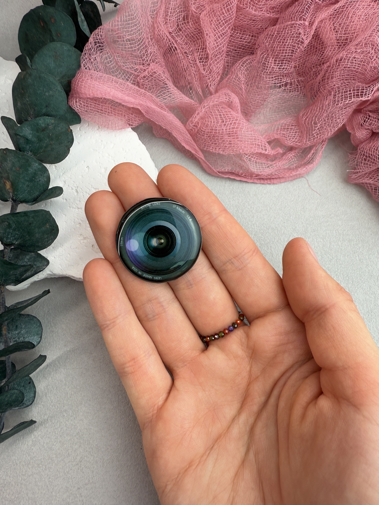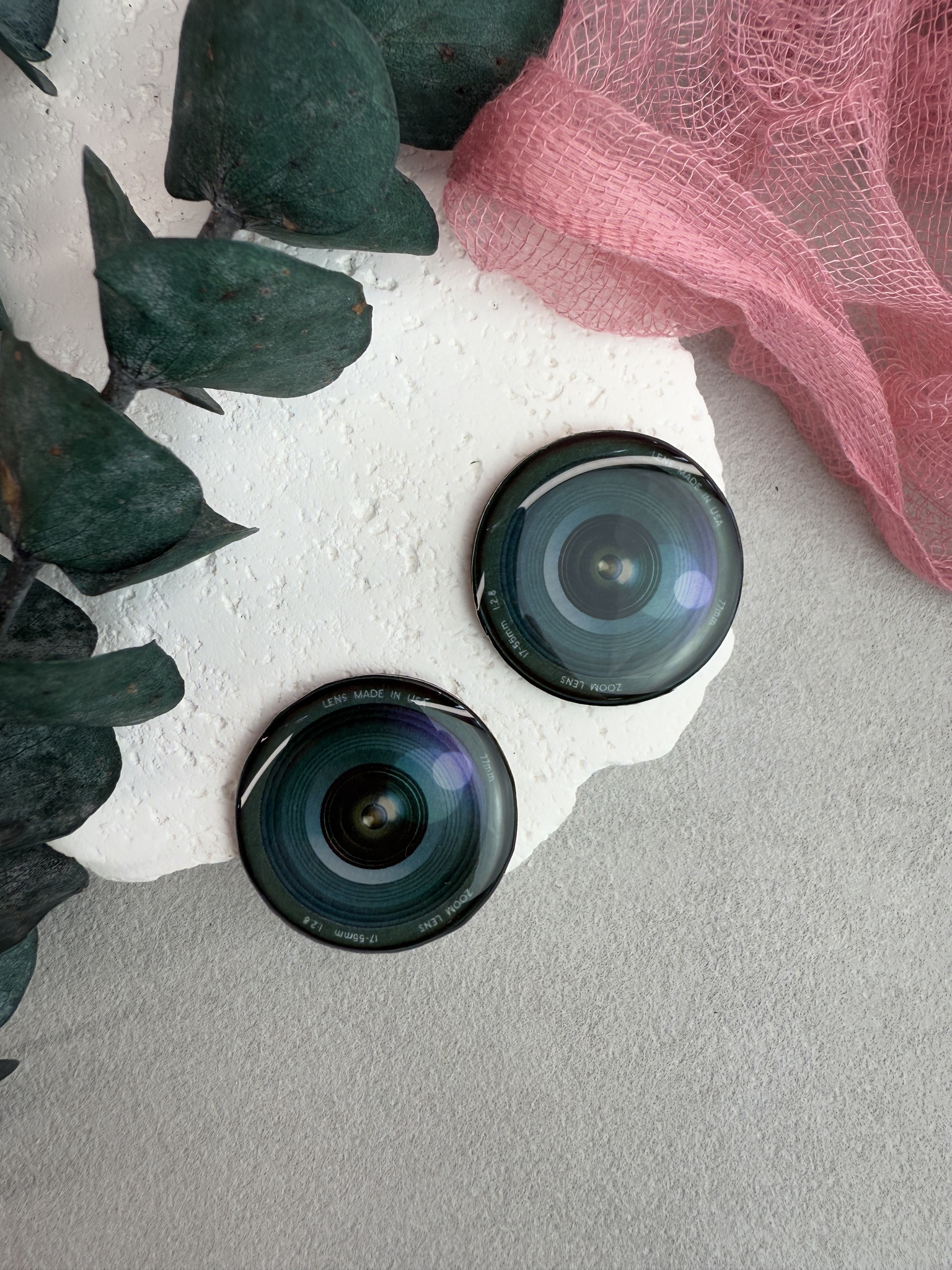 Служит для создания тематических брошек в виде фотоаппарата. Выполнен из дерева и эпоксидной смолы. Высота основы 1,5 мм, высота линзы 1-2 мм.