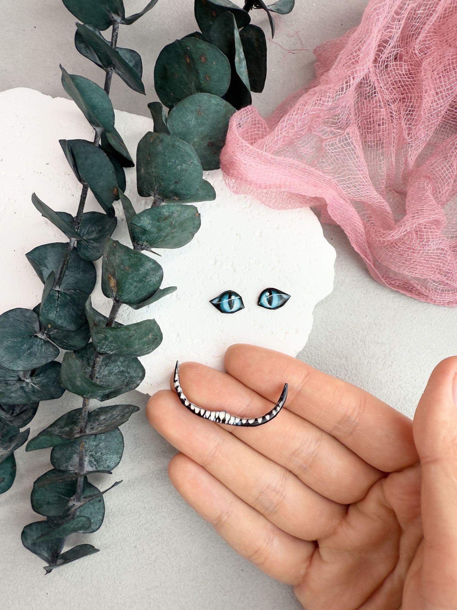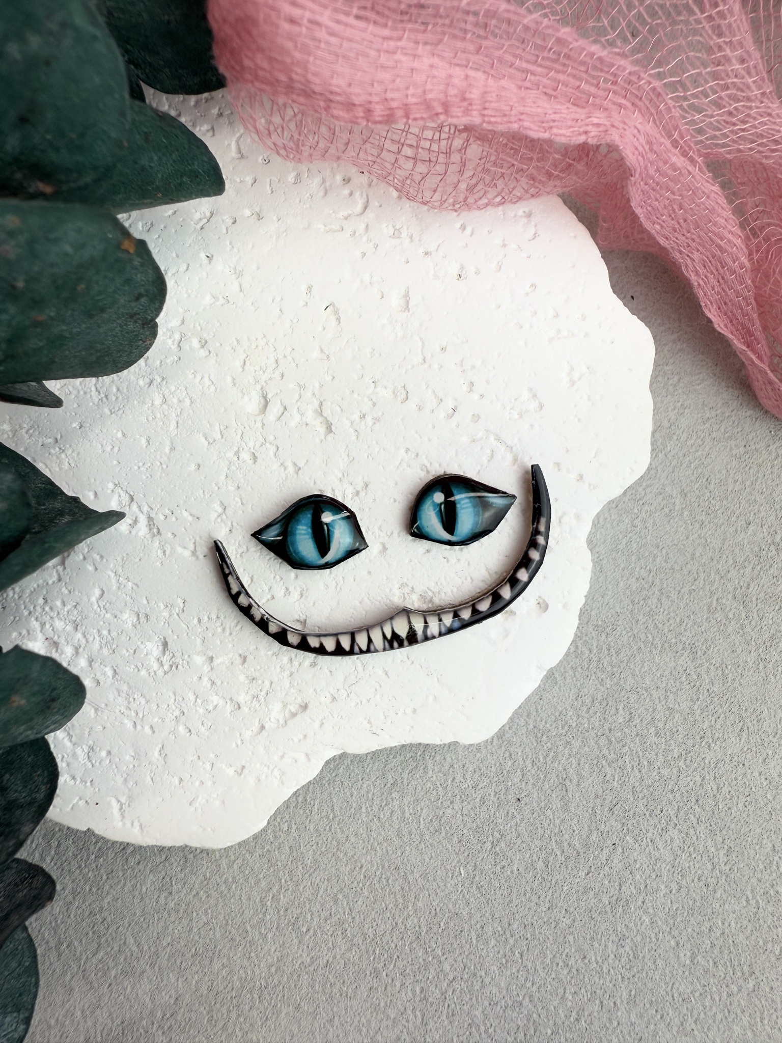 Кабошон (зубы Чешира) улыбка Чеширского кота и глазки из мультика "Алиса в стране чудес" ручной работы из эпоксидной смолы.
