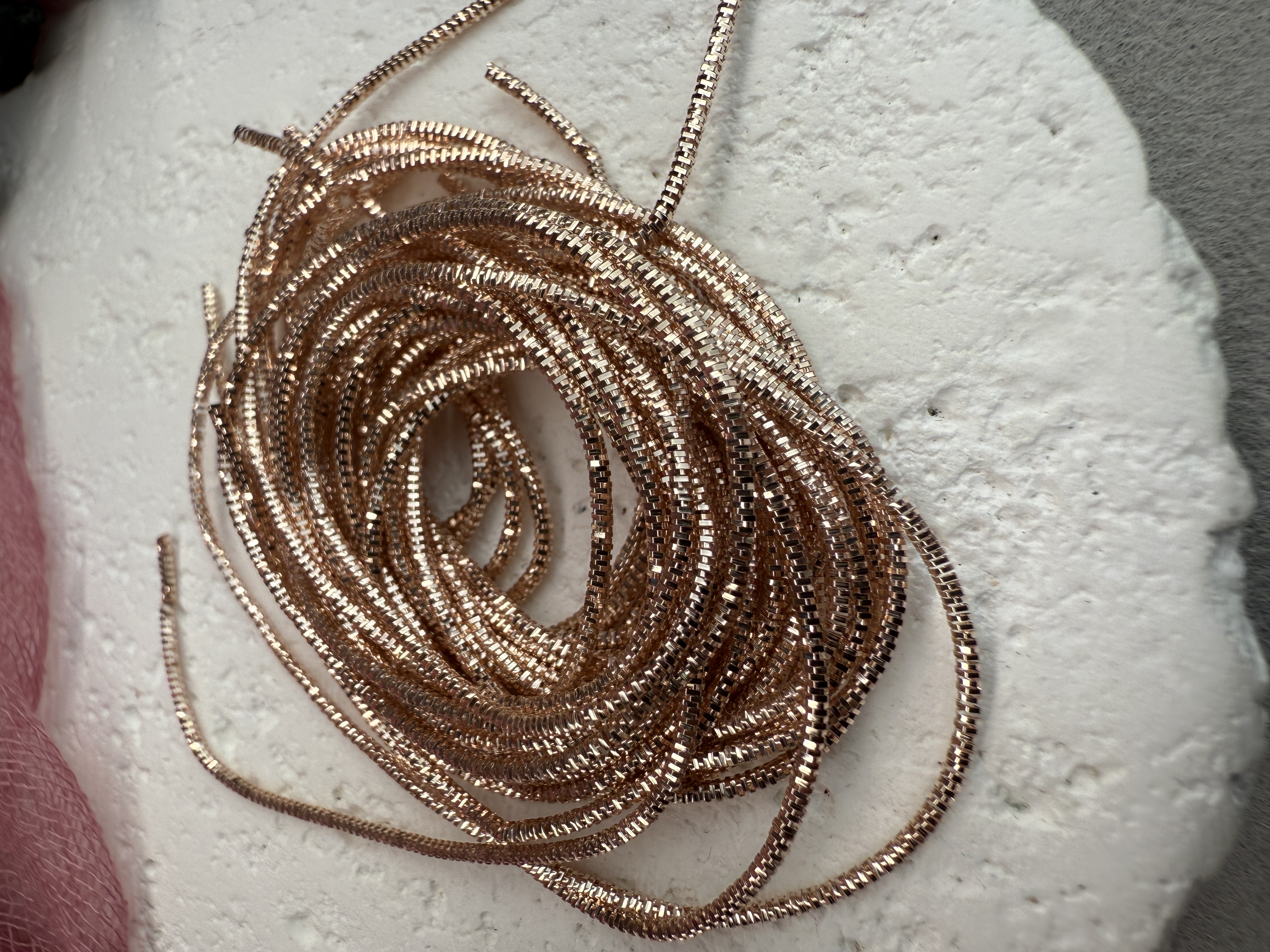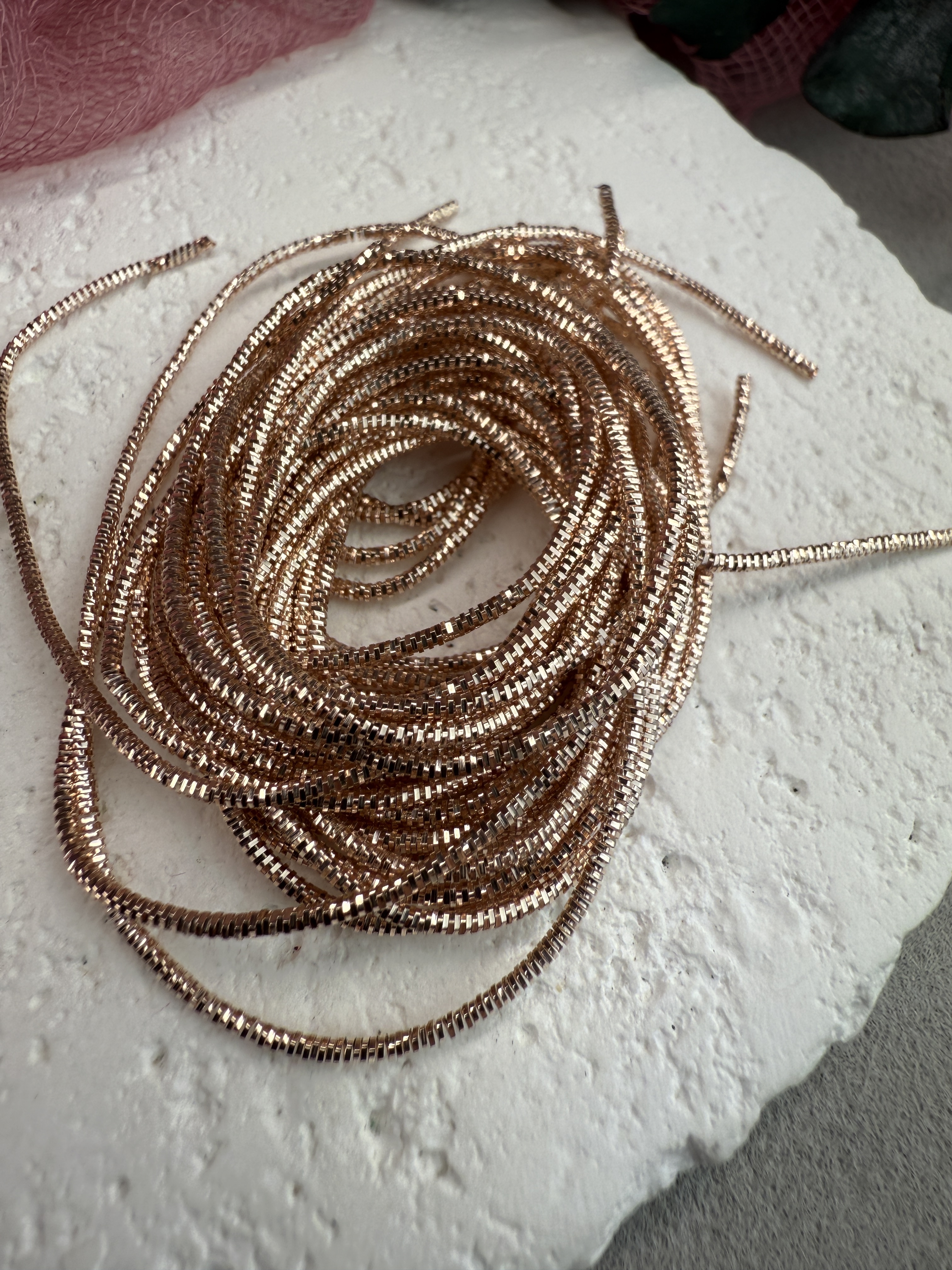 На фото то количество канители, за которое указана цена, допускается наличие нескольких отрезов, возможны местные потемнения, засветы или растянутость (не более 5%) компенсируются дополнительными 10-20 см.