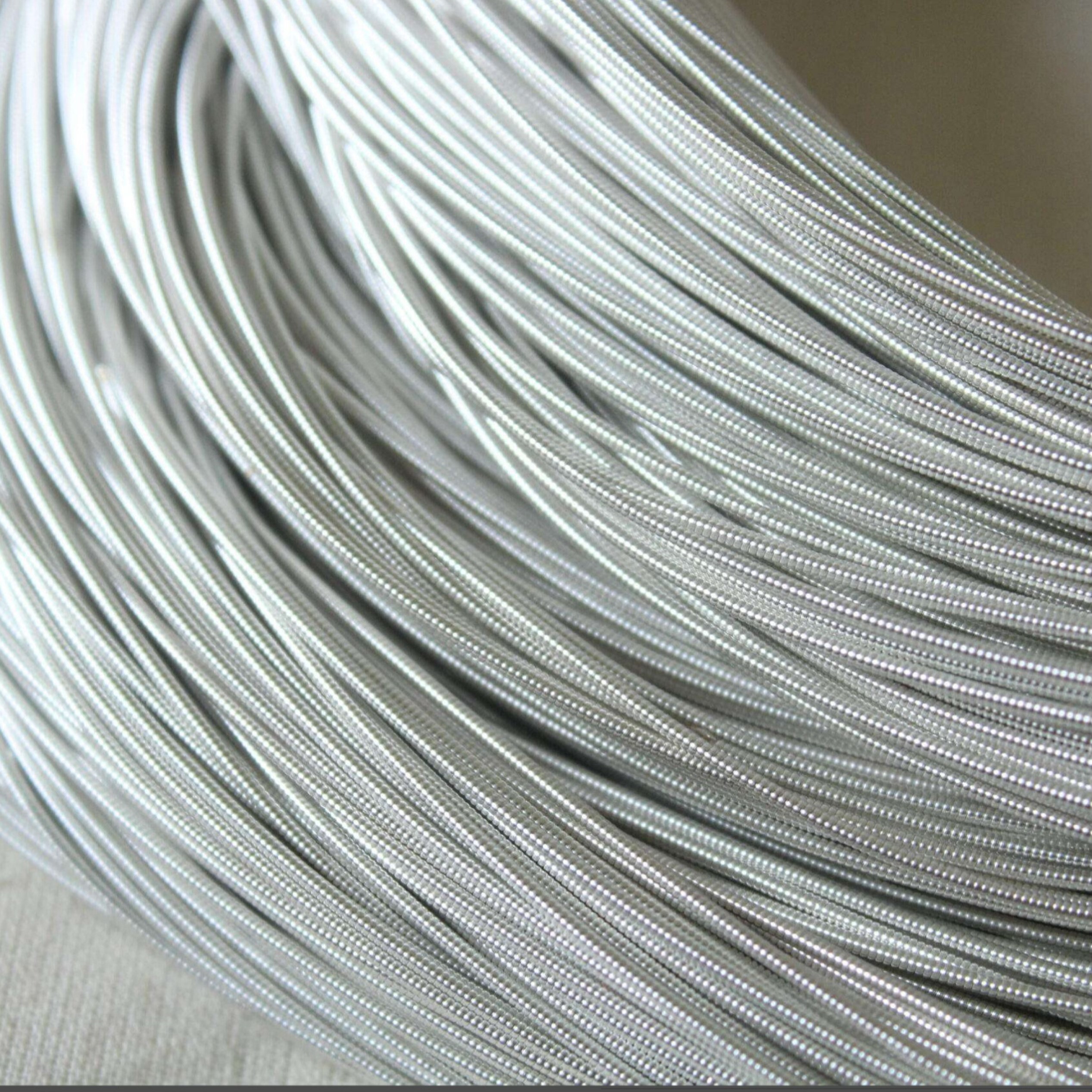 Канитель жесткая 1 мм, цвет серебро или канительный шнур представляет собой тонкую металлическую проволоку, туго свитую в спираль. Нарезается ножницами или ювелирными кусачками отрезками нужной длины и пришивается мононитью через витки без натяжения.