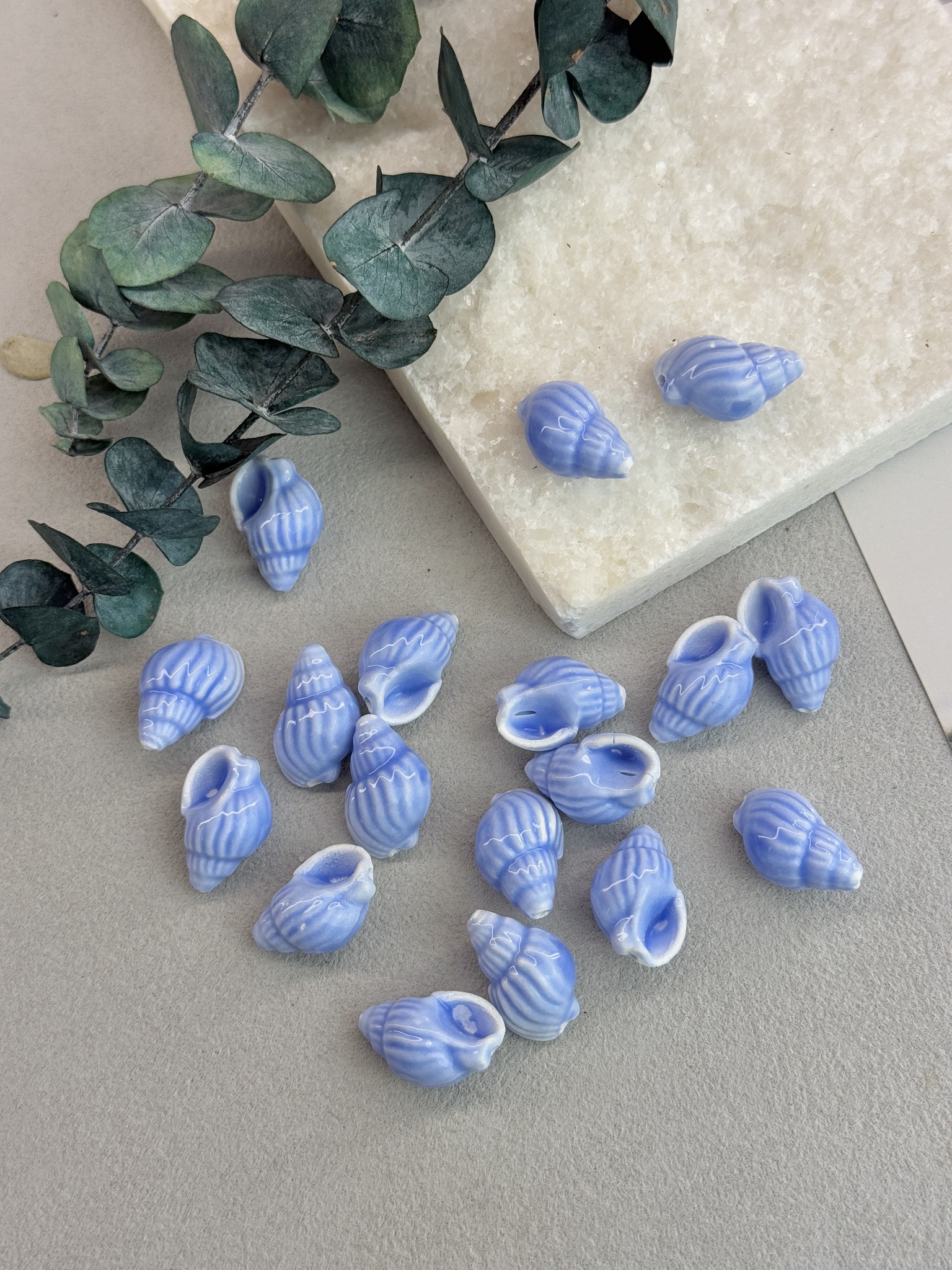Милые глянцевые бусинки из керамики ручной работы в виде ракушек для создания украшений ручной работы. Покрыты блестящей глазурью (стекло). Долговечны (не выцветают, не боятся трения и абразивов). Гипоаллергенны. В наборе 10 штук. Размер одной ракушки 21 мм.