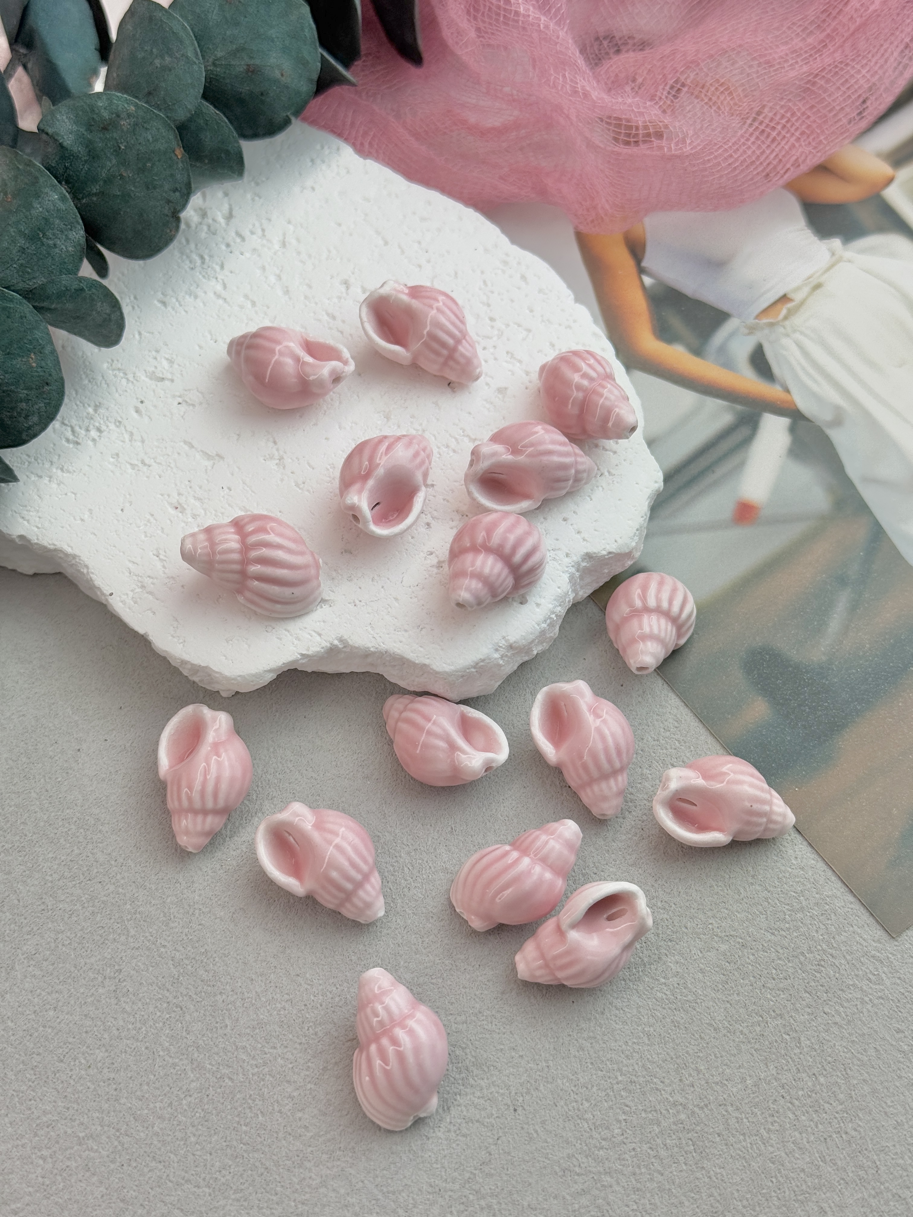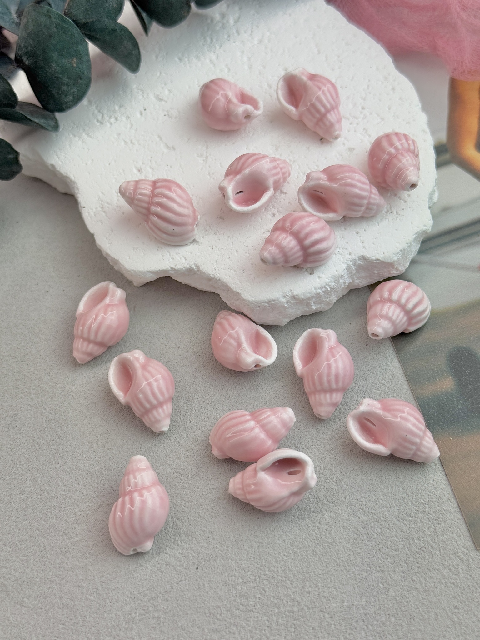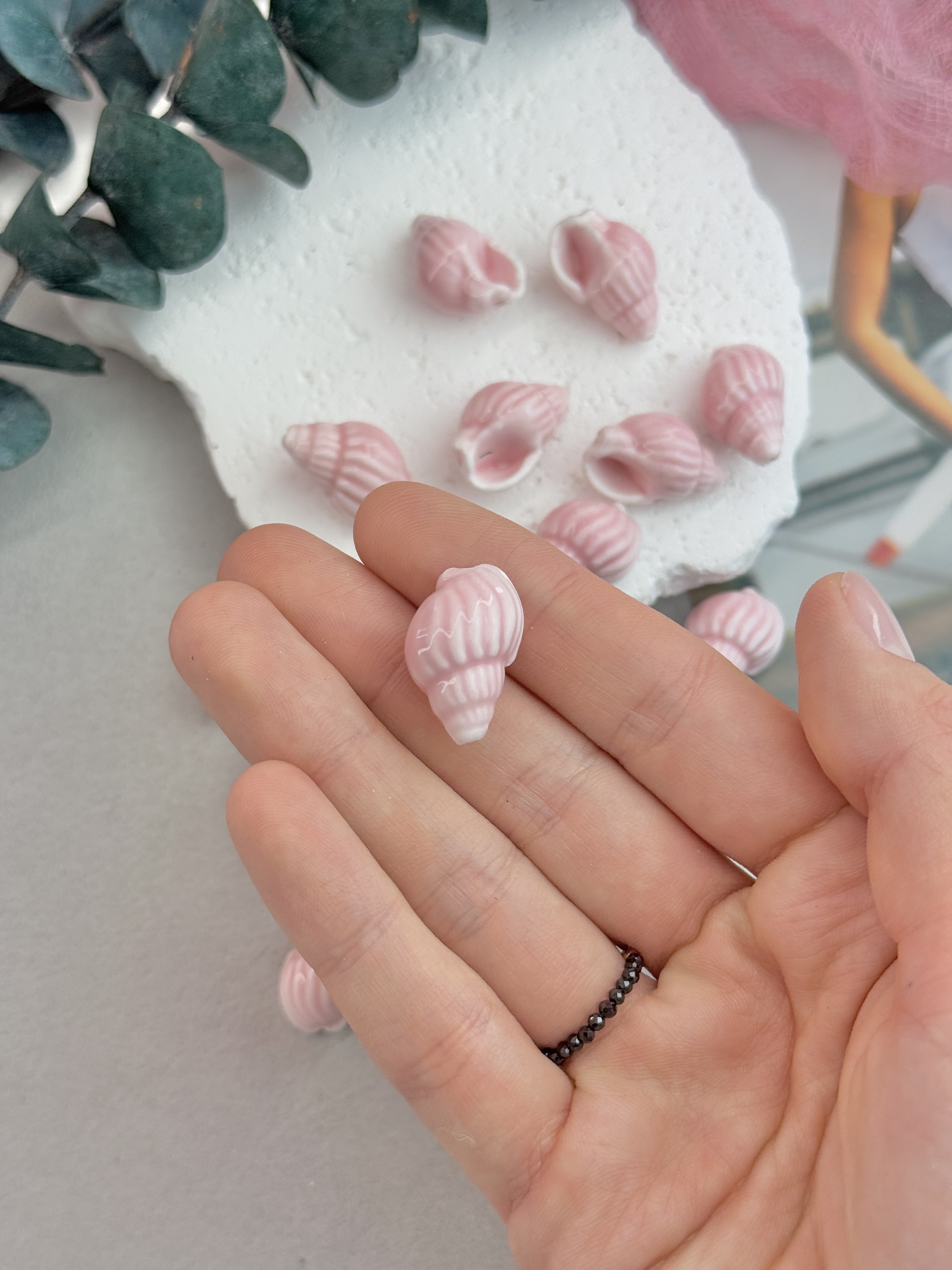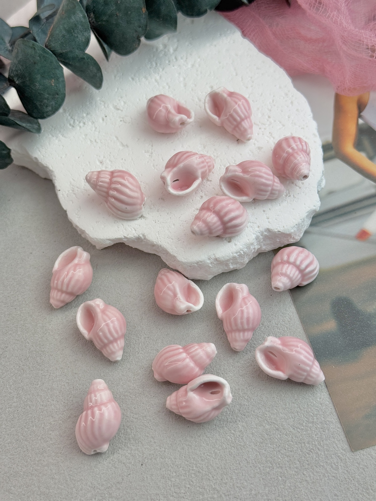 Милые глянцевые бусинки из керамики ручной работы в виде ракушек для создания украшений ручной работы. Покрыты блестящей глазурью (стекло). Долговечны (не выцветают, не боятся трения и абразивов). Гипоаллергенны. В наборе 5 штук. Размер одной ракушки 21 мм.
