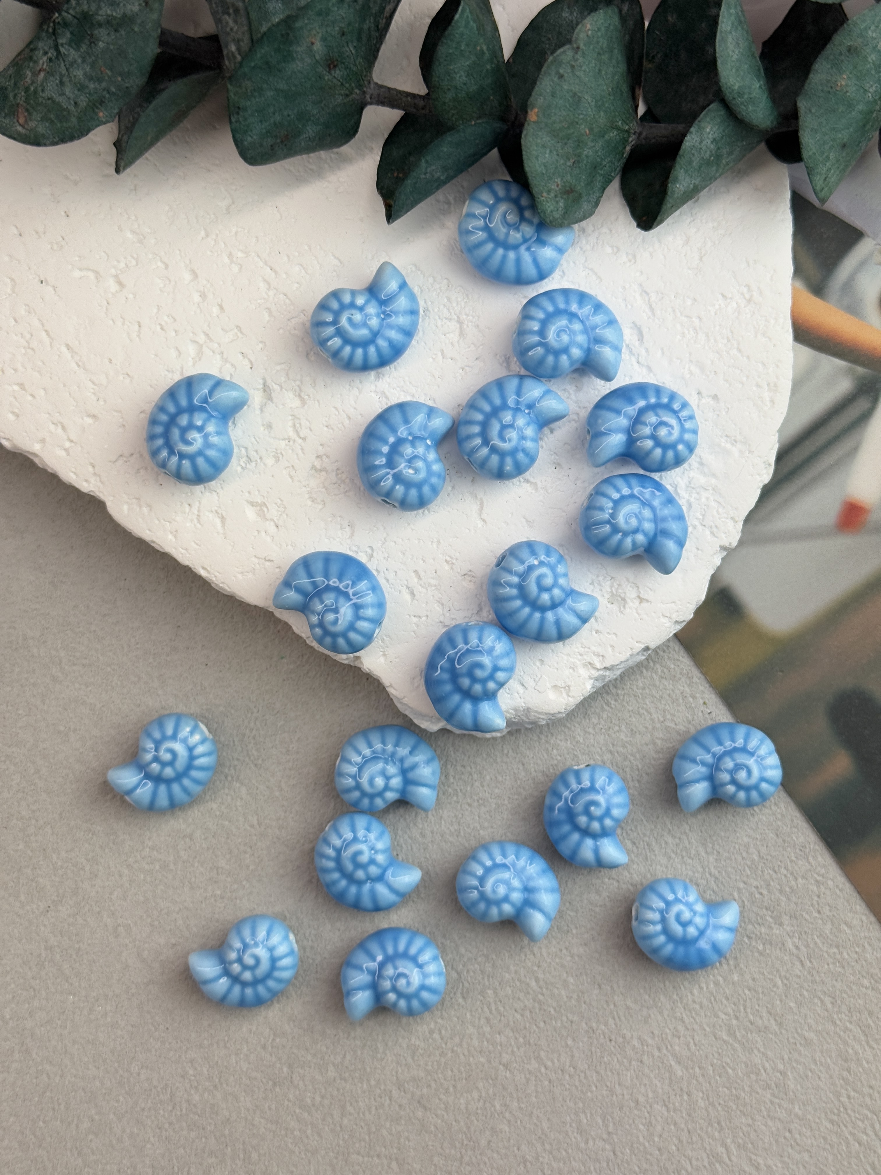 Милые глянцевые бусинки из керамики ручной работы в виде ракушек для создания украшений ручной работы. Покрыты блестящей глазурью (стекло). Долговечны (не выцветают, не боятся трения и абразивов). Гипоаллергенны. В наборе 5 штук. Размер одной ракушки 15 мм.