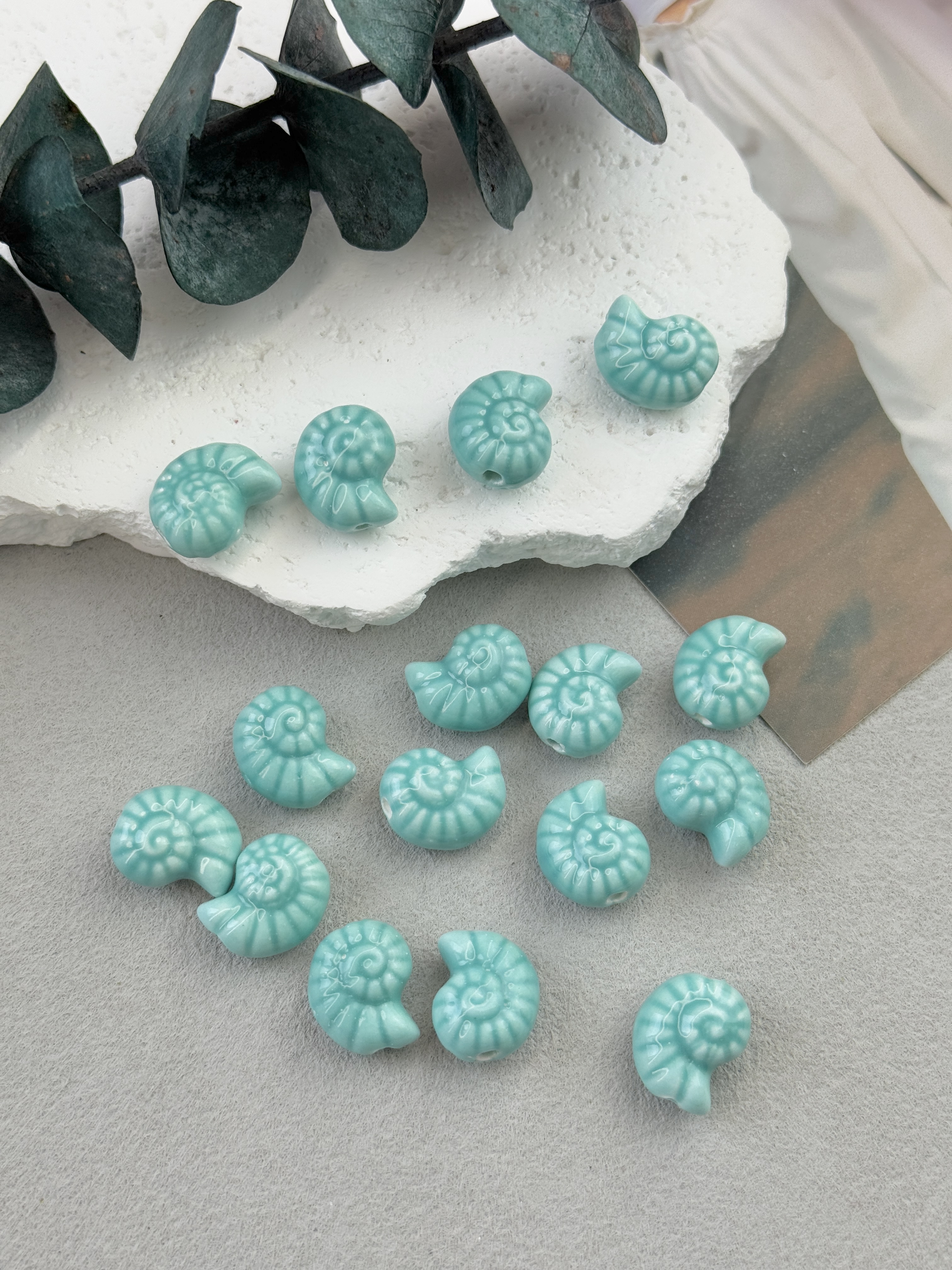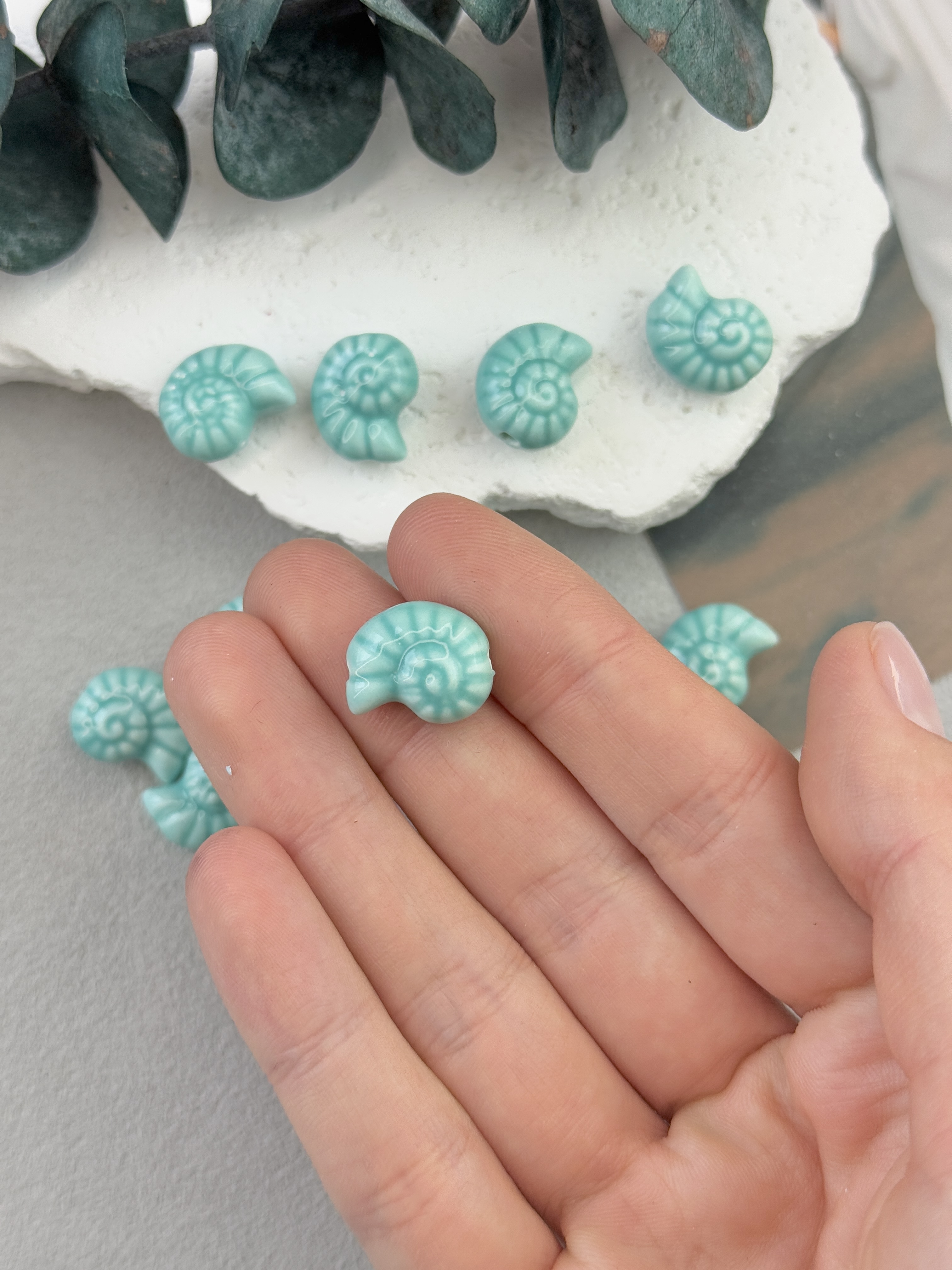Милые глянцевые бусинки из керамики ручной работы в виде ракушек для создания украшений ручной работы. Покрыты блестящей глазурью (стекло). Долговечны (не выцветают, не боятся трения и абразивов). Гипоаллергенны. В наборе 5 штук. Размер одной ракушки 15*18 мм.