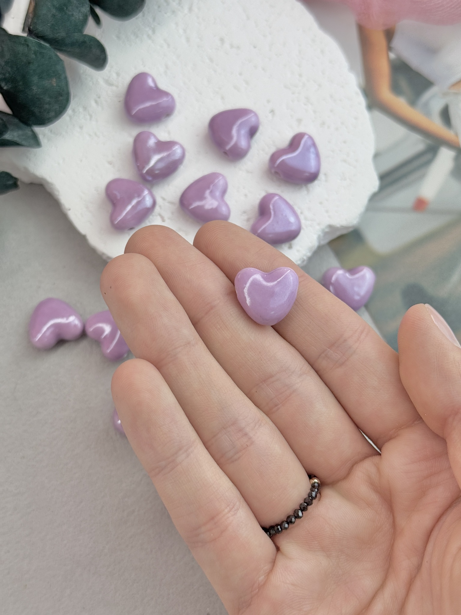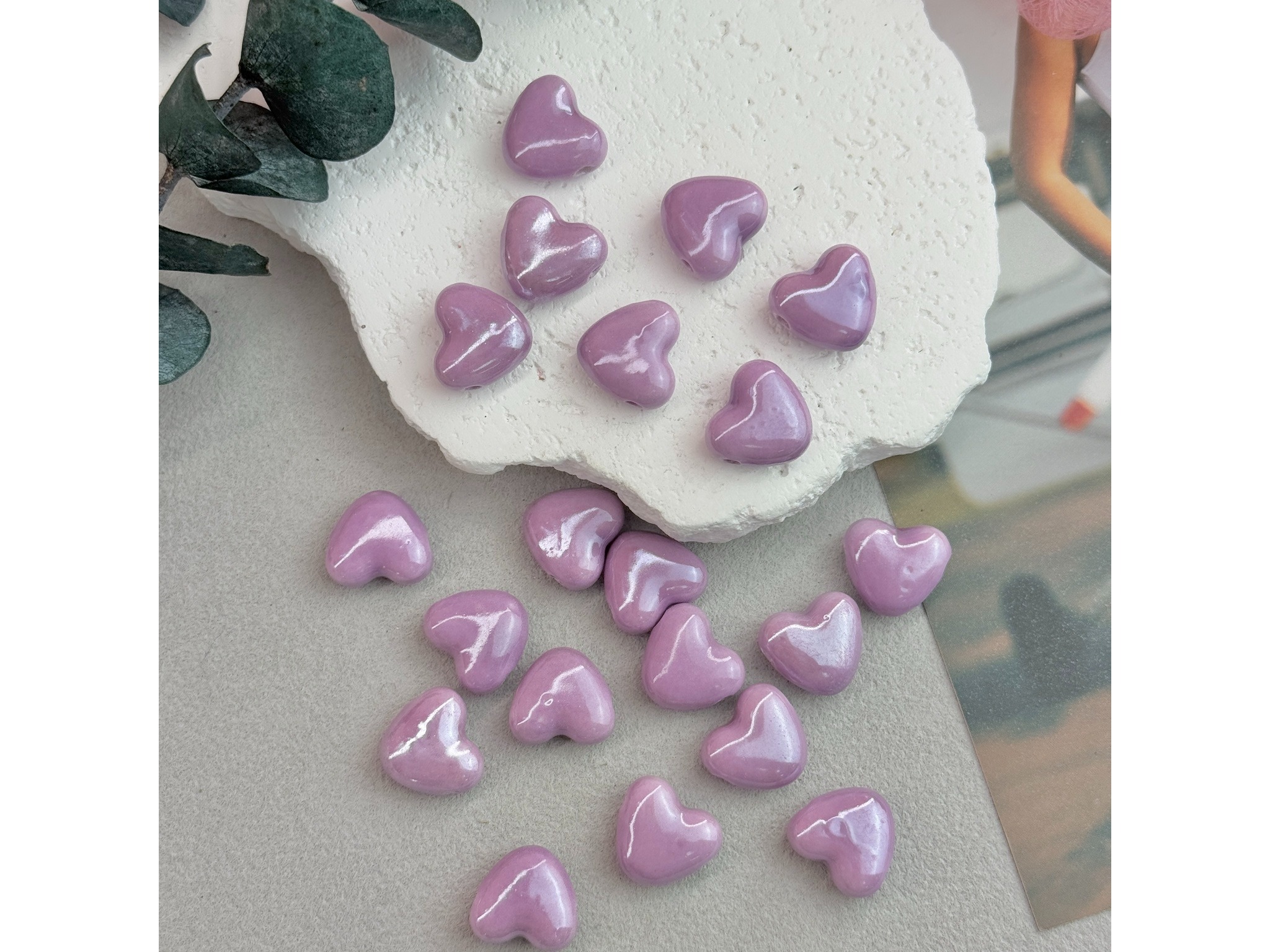 Милые глянцевые бусинки из керамики для создания украшений ручной работы. Покрыты блестящей глазурью (стекло). Долговечны (не выцветают, не боятся трения и абразивов). Гипоаллергенны. На поверхности бусин могут быть незначительные неровности. В наборе 10 штук. Размер 13*15 мм, форма: сердце.