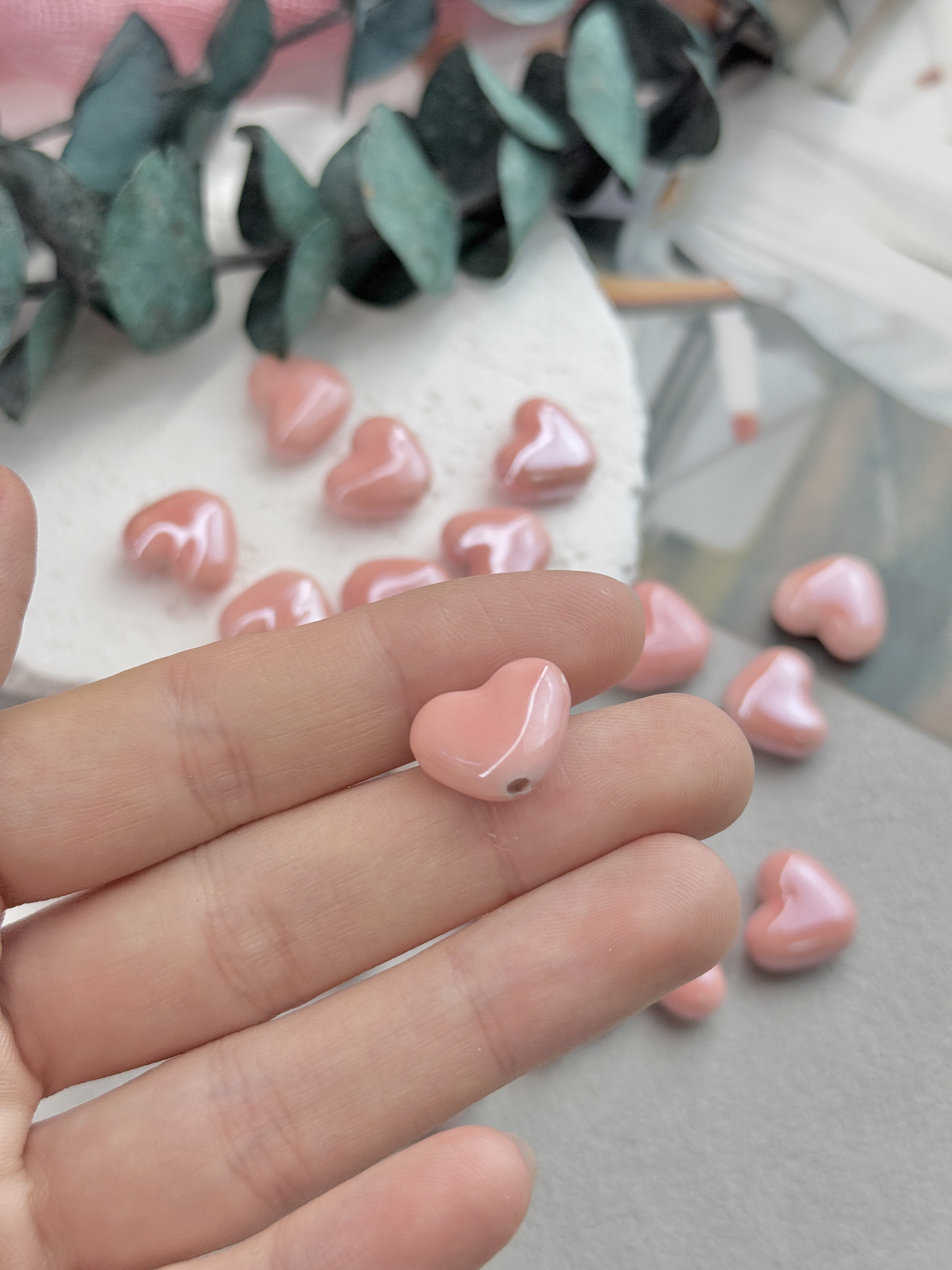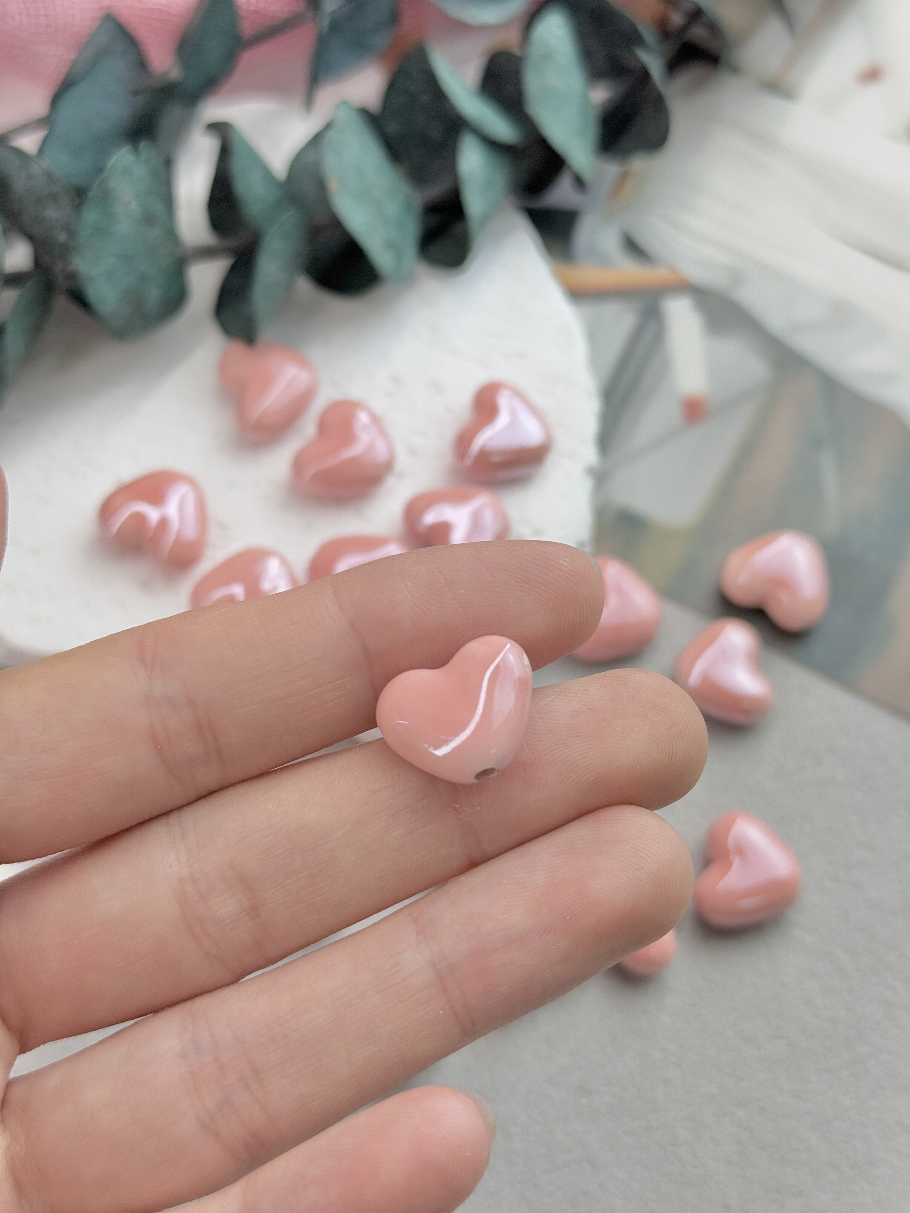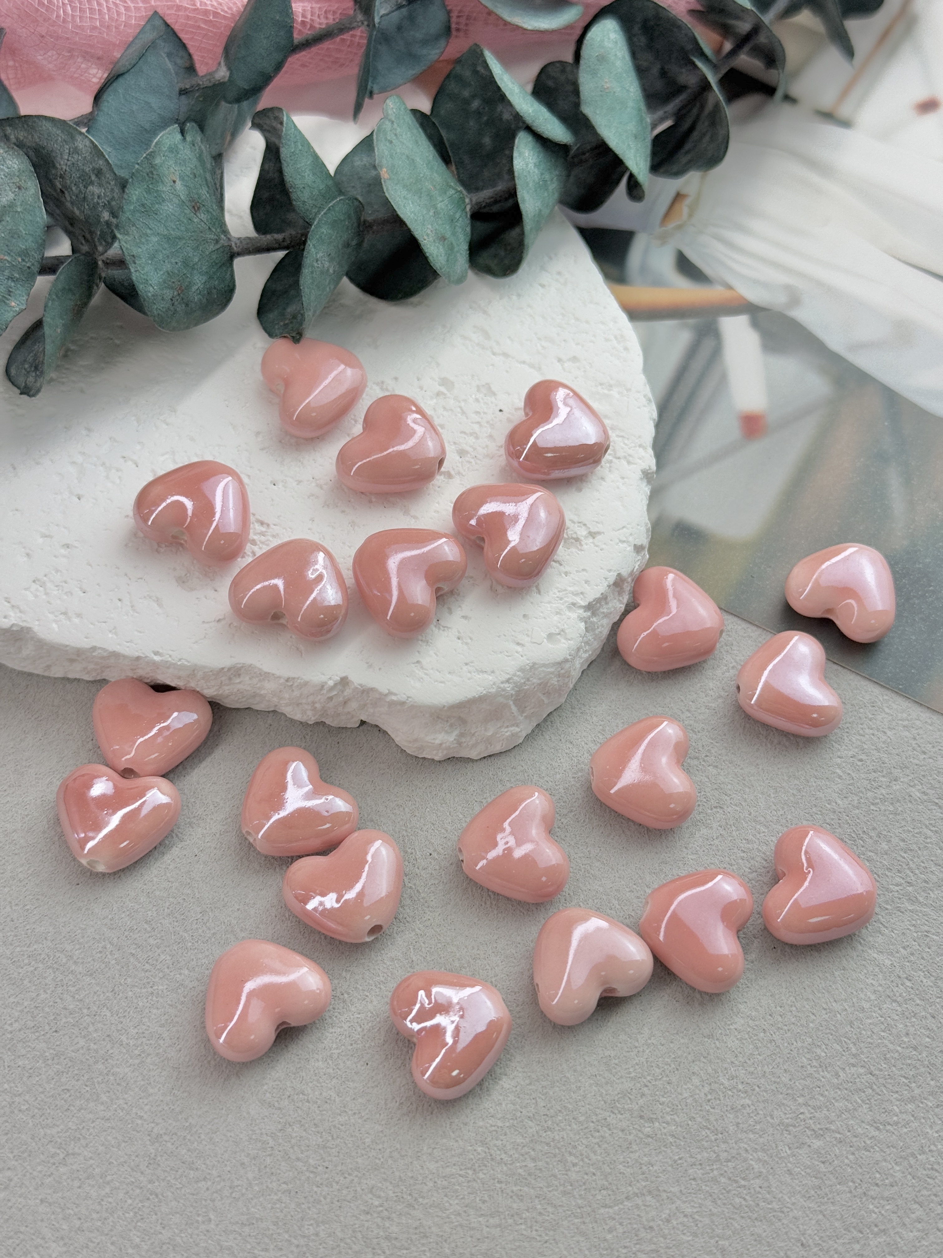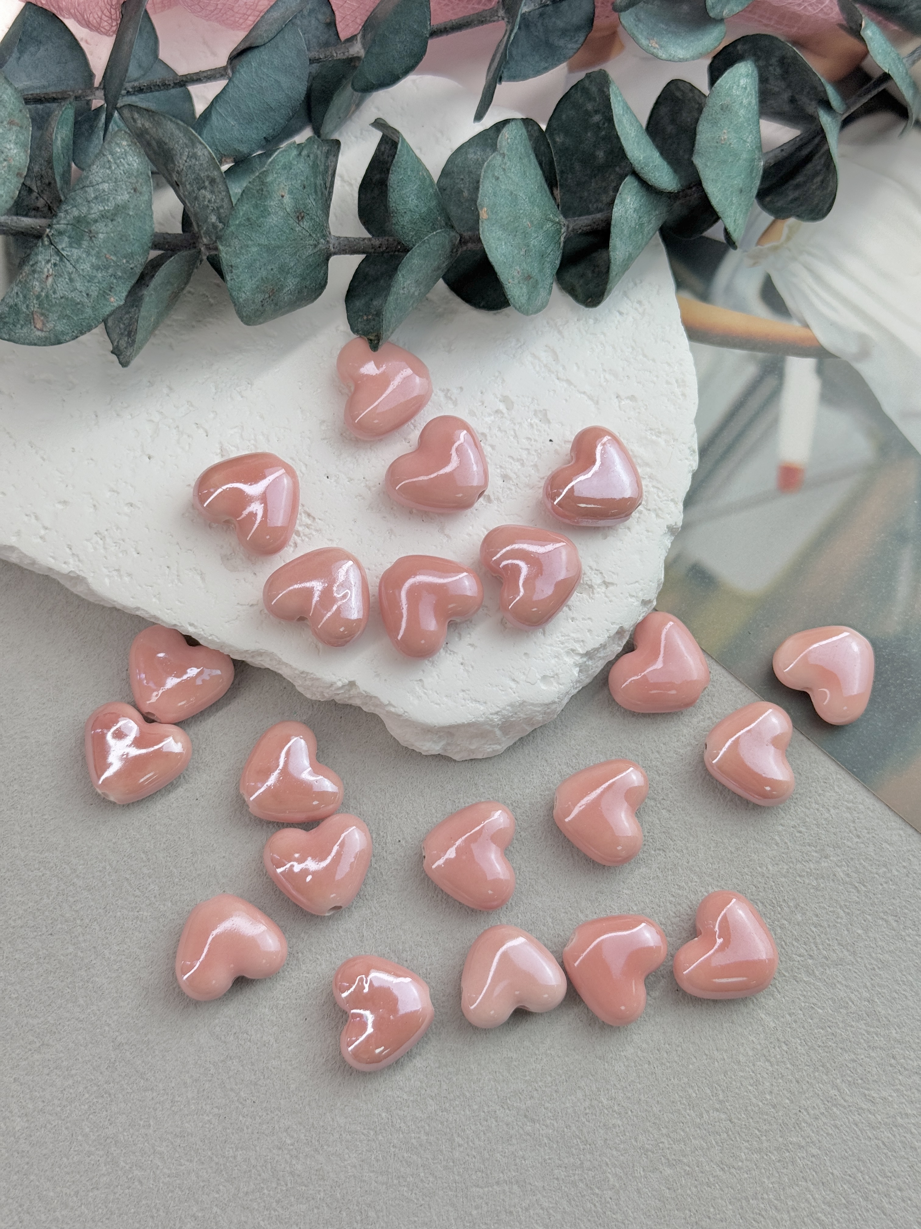 Милые глянцевые бусинки из керамики для создания украшений ручной работы. Покрыты блестящей глазурью (стекло). Долговечны (не выцветают, не боятся трения и абразивов). Гипоаллергенны. На поверхности бусин могут быть незначительные неровности. В наборе 10 штук. Размер 13*15 мм, форма: сердце.