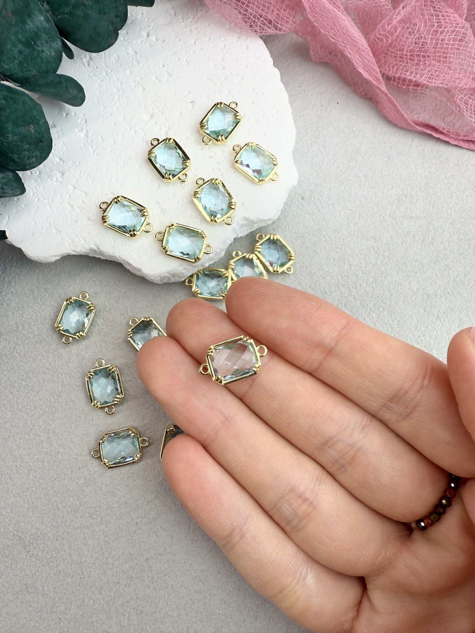 Коннектор "Ромб" с крупной вставкой стекла для создания украшений ручной работы. Гипоаллергенная фурнитура для сборки украшений.