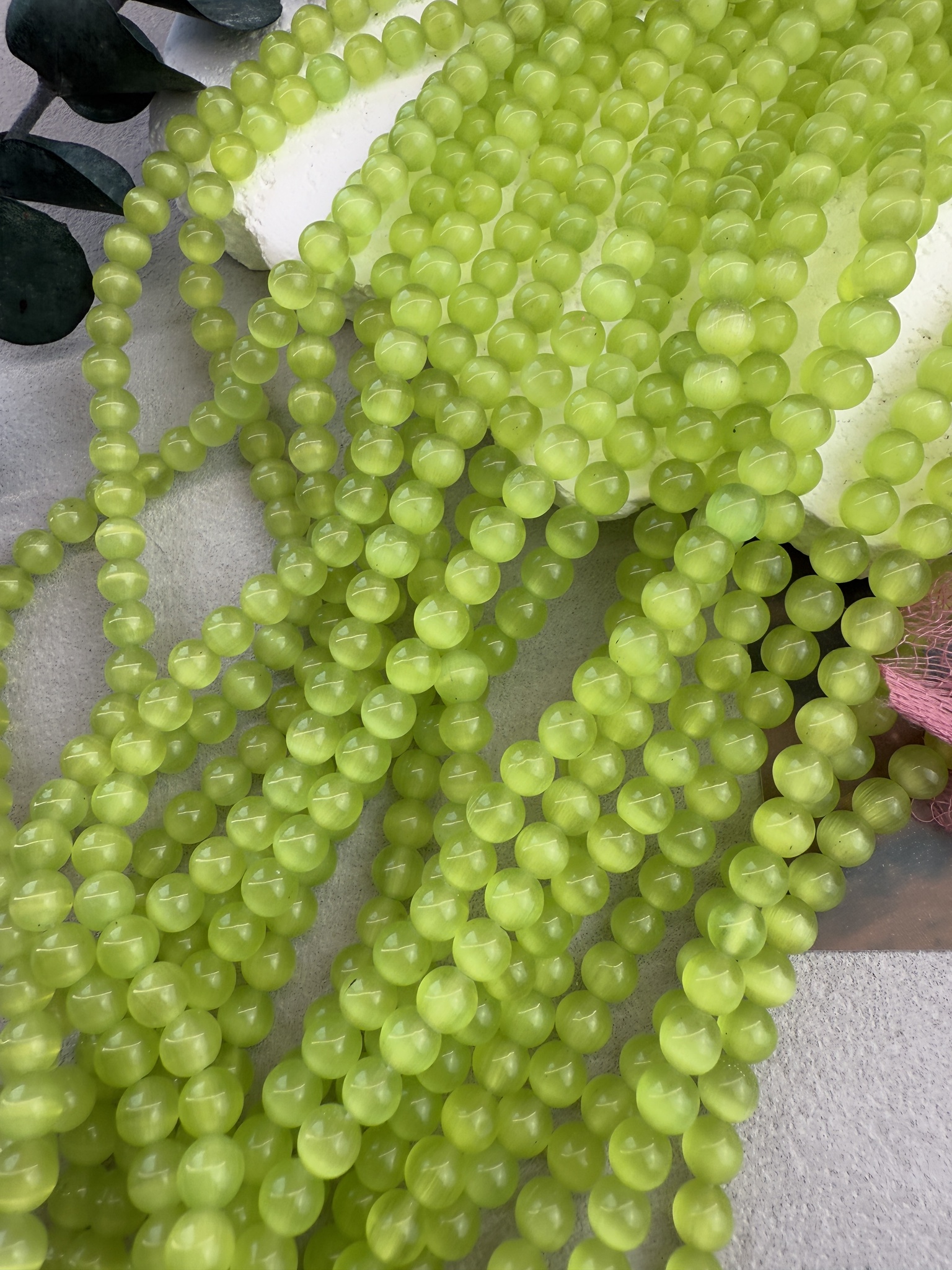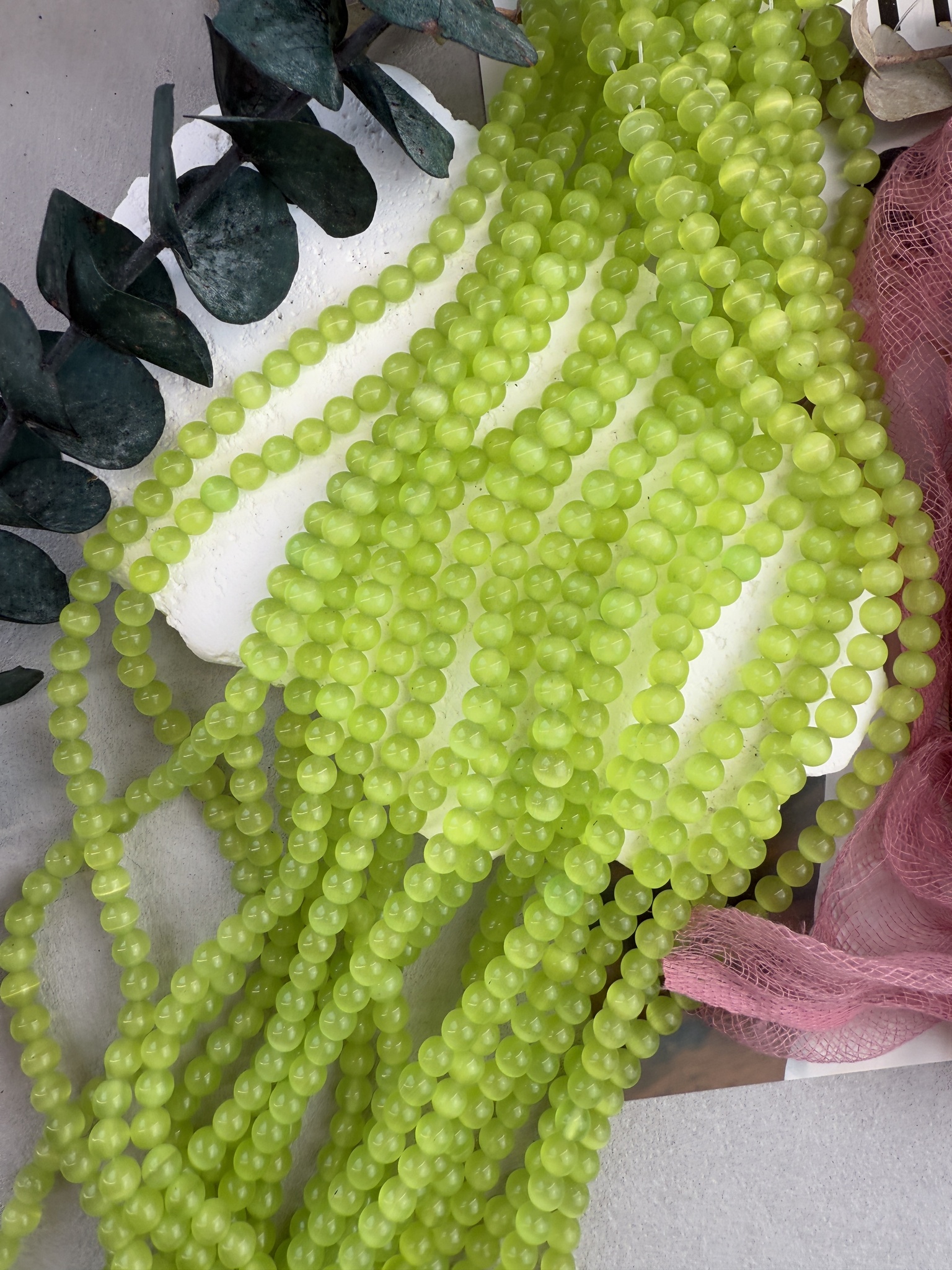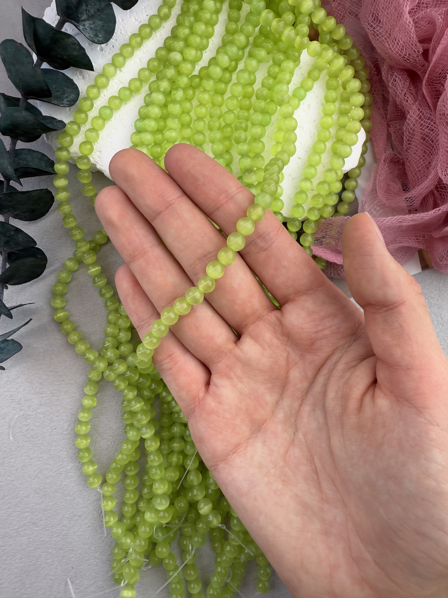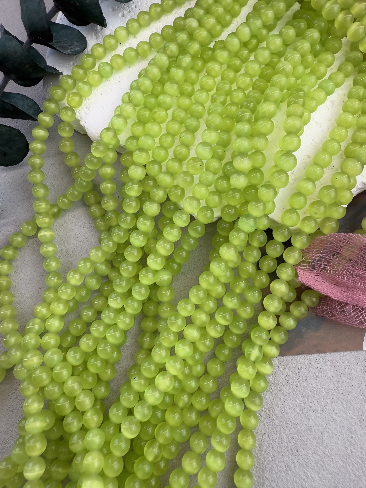 Круглые бусины синтетического кошачьего глаза 6 мм с красивыми переливами зеленого цвета. Продаются на нити или россыпью. Подходят для создания украшений ручной работы. Не вызывают аллергии, не выцветают.