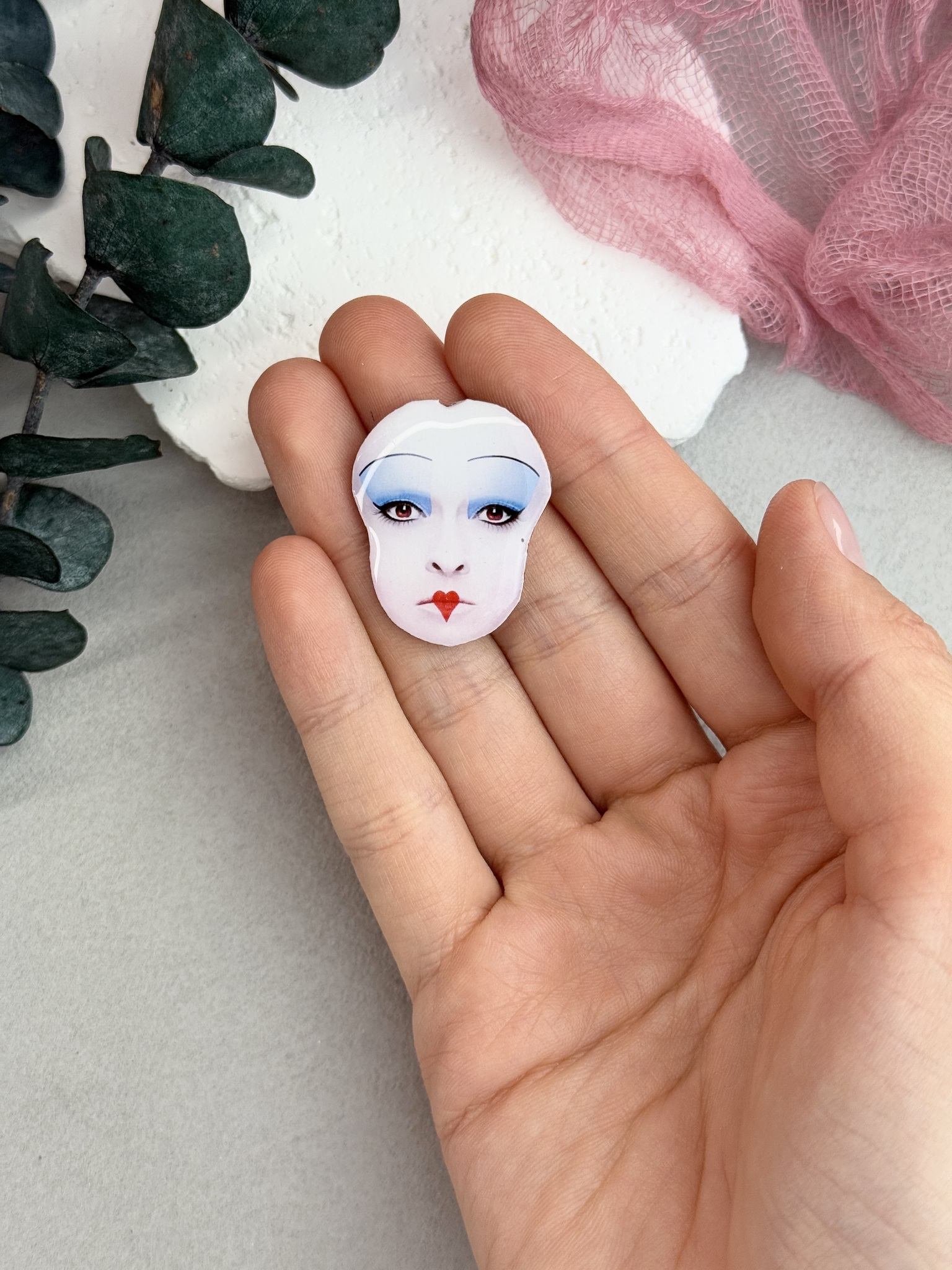 Служит для создания тематических брошек в виде этого персонажа. Выполнен из дерева и эпоксидной смолы. Высота основы 1,5 мм, высота линзы 1-2 мм.