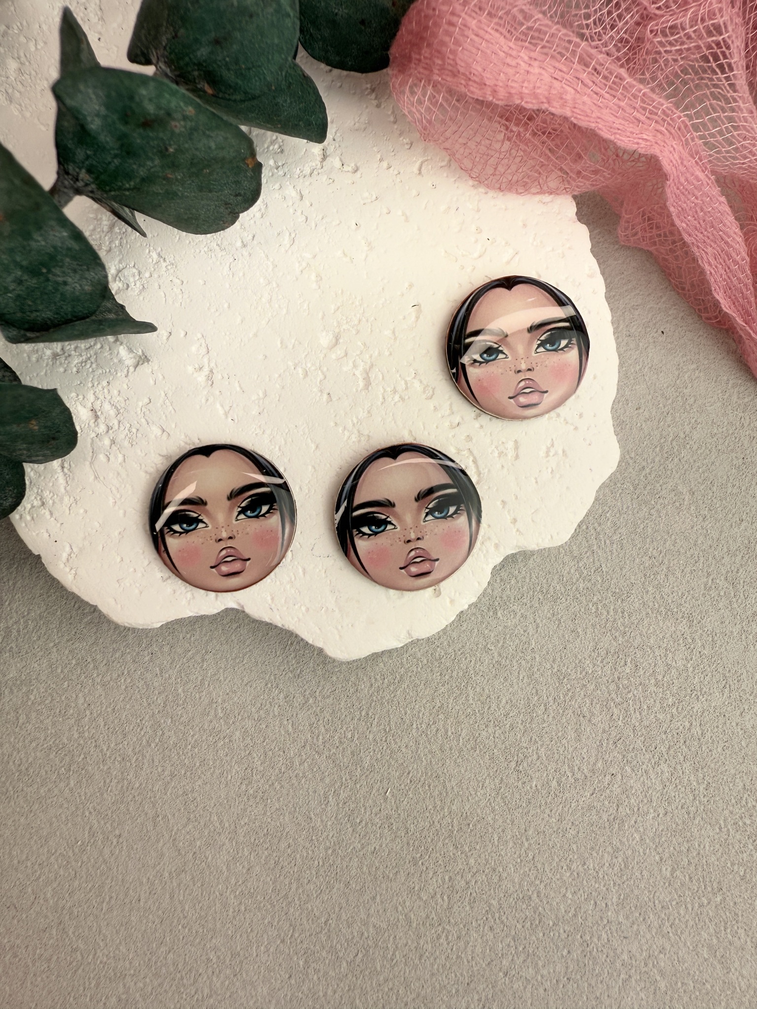 Кабошон лицо матрешки для броши. Диаметр 20 мм, высота основы 1,5 мм, высота линзы 1-2 мм.