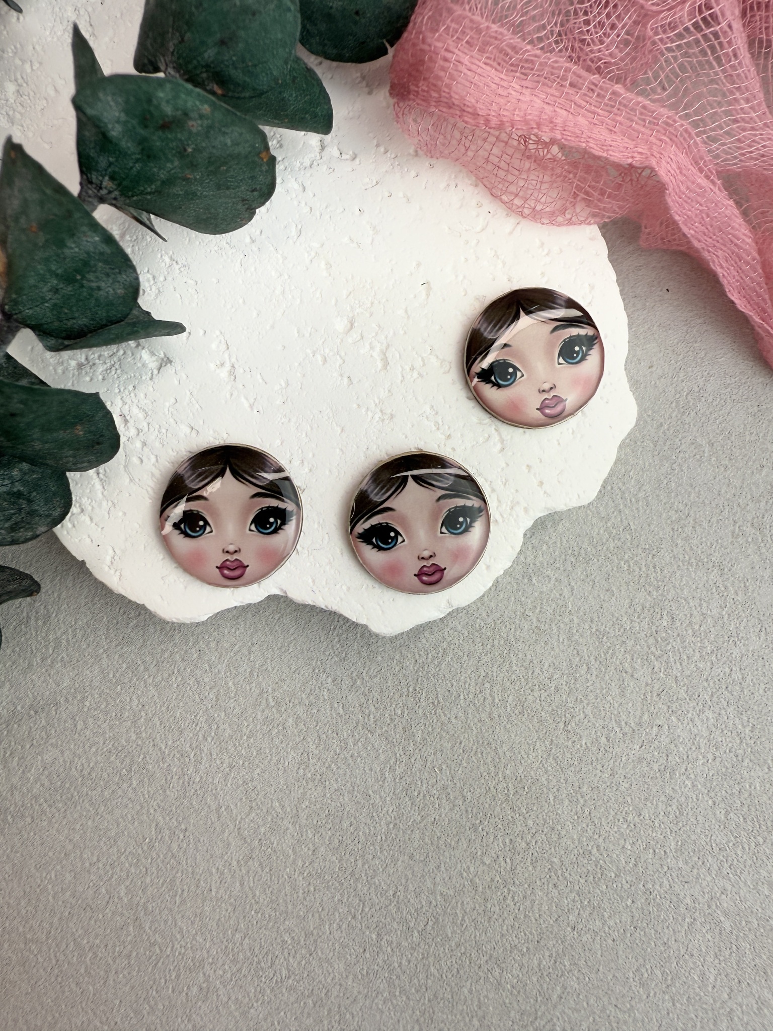 Кабошон лицо матрешки для броши. Диаметр 20 мм, высота основы 1,5 мм, высота линзы 1-2 мм.