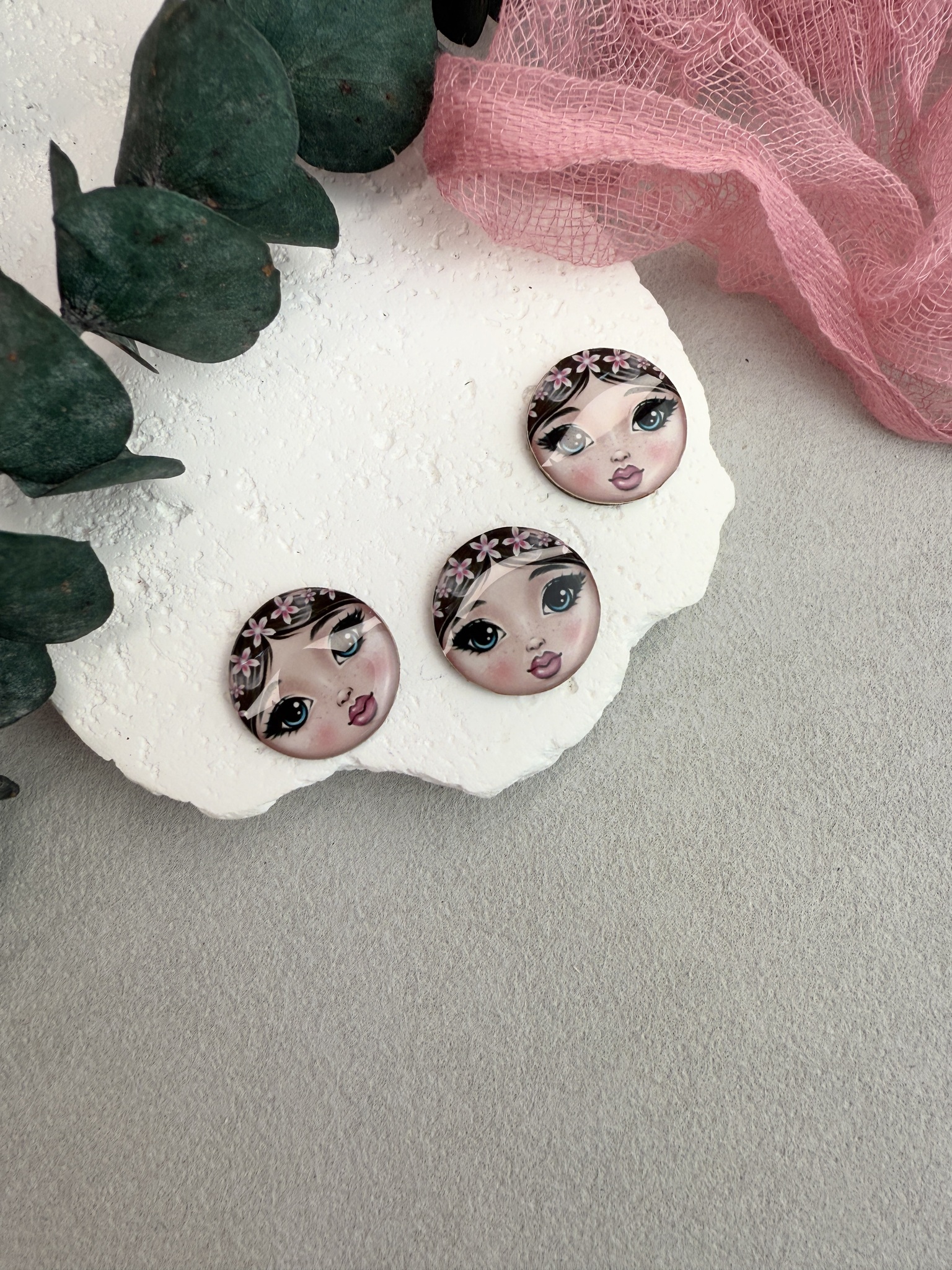 Кабошон лицо матрешки для броши. Диаметр 20 мм, высота основы 1,5 мм, высота линзы 1-2 мм.