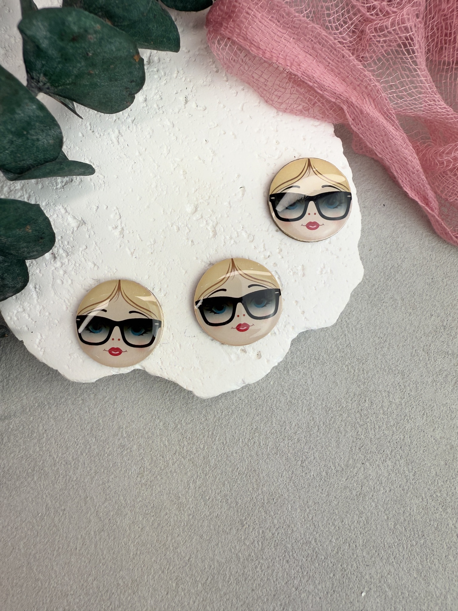 Кабошон лицо матрешки для броши. Диаметр 20 мм, высота основы 1,5 мм, высота линзы 1-2 мм.
