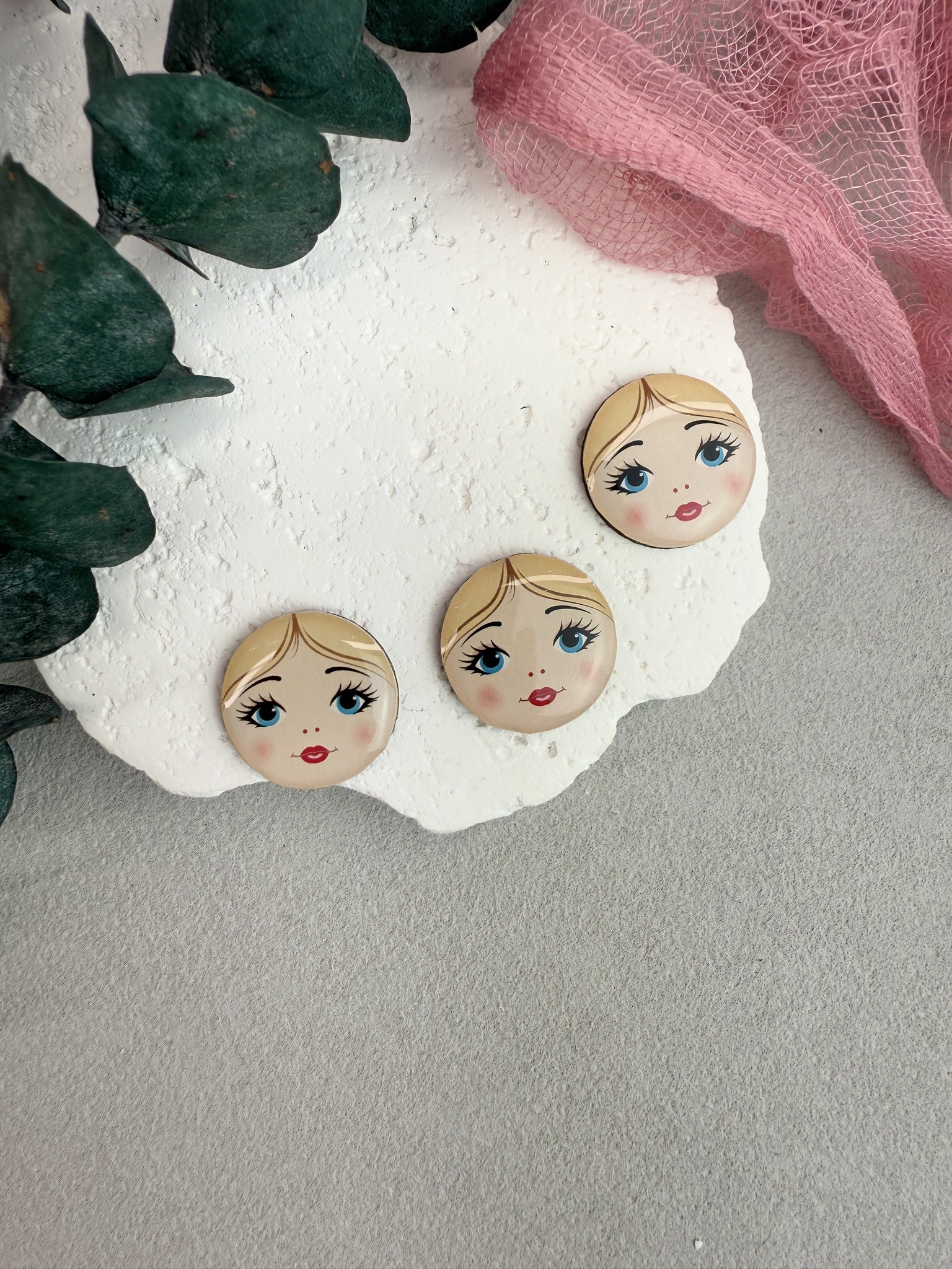 Кабошон лицо матрешки для броши. Диаметр 20 мм, высота основы 1,5 мм, высота линзы 1-2 мм.