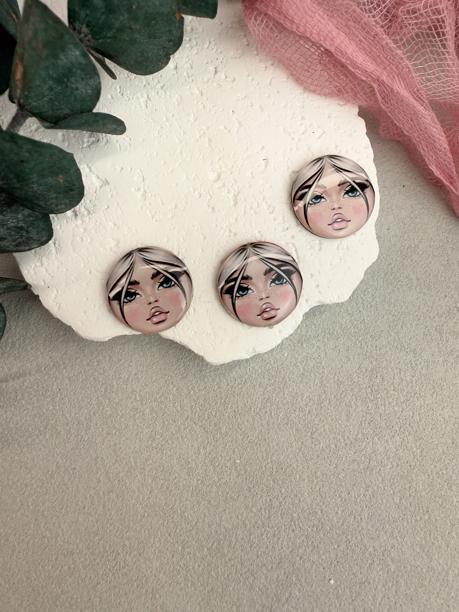 Кабошон лицо матрешки для броши. Диаметр 20 мм, высота основы 1,5 мм, высота линзы 1-2 мм.
