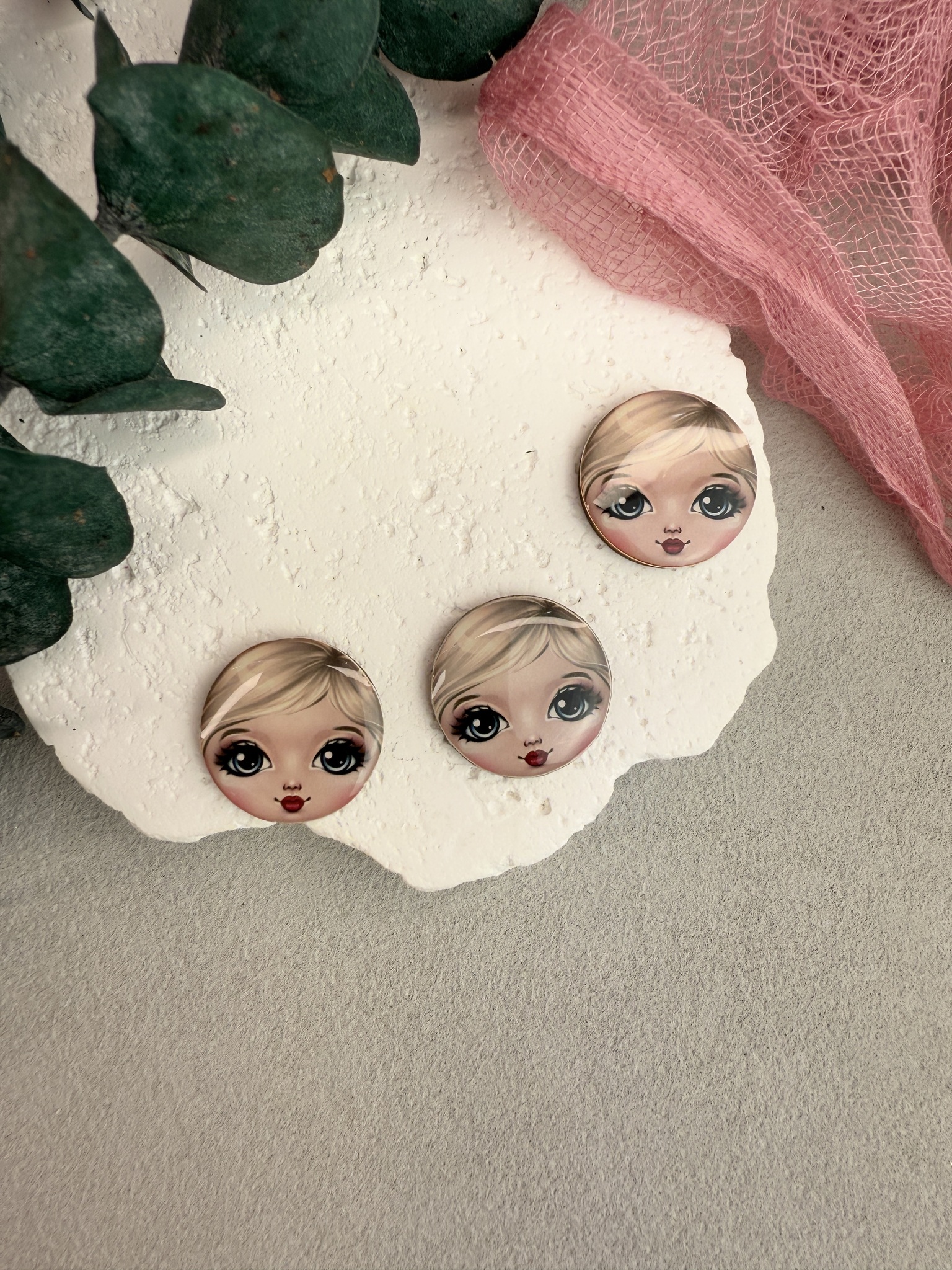 Кабошон лицо матрешки для броши. Диаметр 20 мм, высота основы 1,5 мм, высота линзы 1-2 мм.