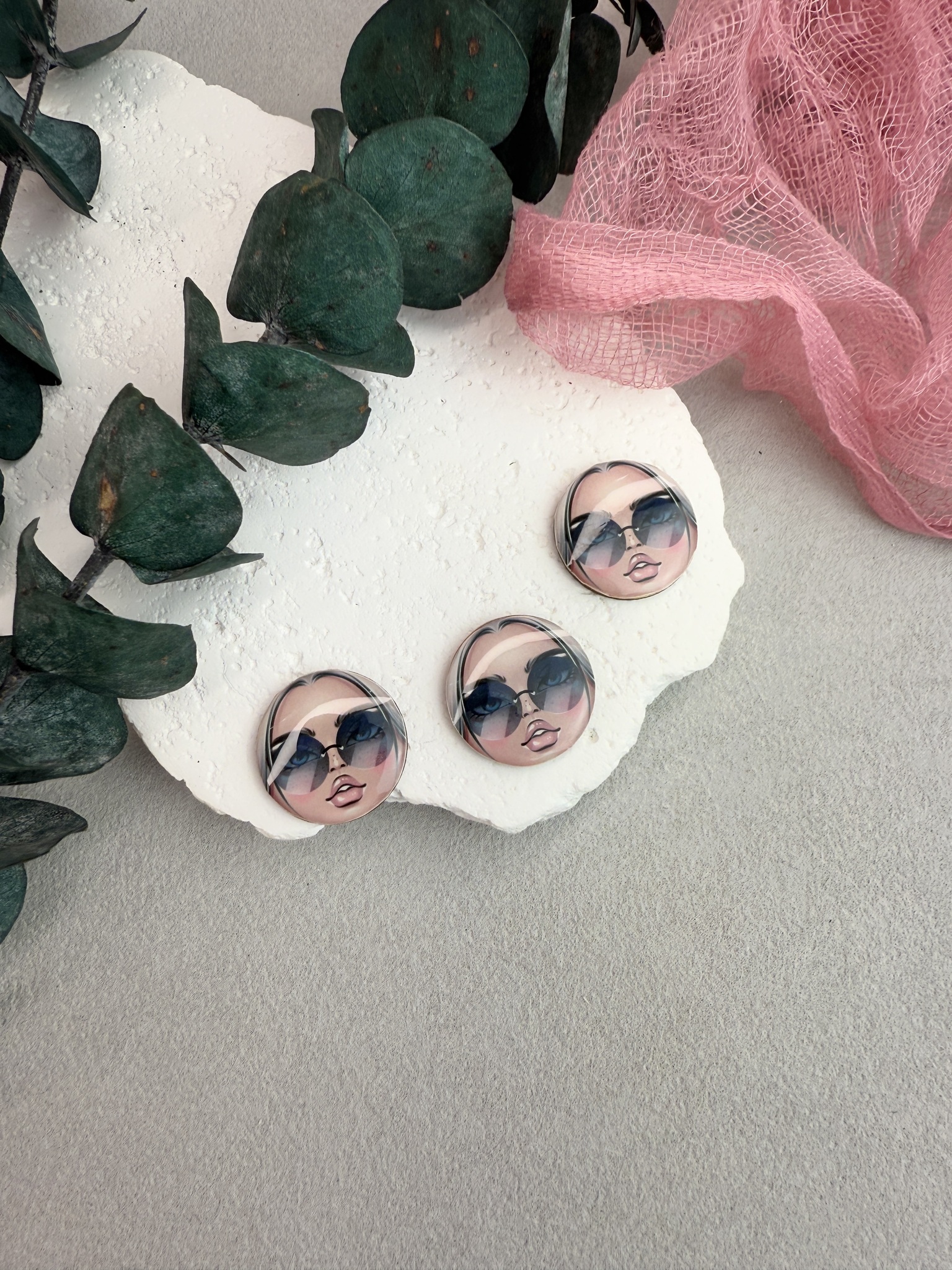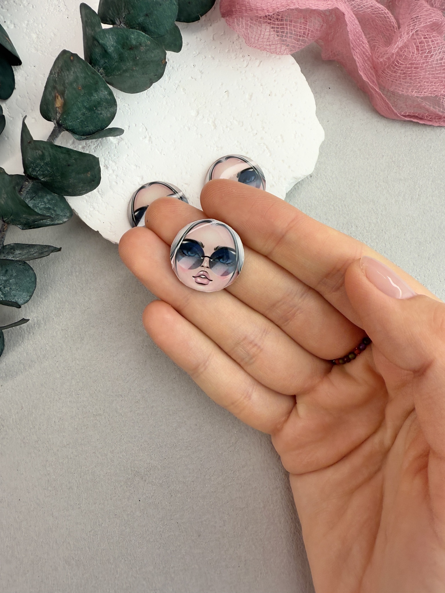 Кабошон лицо матрешки для броши. Диаметр 20 мм, высота основы 1,5 мм, высота линзы 1-2 мм.