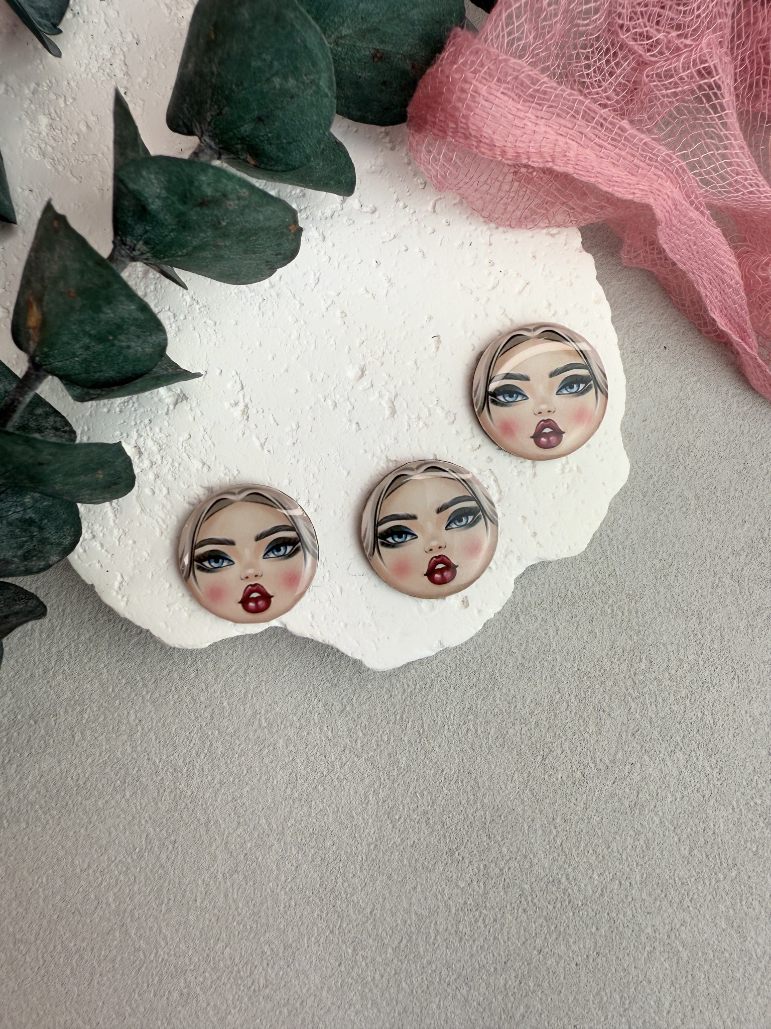 Кабошон лицо матрешки для броши. Диаметр 20 мм, высота основы 1,5 мм, высота линзы 1-2 мм.