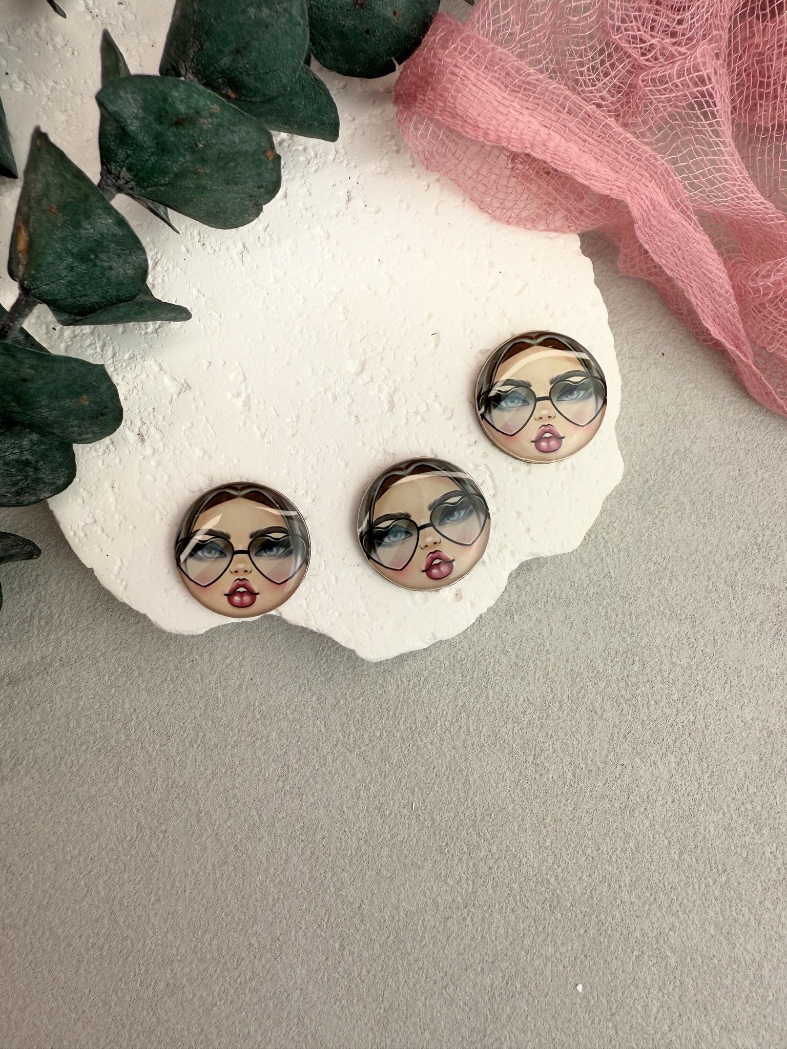 Кабошон лицо матрешки для броши. Диаметр 20 мм, высота основы 1,5 мм, высота линзы 1-2 мм.