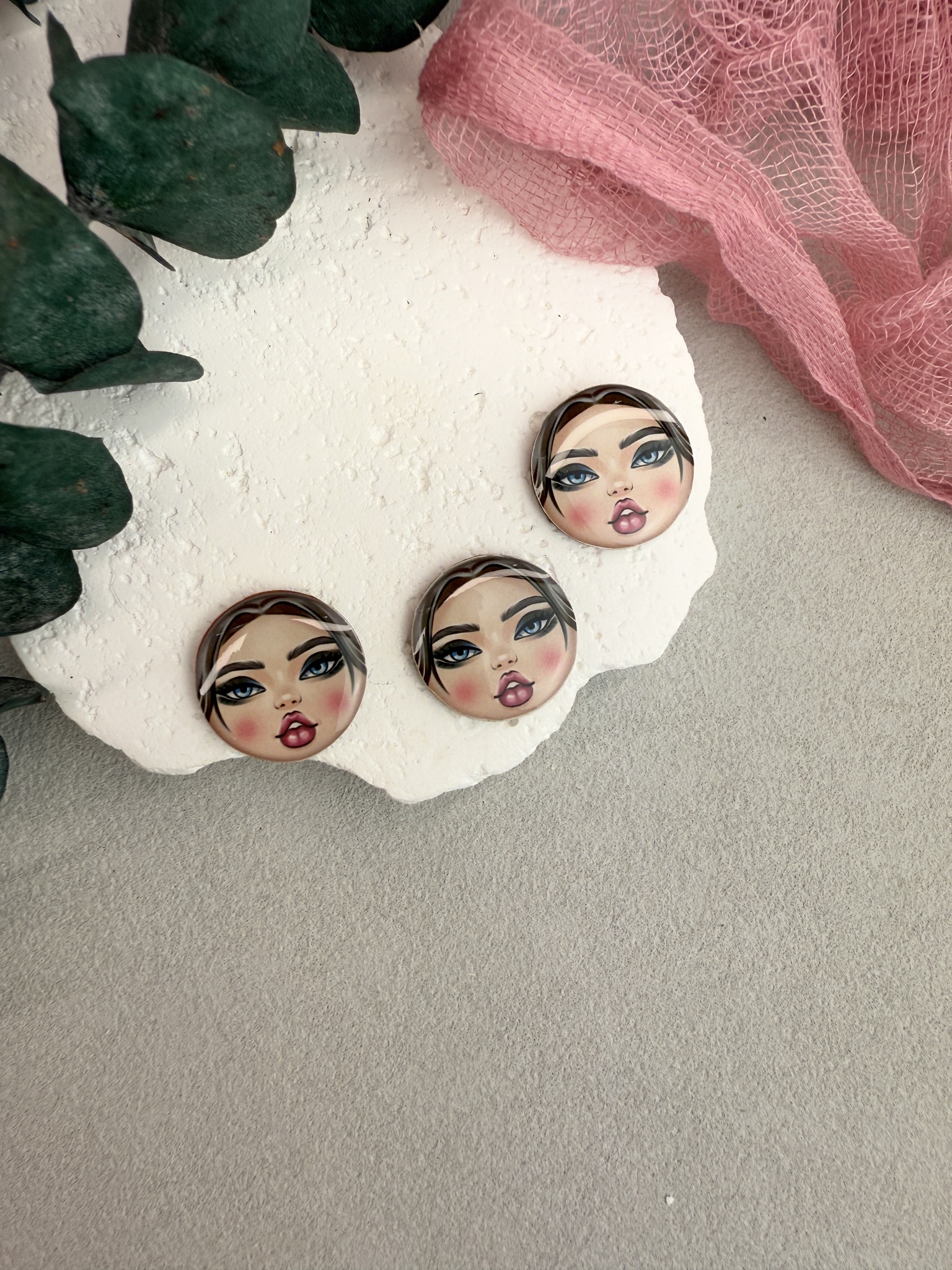 Кабошон лицо матрешки для броши. Диаметр 20 мм, высота основы 1,5 мм, высота линзы 1-2 мм.