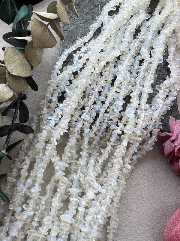 Бусины произвольной формы из лунного камня. Размер бусин (примерный) 3-5 мм. Продается россыпью или на нити длиной 80 см (нить иногда рвется и мы меняем фасовку на россыпь). Форма всех бусин разная, неопределенная (галька).
