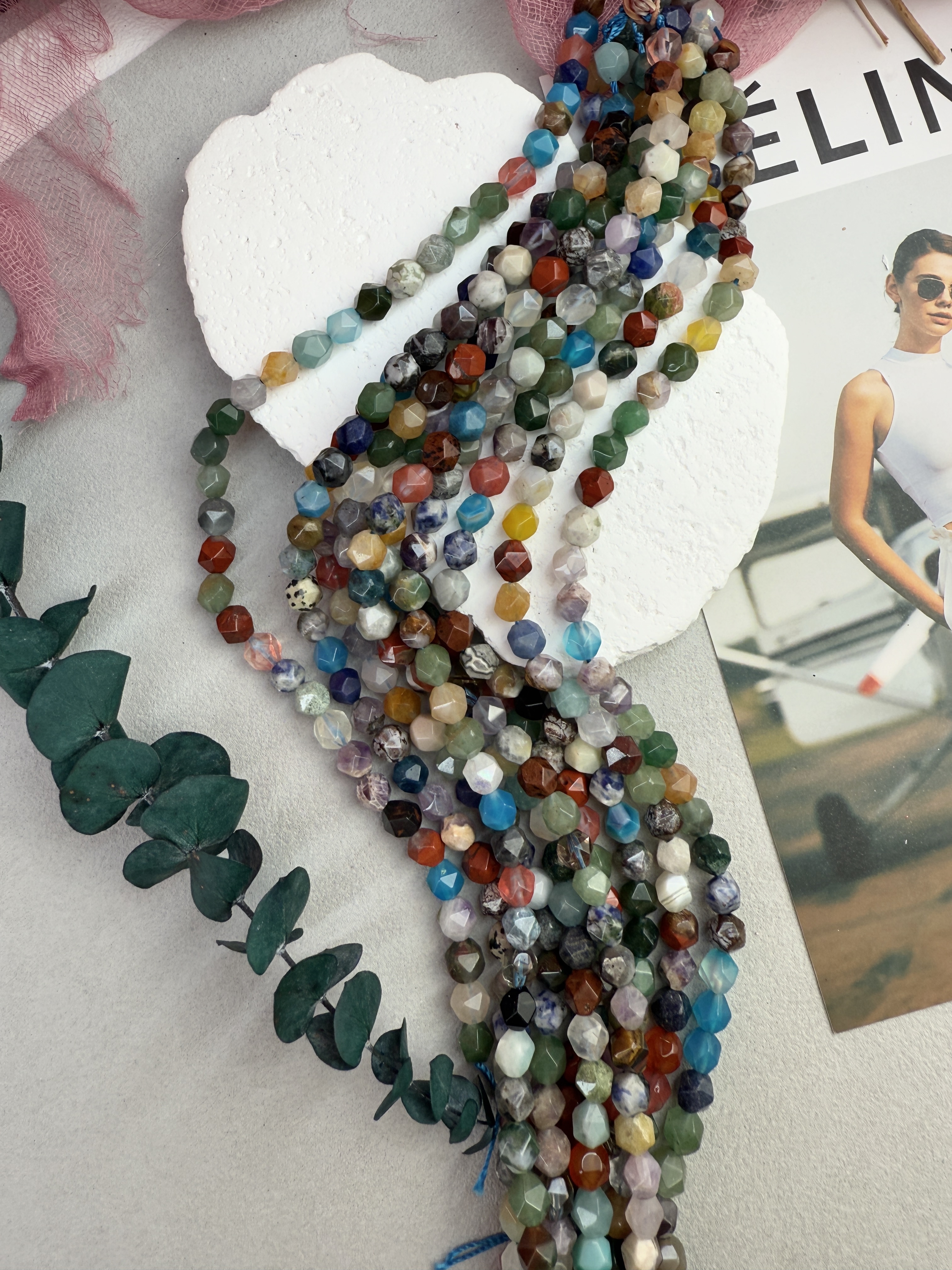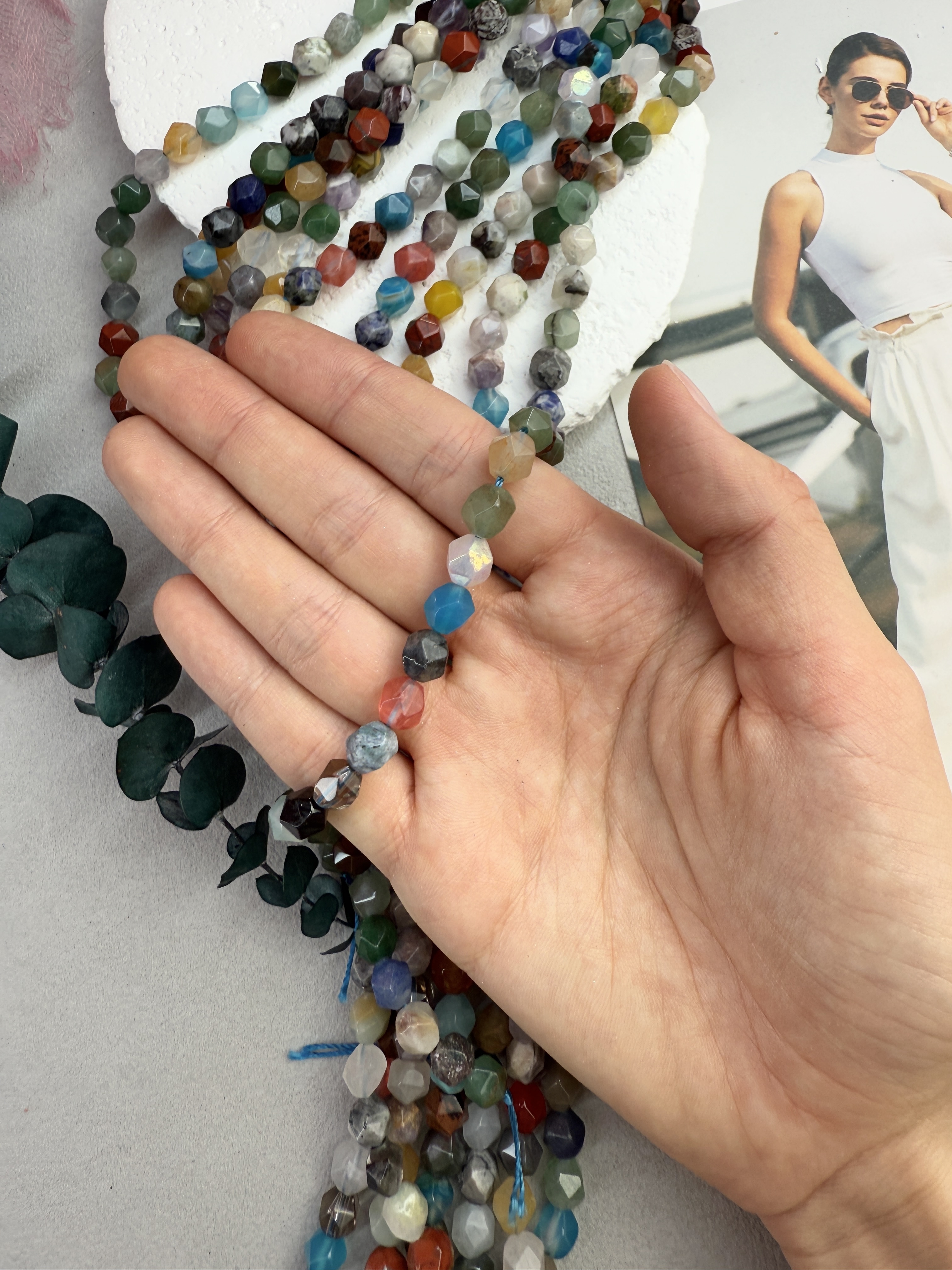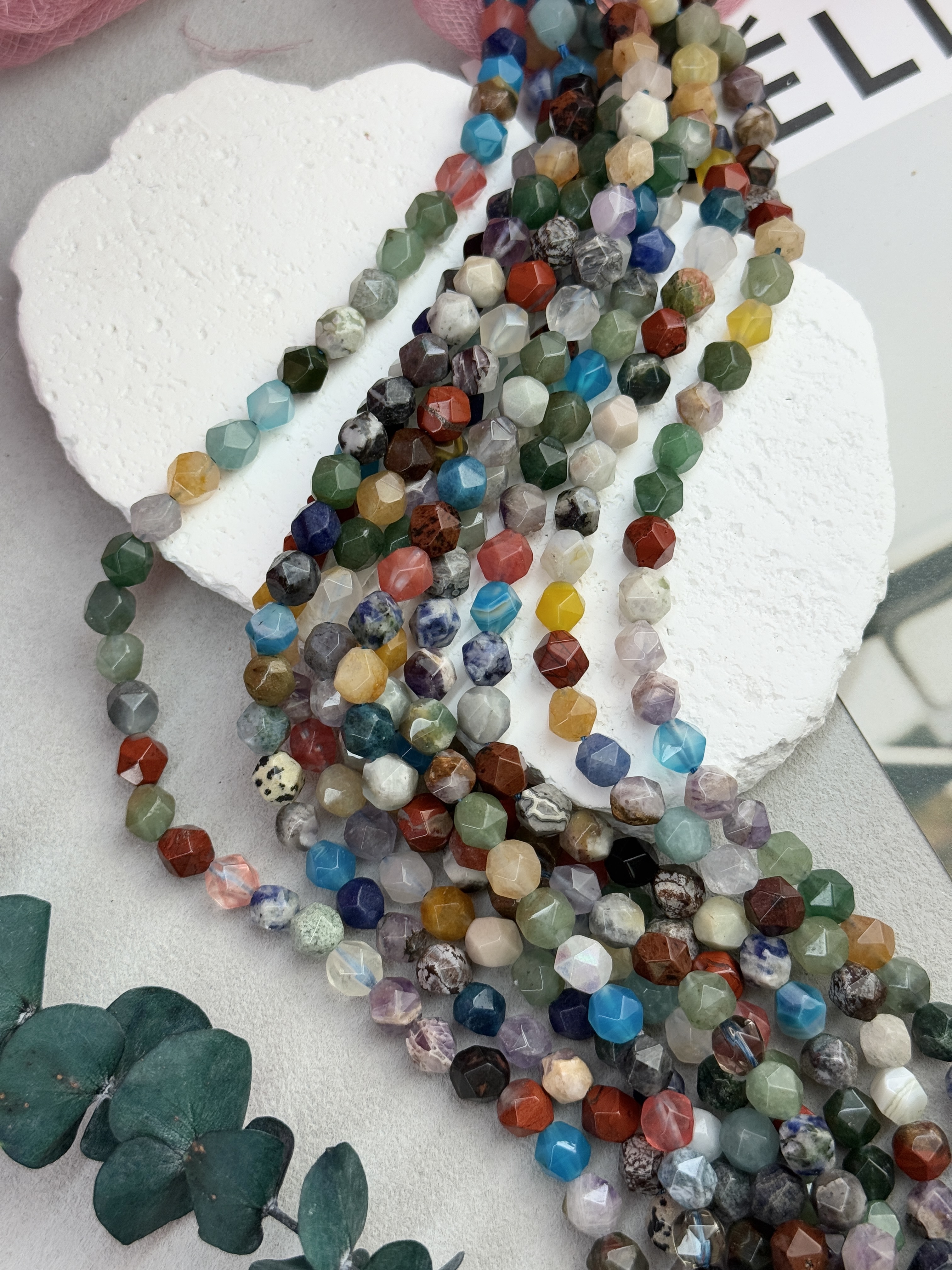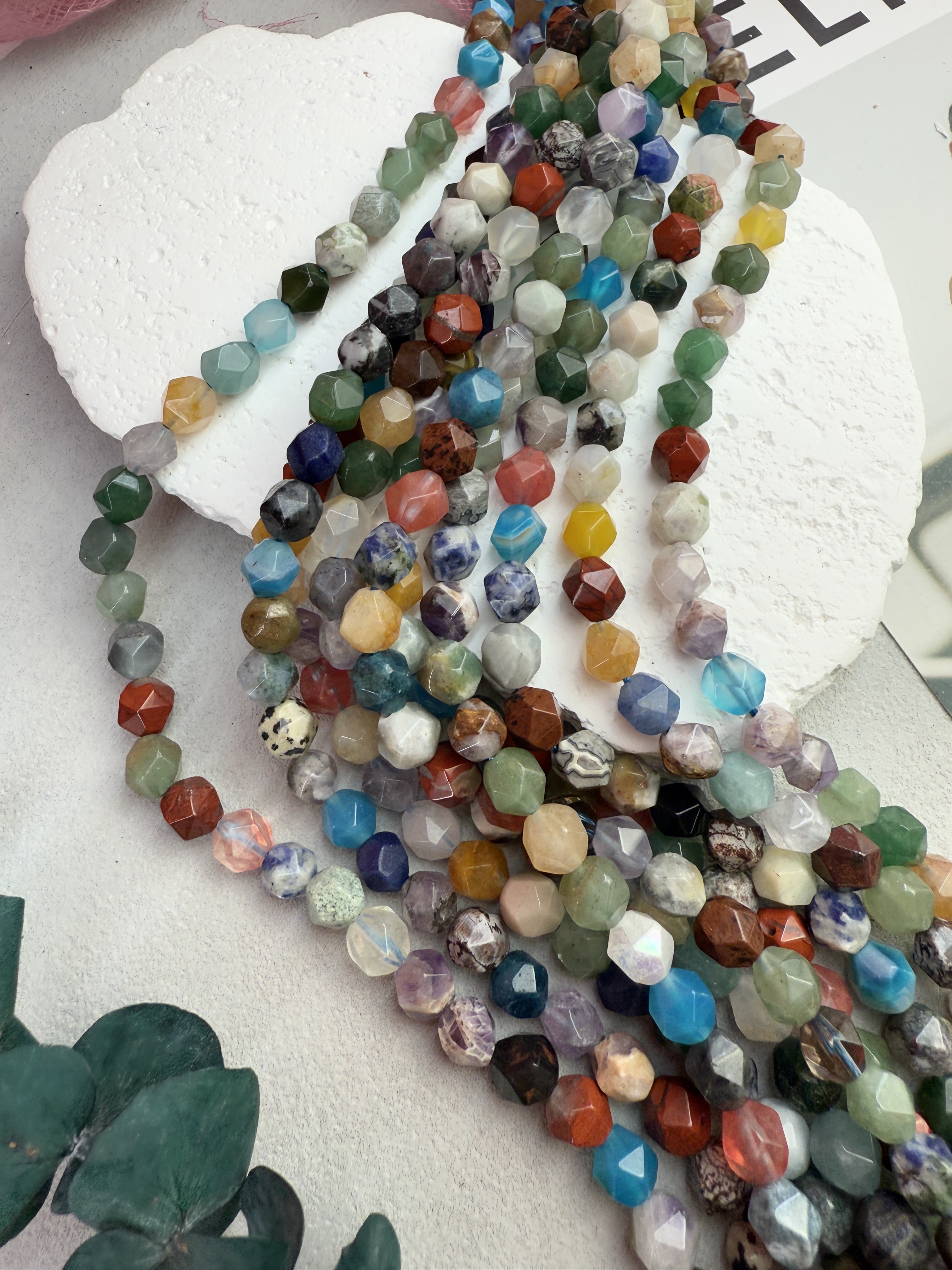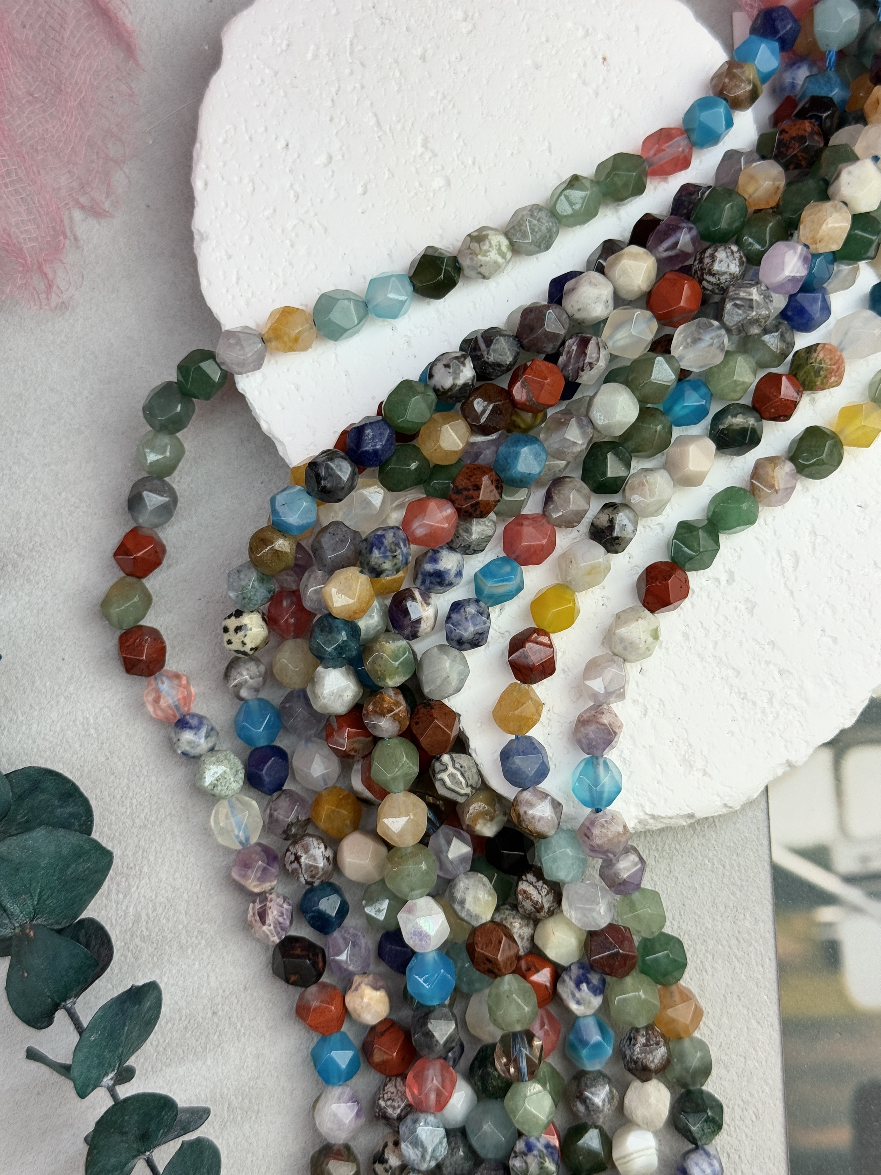 Граненые бусины из натуральных камней. (Агат, аметист, халцедон, кварц, лазурит, авантюрин, хрусталь, яшма и т.д.)