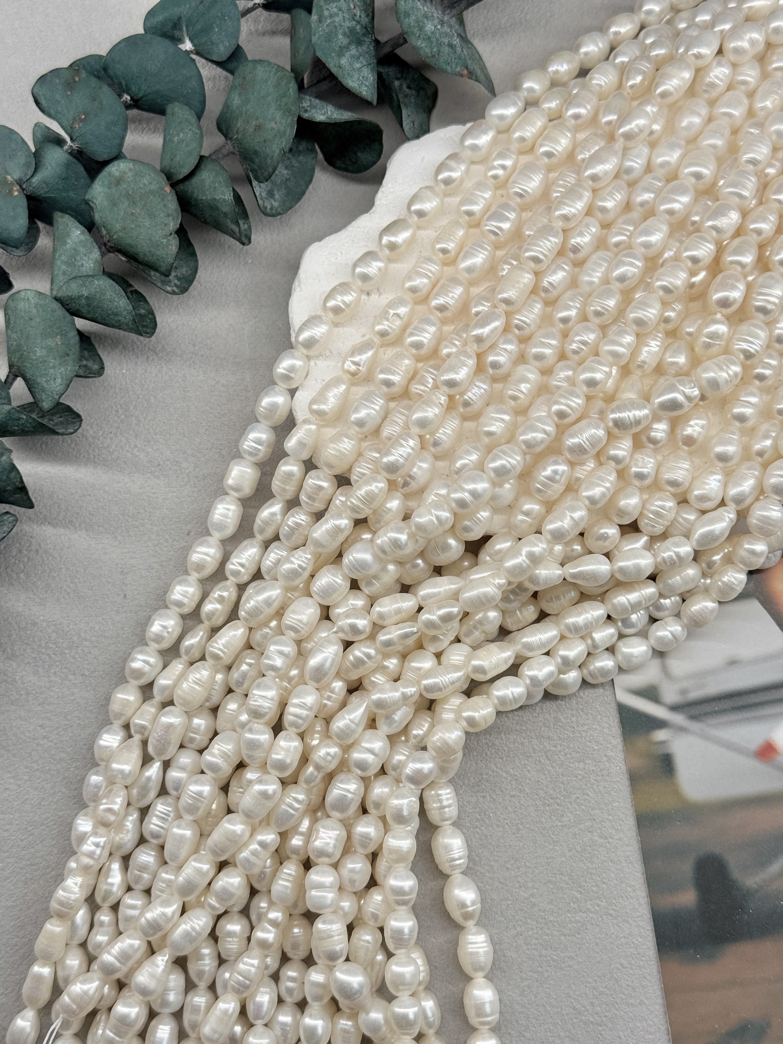 Натуральный баррочный жемчуг в форме сплюснутого овала (яйцо). Может иметь заметные поперечные полоски. Каждая жемчужина — это неповторимое творение природы. Из-за этого естественные отличия в размере, оттенке и наличие небольших природных отметин (включая вкрапления другого цвета или участки с матовым блеском) являются неотъемлемой чертой баррочного жемчуга и не являются браком.