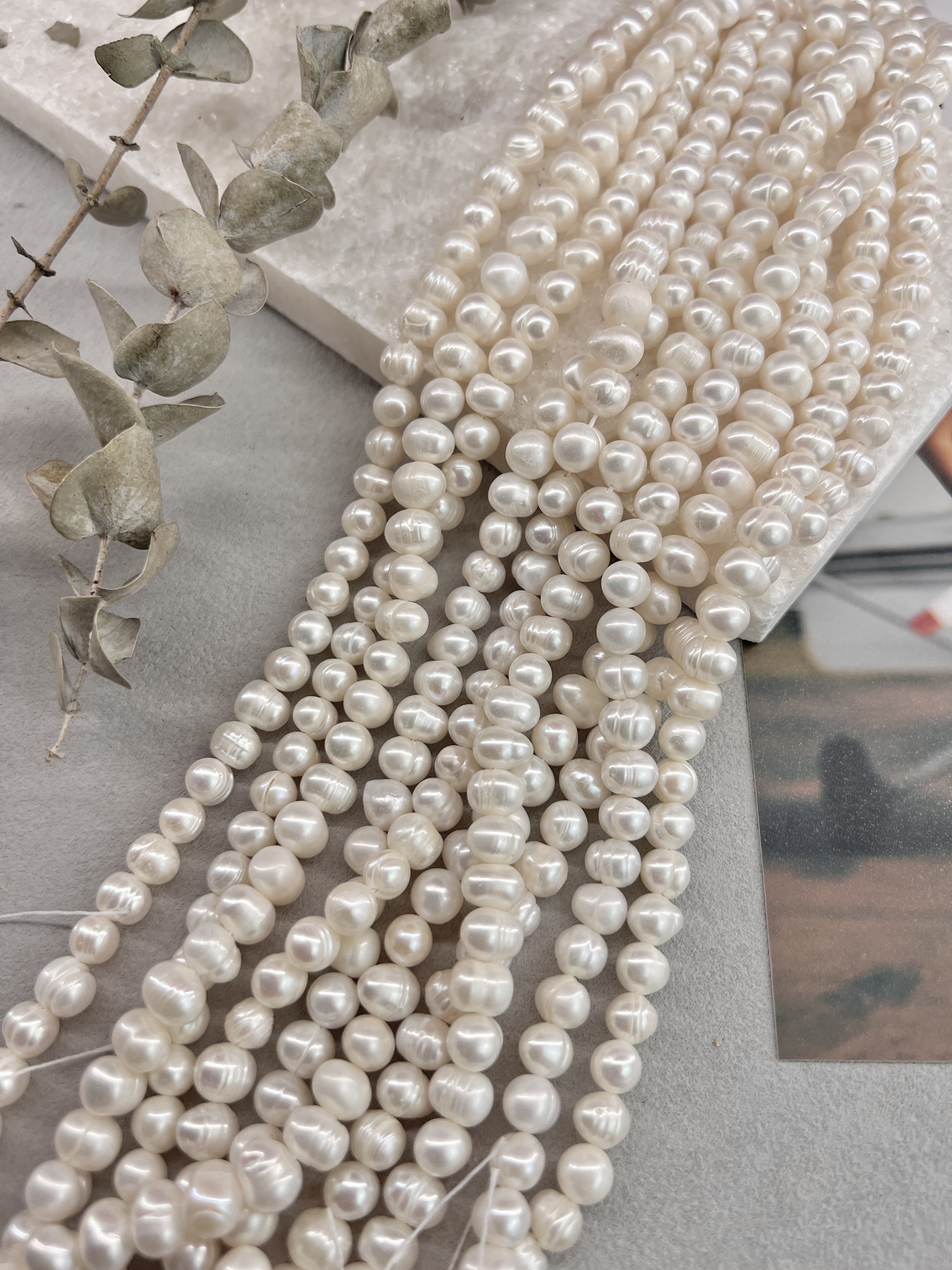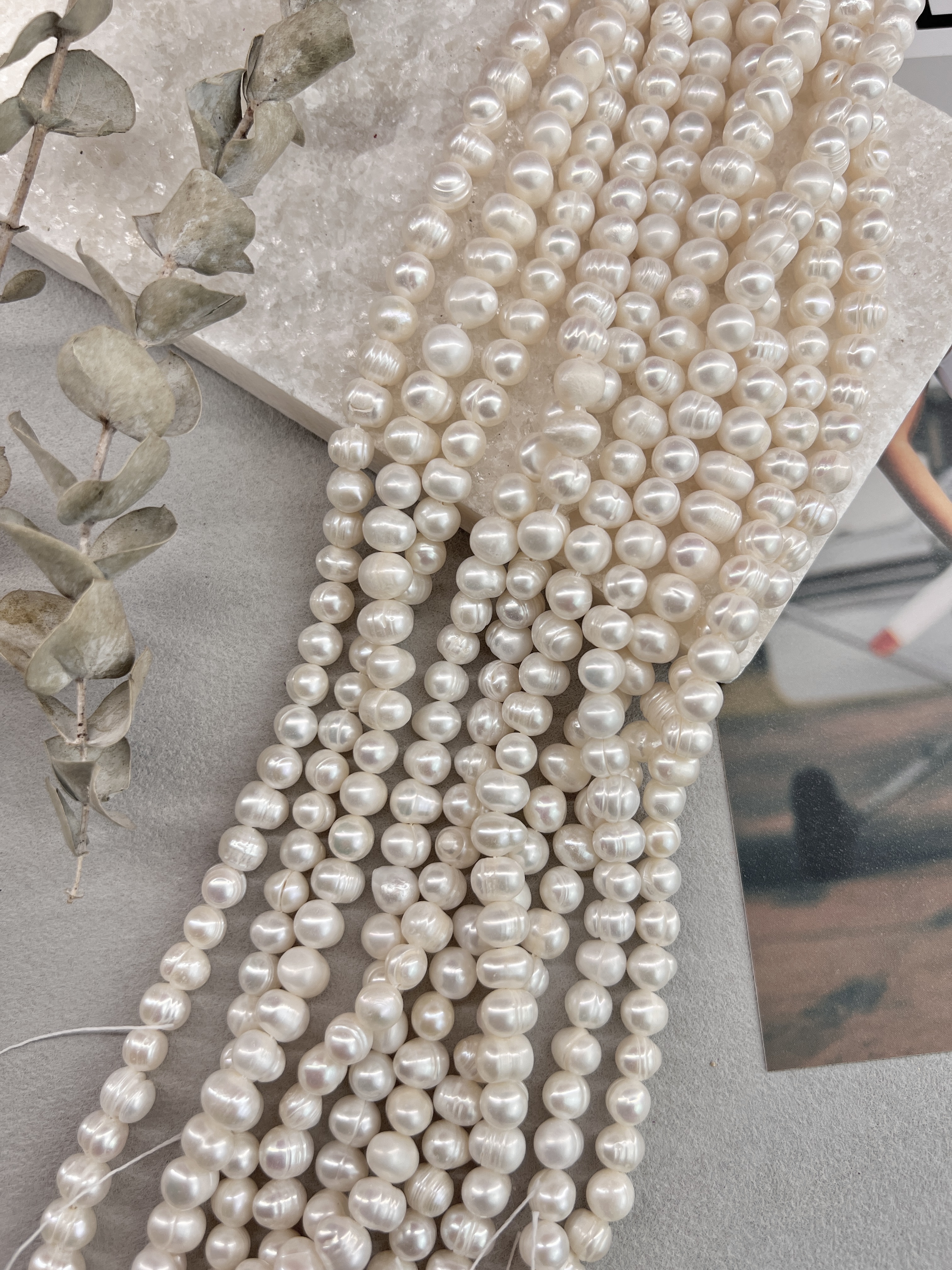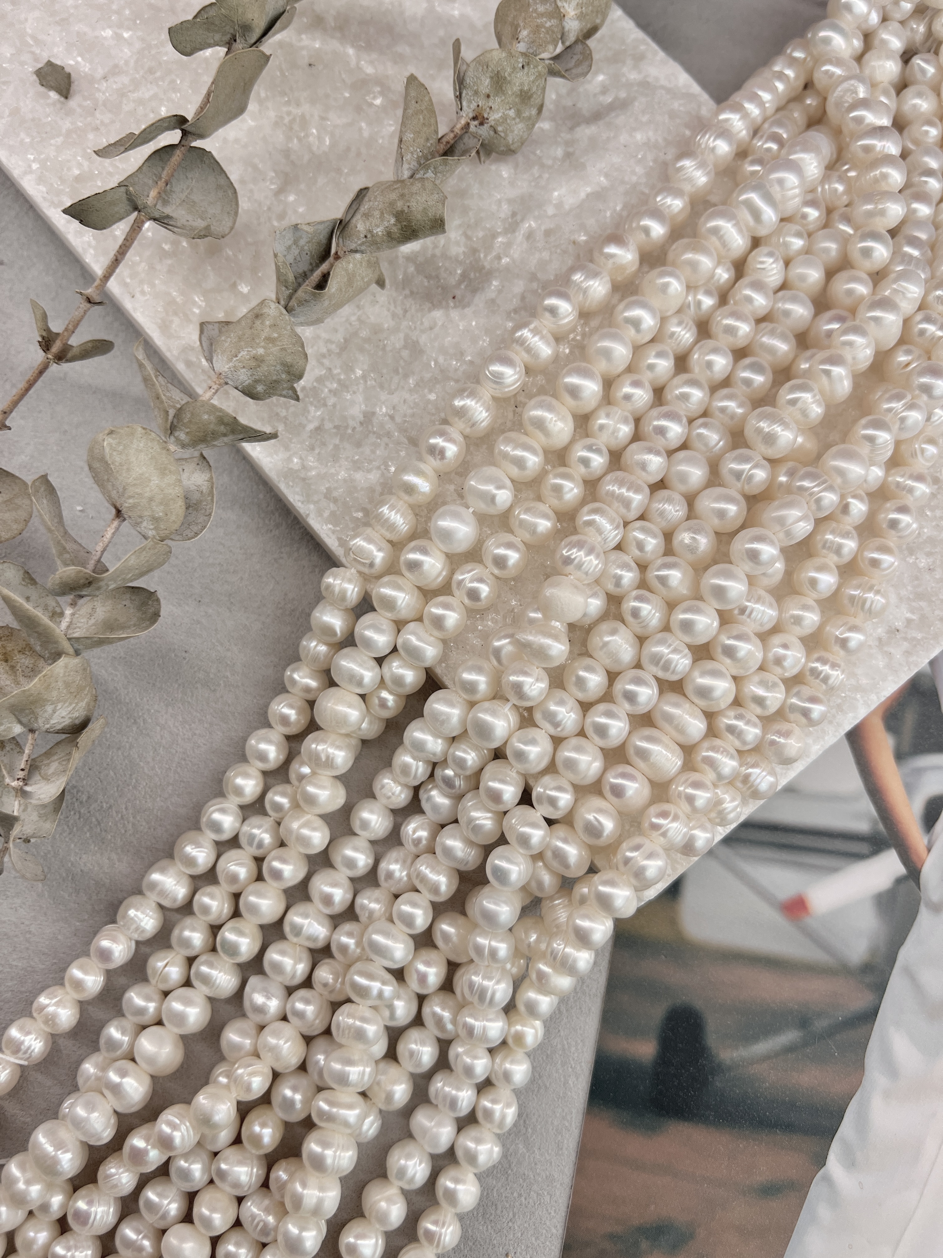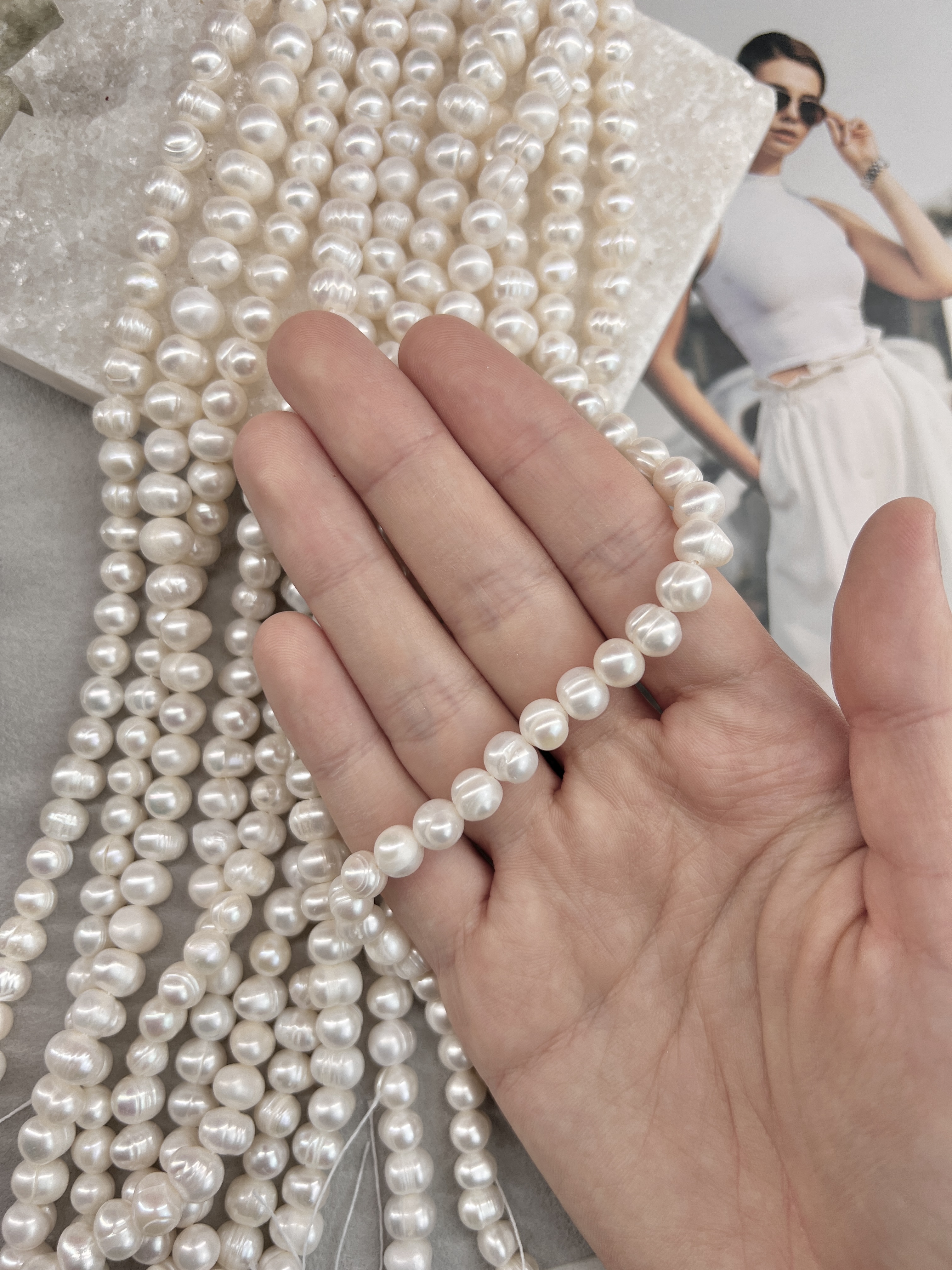 Натуральный барочный жемчуг в форме овала. Может иметь заметные поперечные полоски. Каждая жемчужина — это неповторимое творение природы. Из-за этого естественные отличия в размере, оттенке и наличие небольших природных отметин (включая вкрапления другого цвета или участки с матовым блеском) являются неотъемлемой чертой барочного жемчуга и не являются браком.