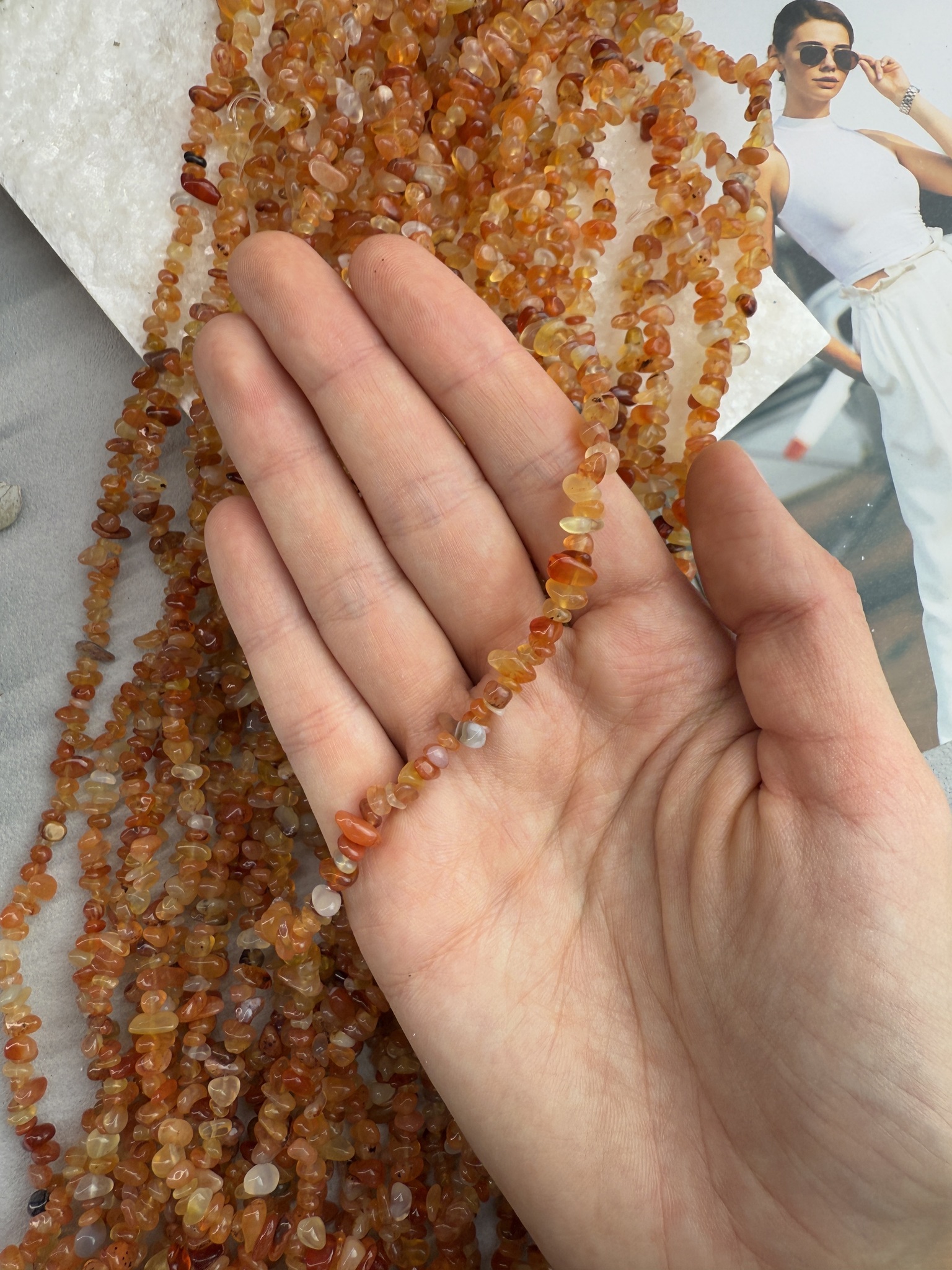 Бусины произвольной формы из натурального агата оранжевого цвета. Размер бусин (примерный) 5-8 мм. Продается россыпью или на нити длиной 80 см (нить иногда рвется и мы меняем фасовку на россыпь). Форма всех бусин разная, неопределенная (галька).