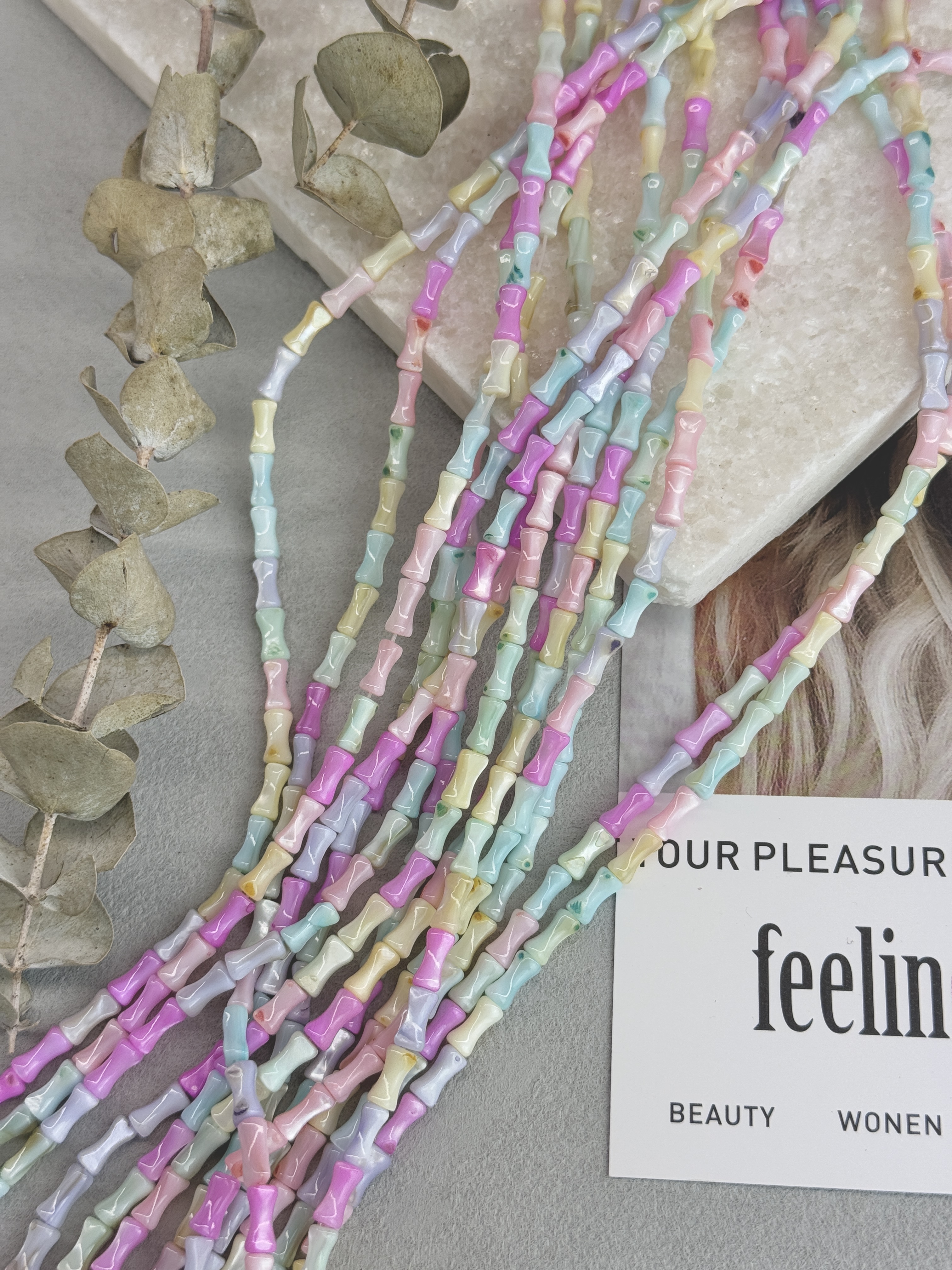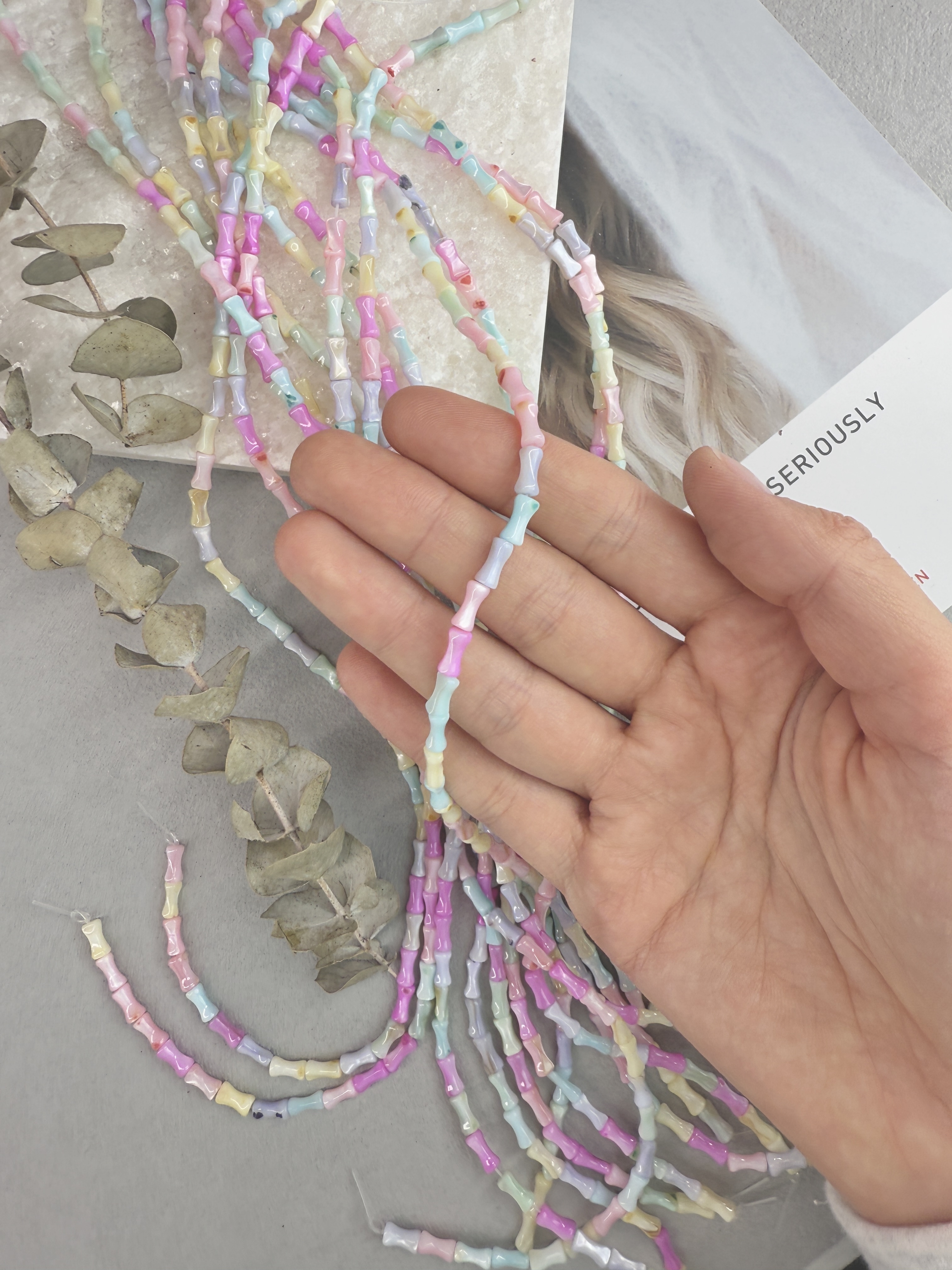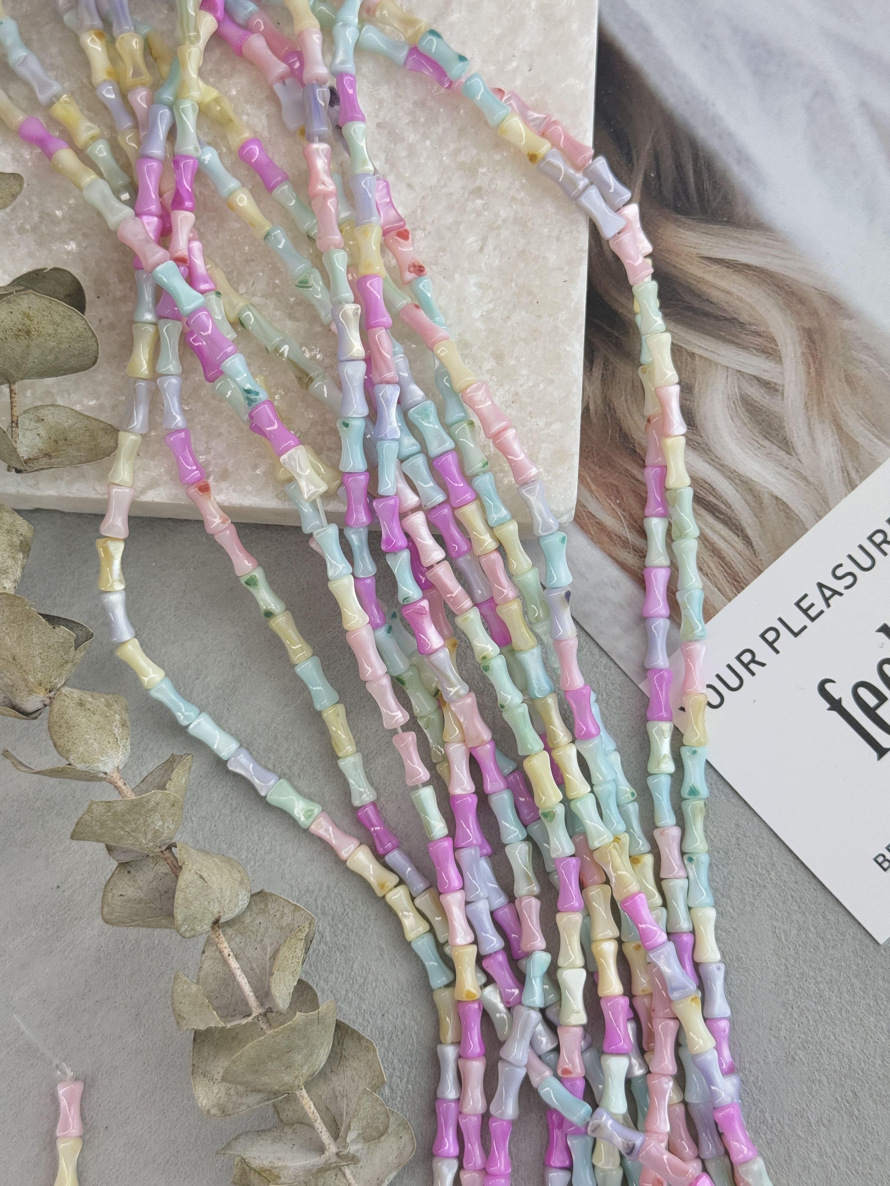 Бусины из натурального перламутра в форме бамбука 8 мм разноцветных оттенков. Идеальный материал для сборки украшений ручной работы: бусины не выцветают, гипоаллергенны, долговечны. Продаются нитью 36 см ( может отличаться на несколько сантиметров в зависимости от партии). Размер бусин 8*3мм (могут отличаться друг от друга на несколько мм).